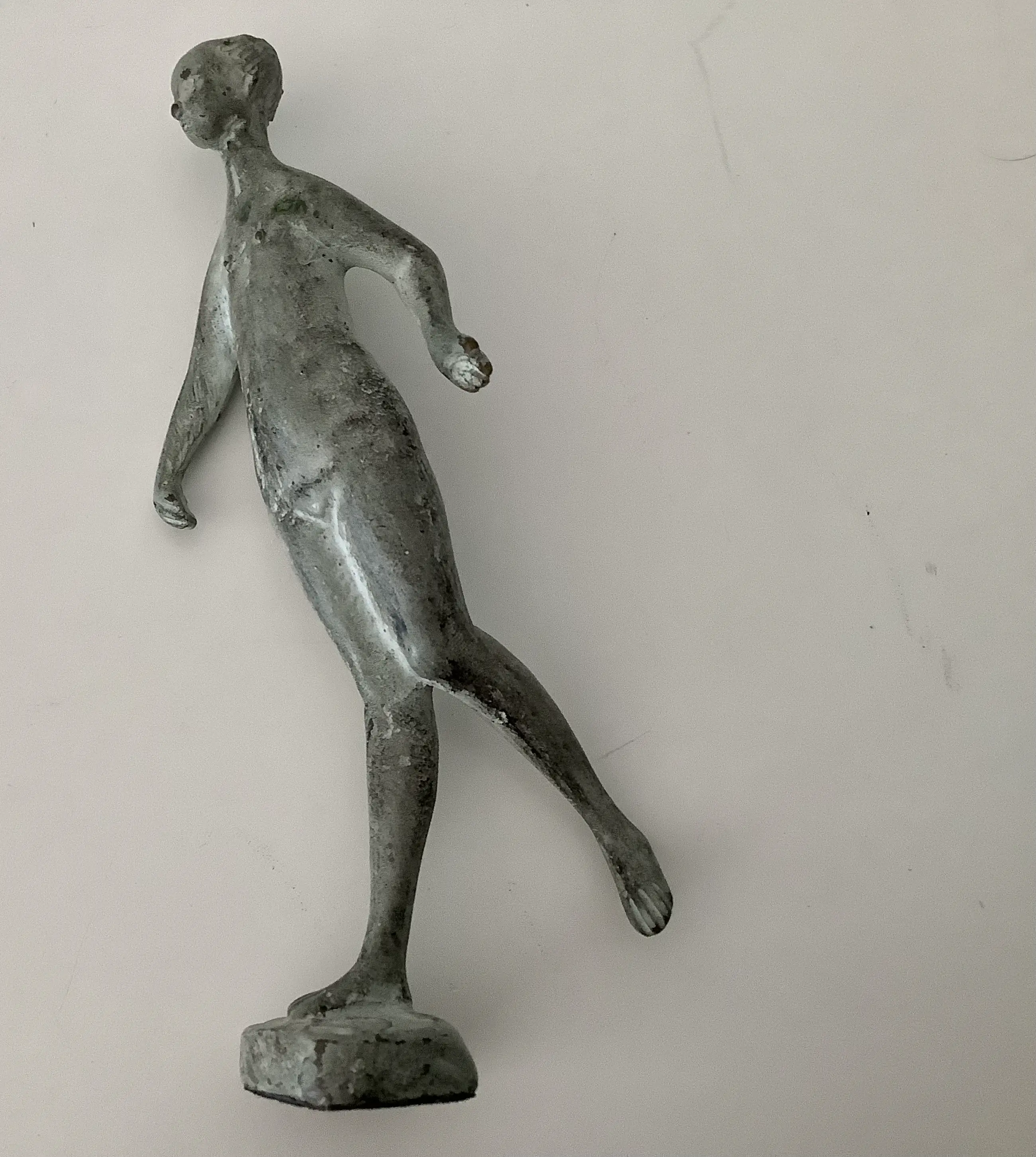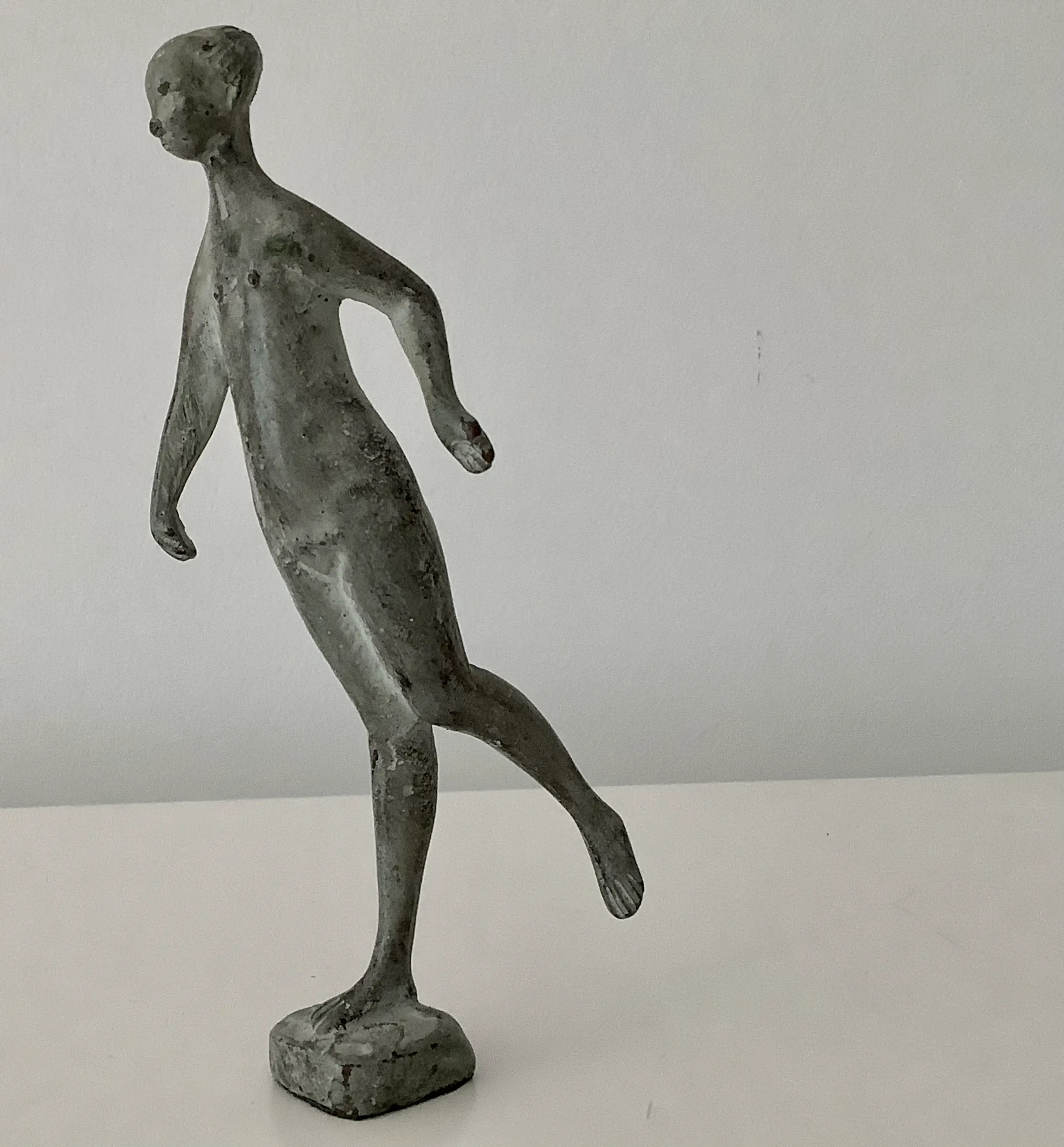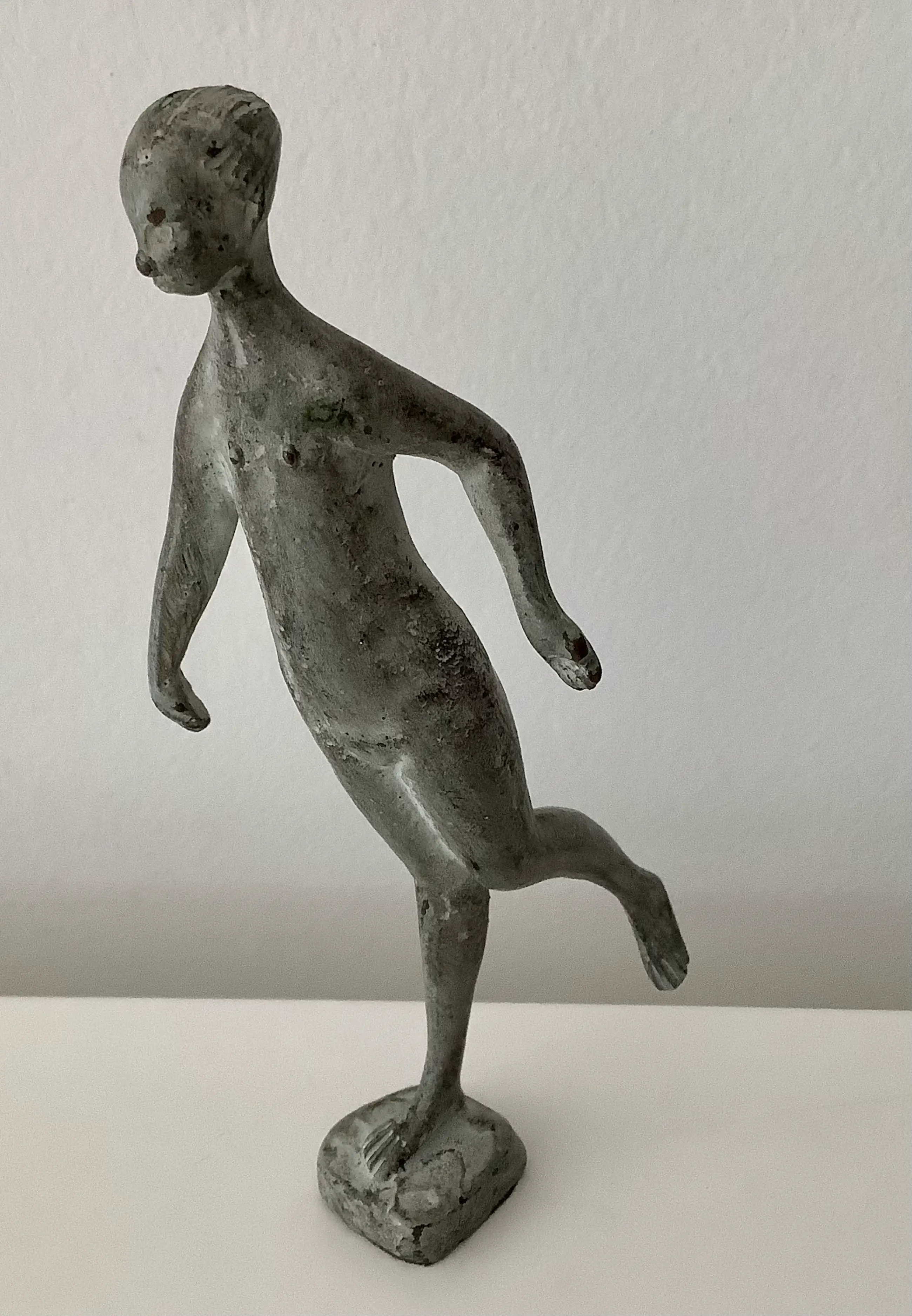 Fraaie kleine sculptuur in de eigenzinnige stijl van Piet van Heerden. Mooie grijze patina.