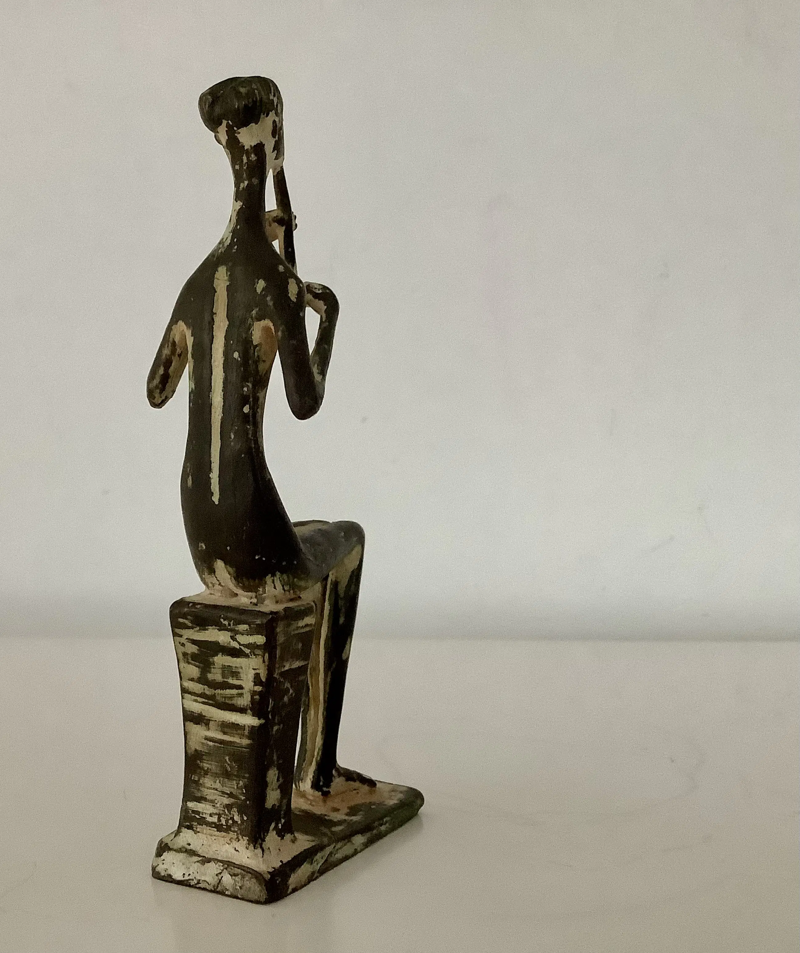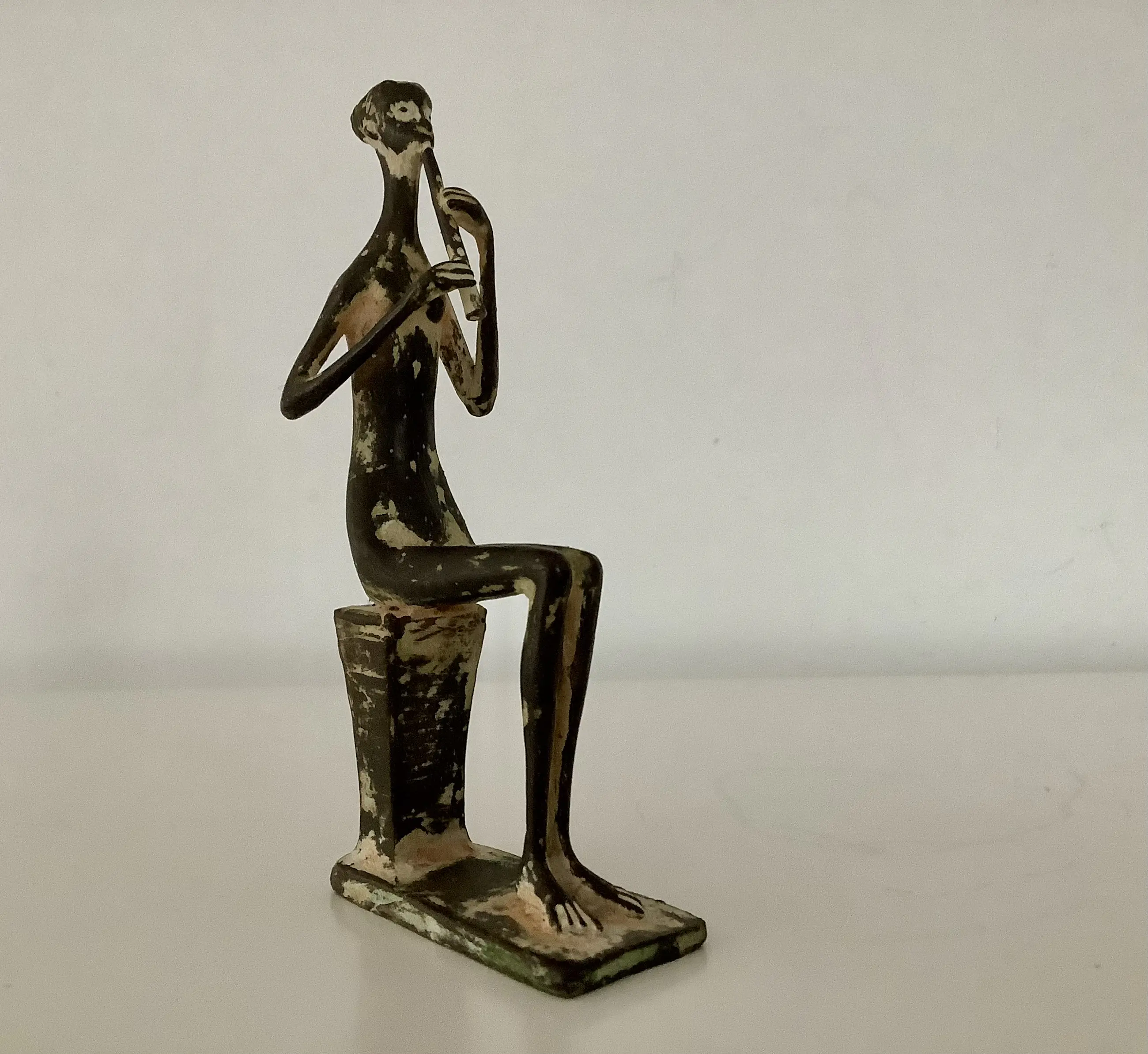 Typerende sculptuur van Piet van Heerden. In zijn kenmerkende patina. Ondanks het formaat sterk werk met een bijzondere elegantie. Gesigneerd, wat niet bij al zijn sculpturen het geval is.