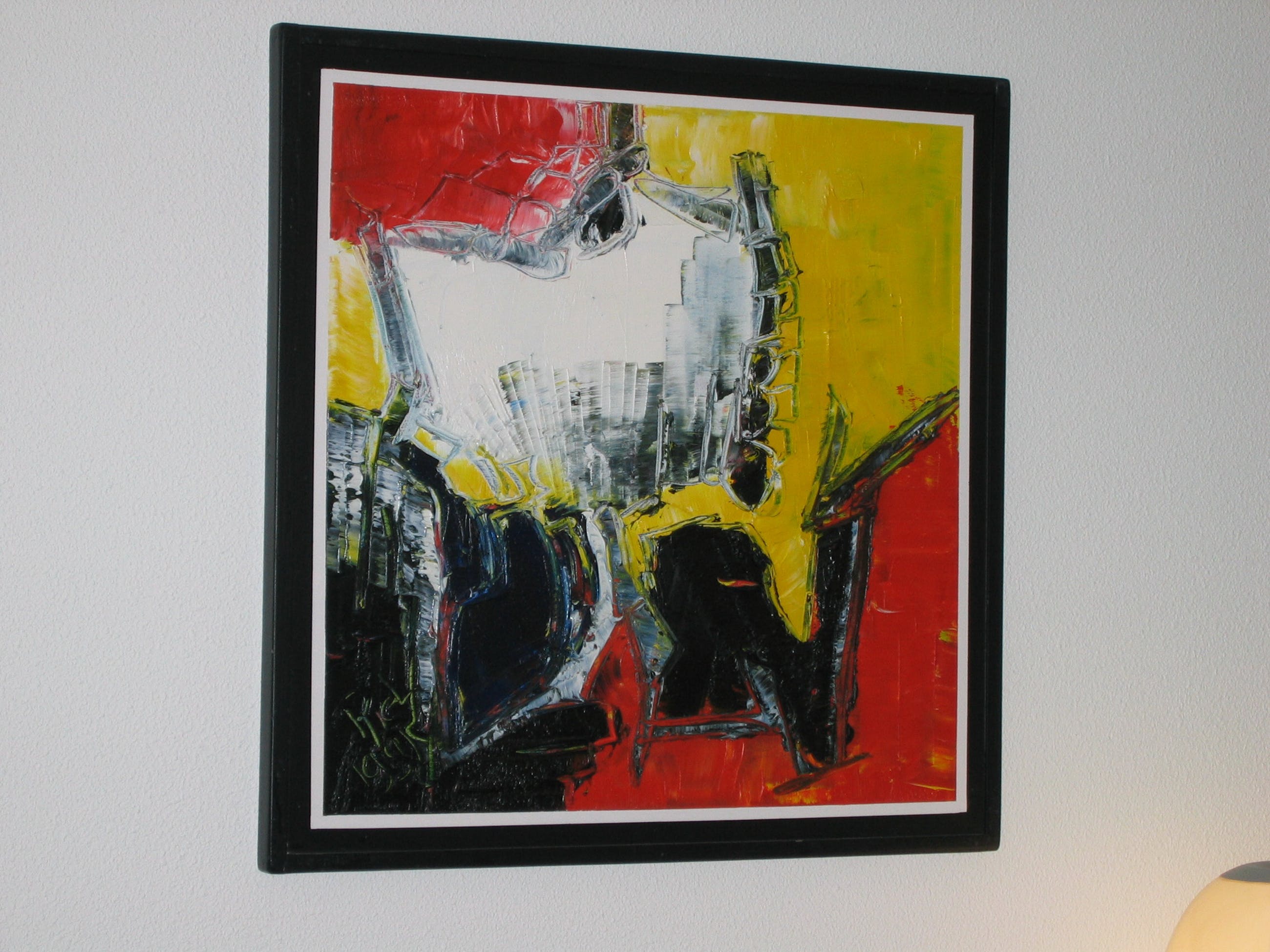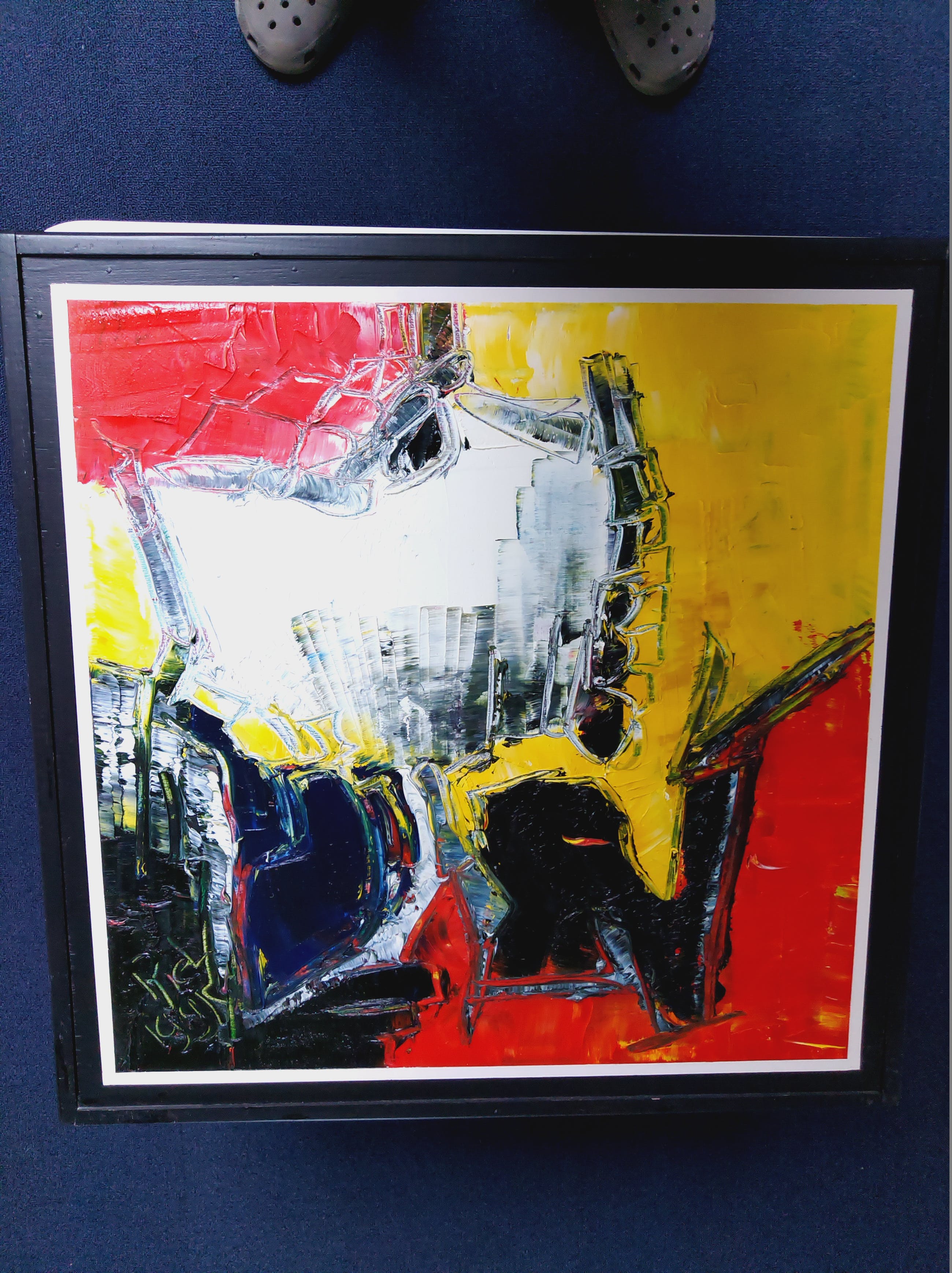 Kunstwerk heeft in een showroom en kantoor gehangen.