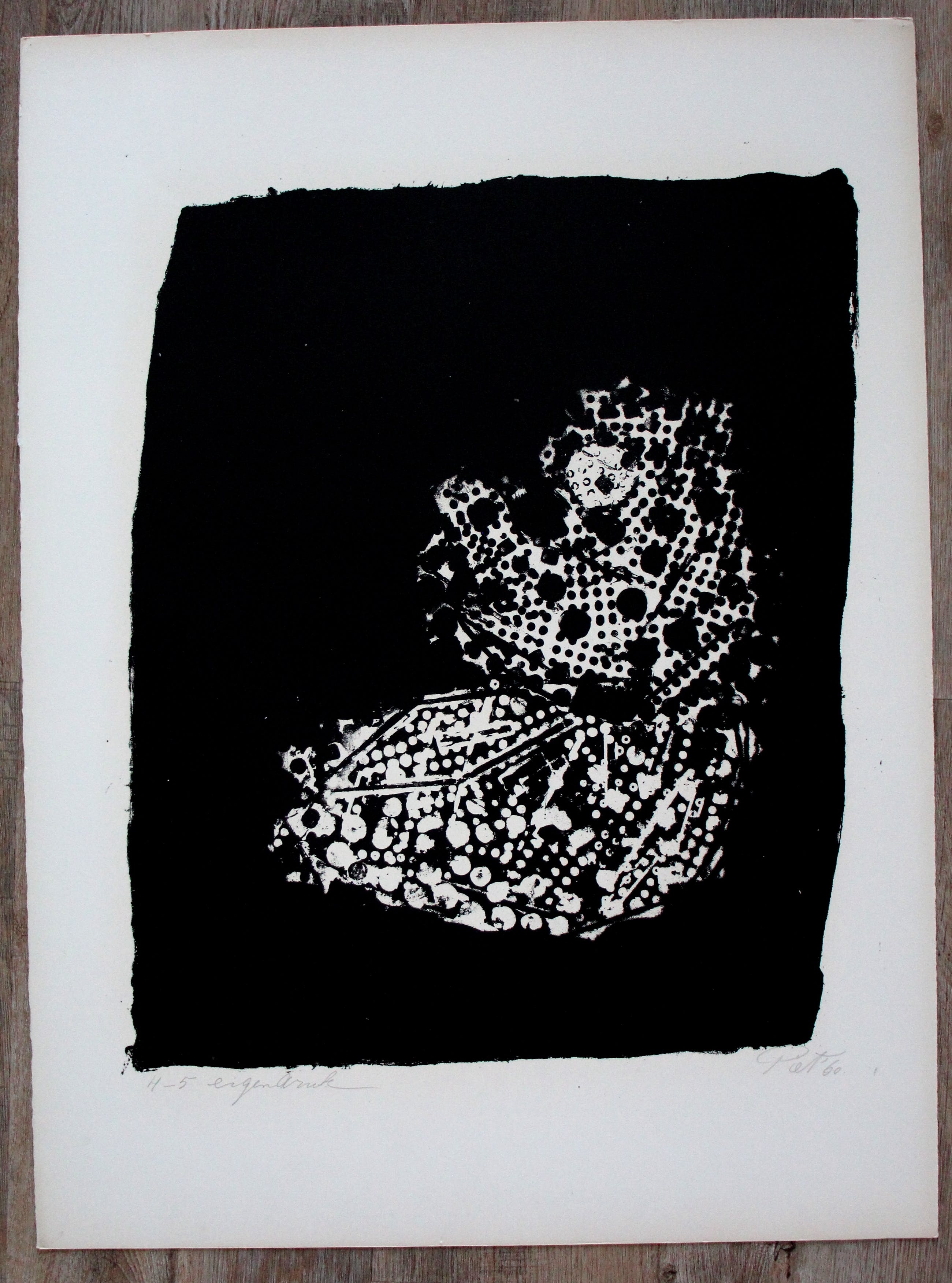 Abstracte compositie uit 1961 van Piet van Stuivenberg. Nummer: 2/3, eigen druk. Afmetingen blad: H66 x B56 cm. Afmetingen voorstelling: H55 x B40 cm. Het werk is rechtsonder aan gesigneerd door de kunstenaar. De authenticiteit van dit werk wordt volledig gegarandeerd. Een certificaat van echtheid kan, op verzoek, worden gemaild.