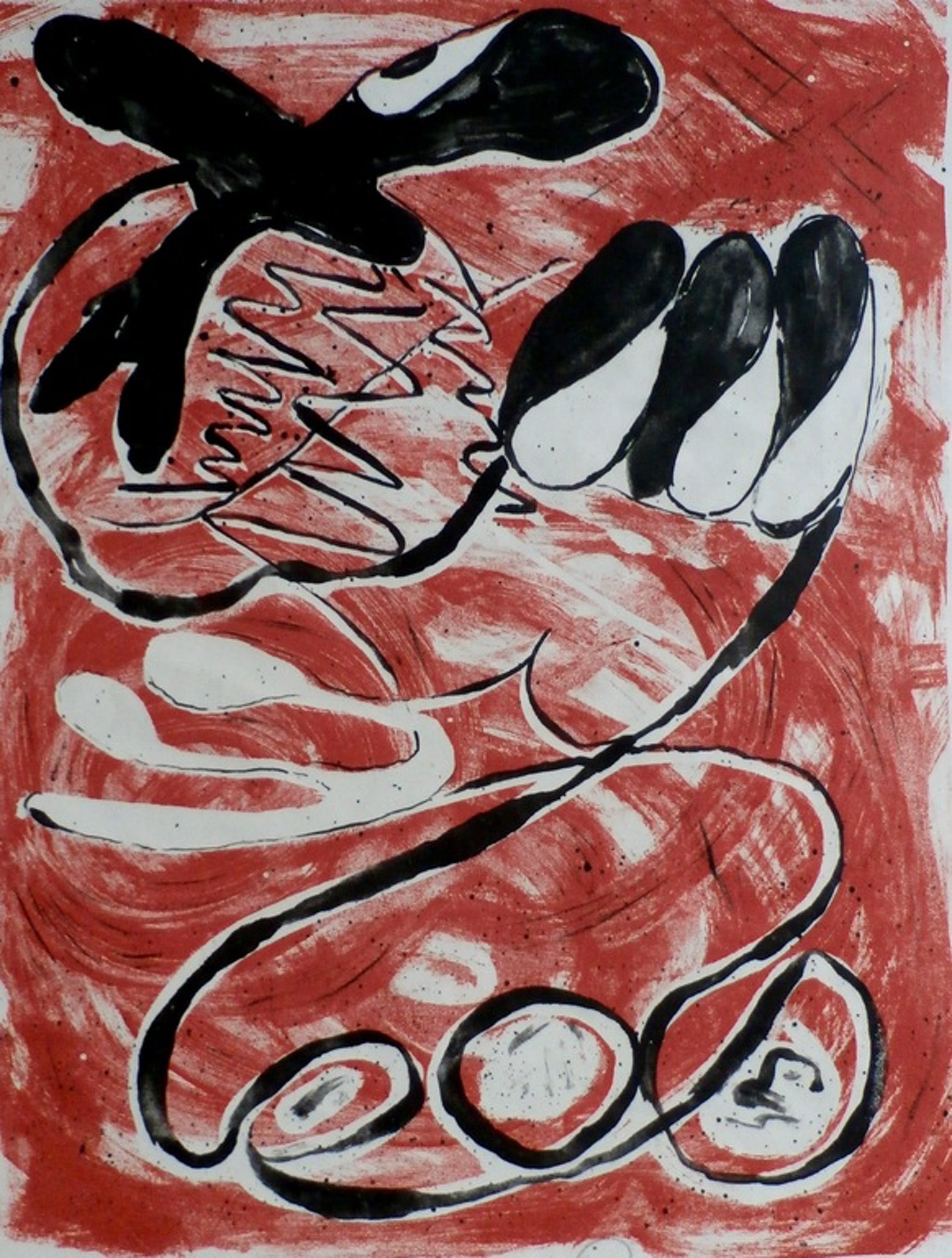 Abstracte compositie uit 1953 van Piet van Stuivenberg. Nummer: 2/8. Afmetingen blad: h35 x b25 cm. Afmetingen voorstelling: h30 x b23 cm. Conditie: in goede staat. De authenciteit van dit werk wordt volledig gegarandeerd. Een certificaat van echtheid kan, op verzoek, worden meegeleverd.