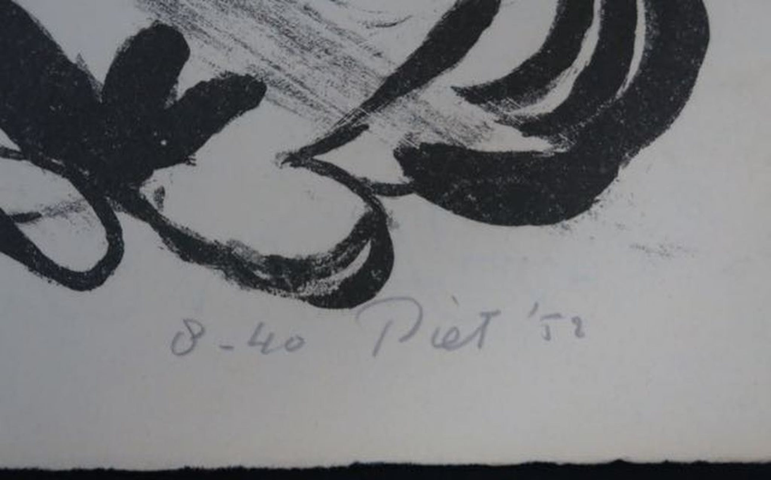 Kleine litho, uitgegeven door kunstenaarsgroep Creatie in 1952. Creatie was een Vereniging tot bevordering van absolute kunst, opgericht in 1950. Actieve leden van deze groep waren o.a. Eugéne Brands, Armando, Anton Rooskens, Wim Strijbosch en Herman van der Heide.