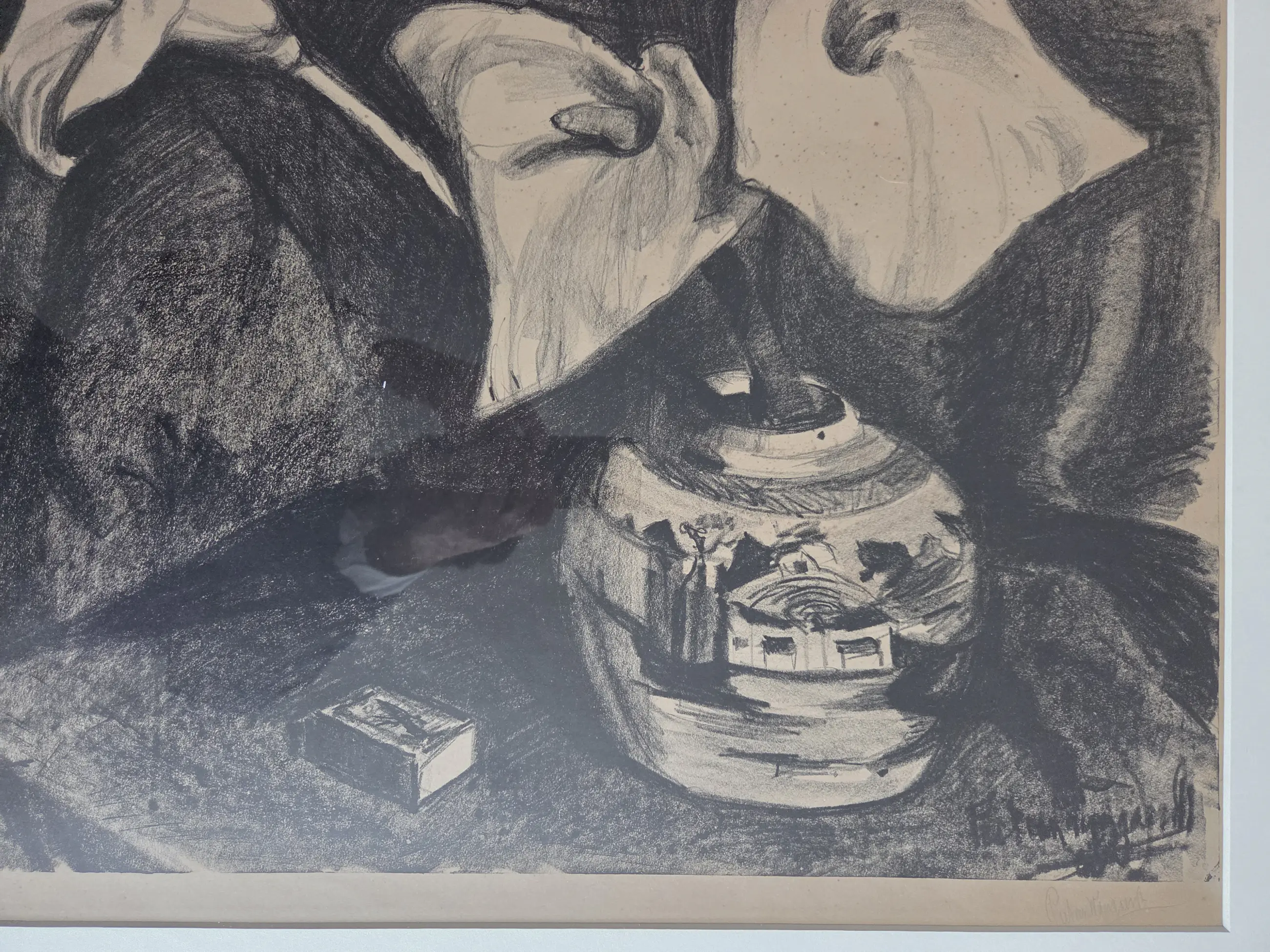 Topwerk. Bijzondere sfeer. Gesigneerd rechtsonder. Mooie lijst. Mooi passe partout. Goede staat. Zie foto's voor eigen oordeel kwaliteit.