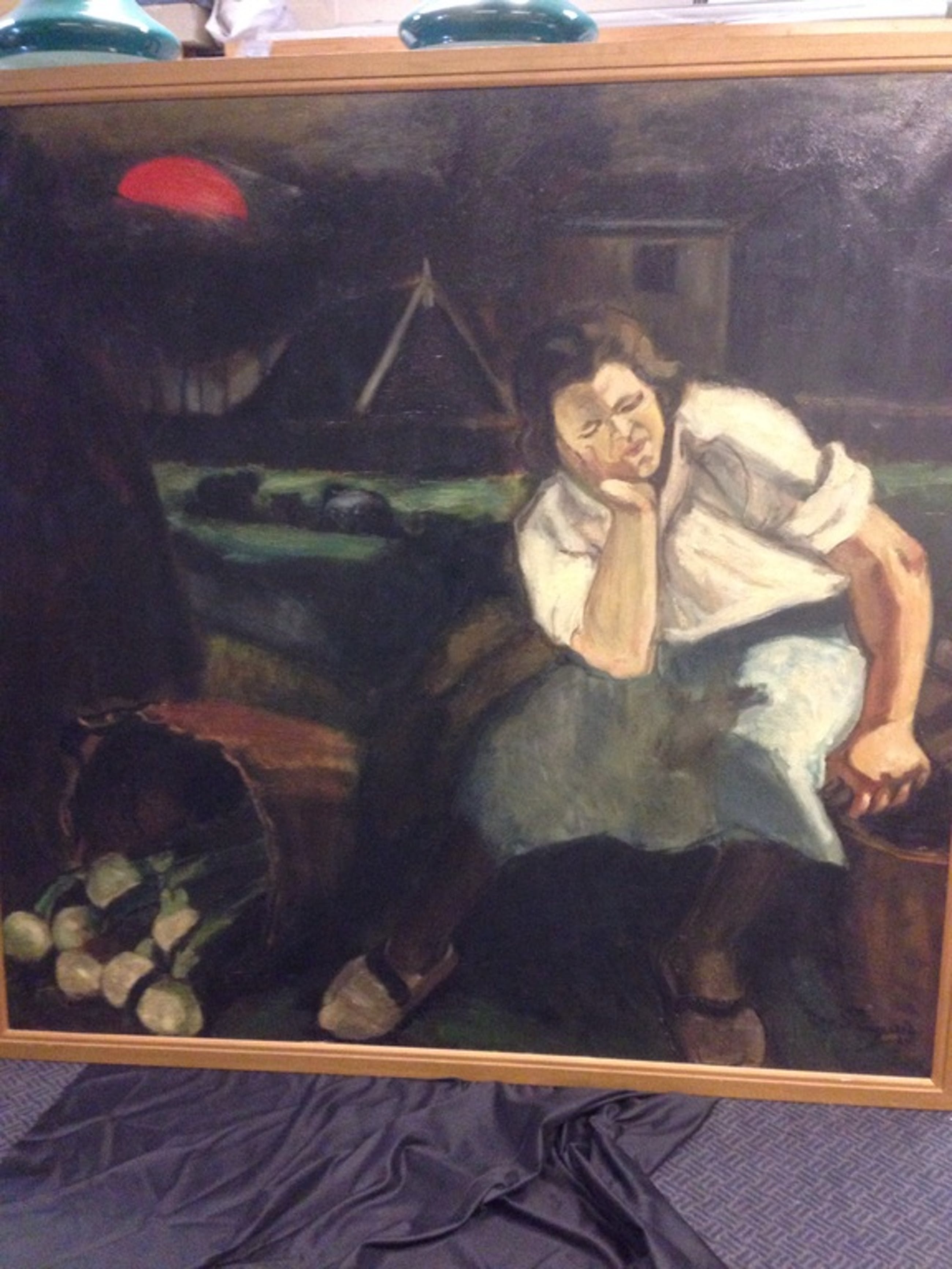 Olieverf afmeting 154 cm br 150 cm hoog (lijstmaat)
