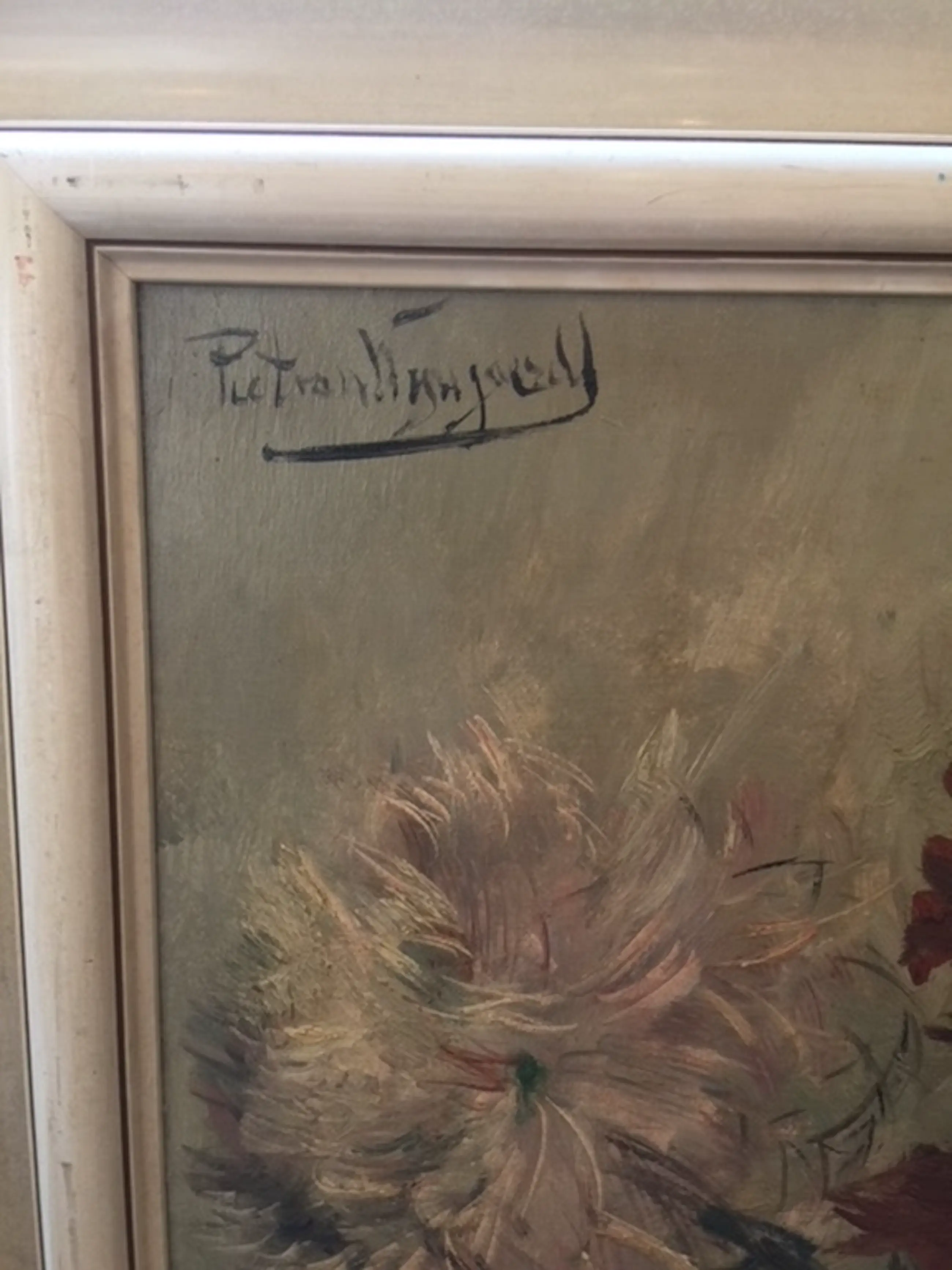werk en lijst in redelijke staat (lijst ontbreekt een klein stukje aan de bovenkant, doek op twee plaatsen dun, zichtbaar indien het werk tegen het licht gehouden wordt, niet indien opgehangen) zie svp de foto's voor een eigen oordeel