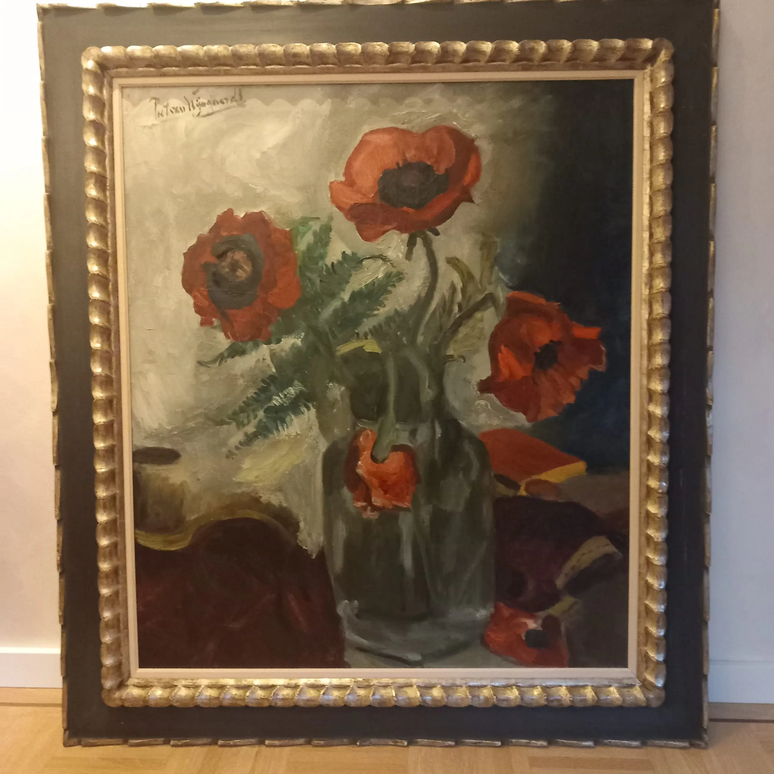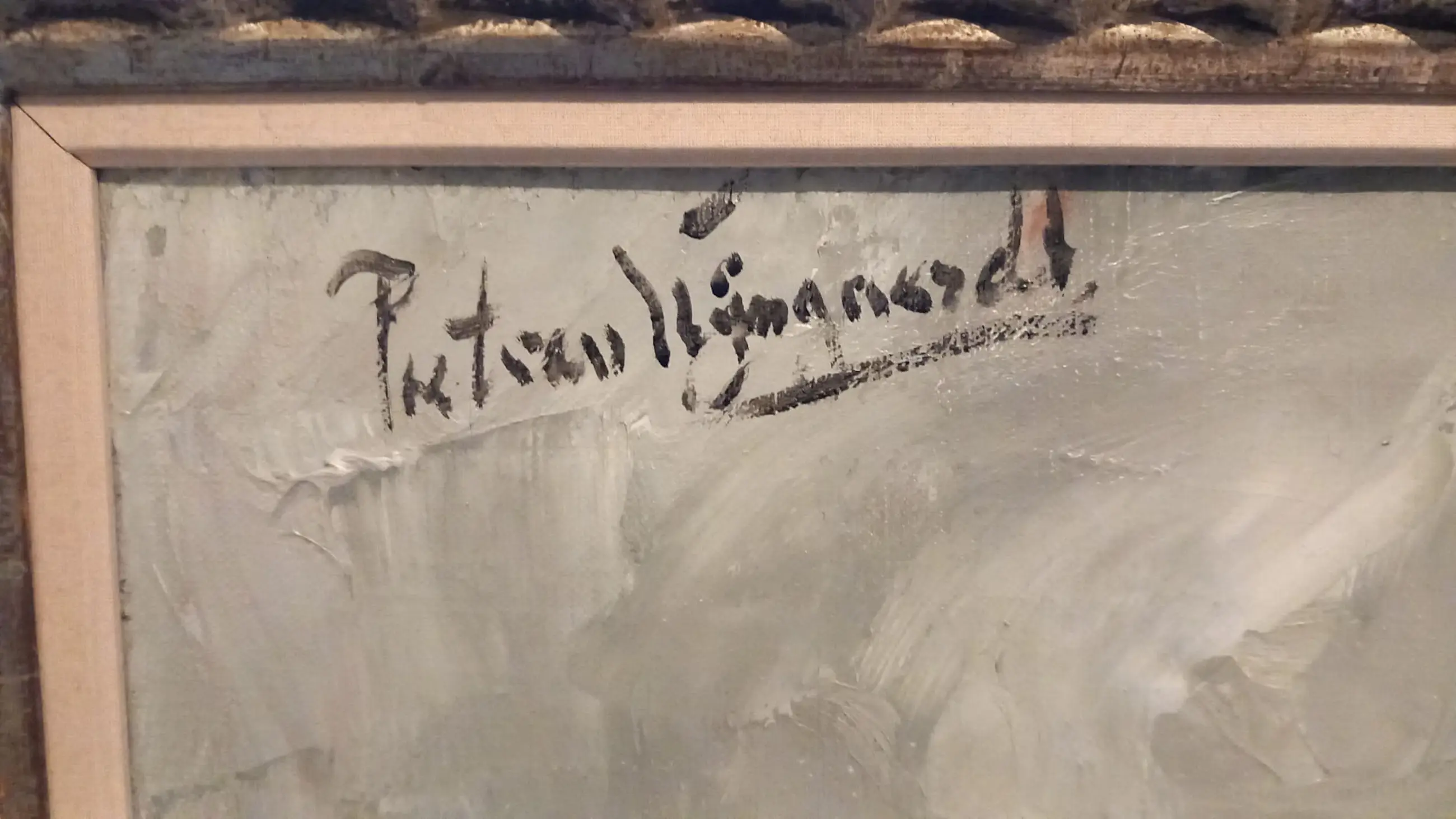 een levendig en expressief olieverfschilderij van Piet van Wijngaerdt. Geheel ingelijst in een originele en mooi bijpassende lijst.