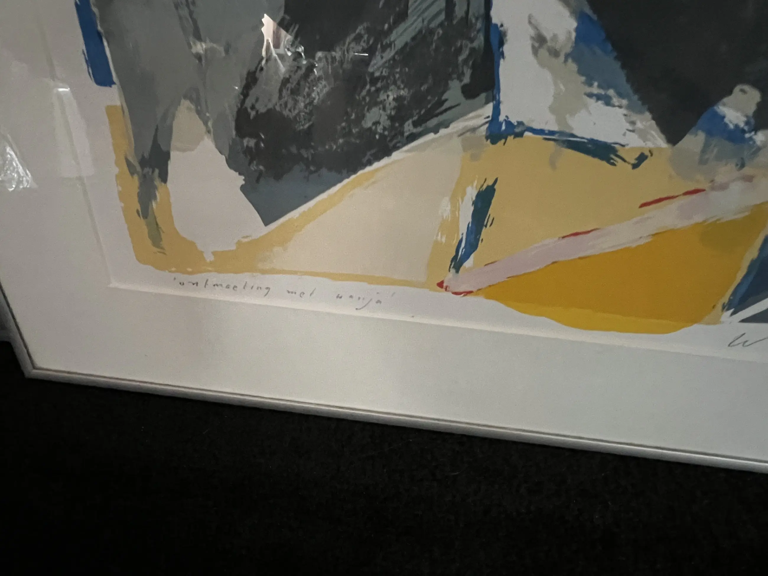 De titel of tekst staat precies onder de rand van het passe-partout. Ontmoeting met Wanja, uit 1985. Nr 18 van 6
