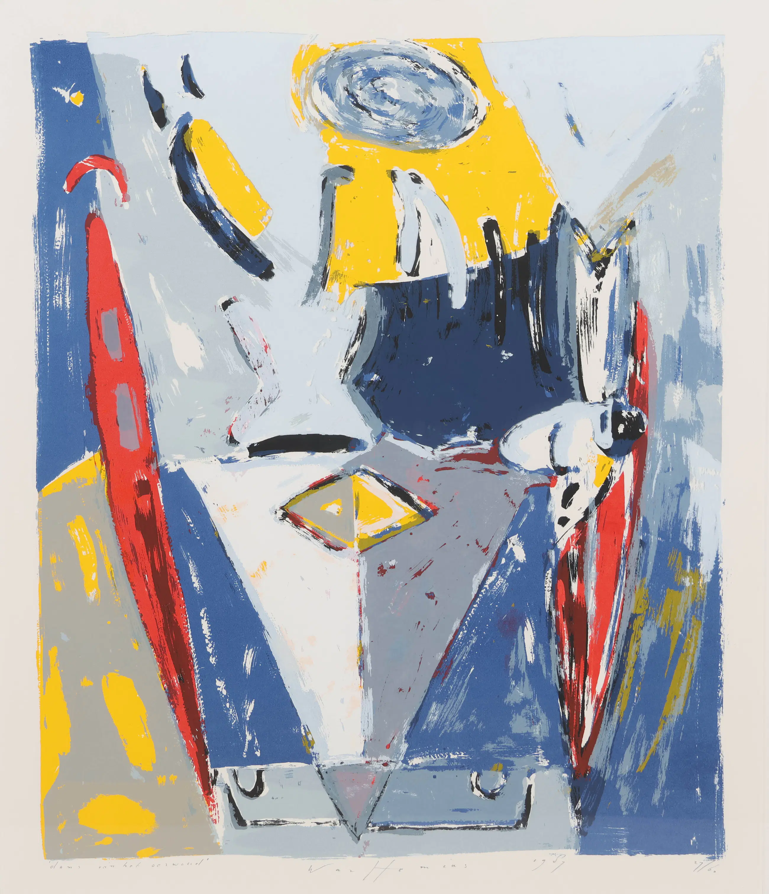 Zeefdruk van Piet Warffemius (Den Haag, 1956). De natuur vormt een belangrijk thema binnen het veelzijdige oeuvre van Warffemius. In veel van zijn werken zijn verwijzingen naar planten en bomen zichtbaar. De abstractie is daarbij vaak ver doorgevoerd, wat resulteert in eenvoudig gestileerde bomen en stammen met enkele takken, soms voorzien van een enkel blad. De vormen zijn teruggebracht tot hun essentie.