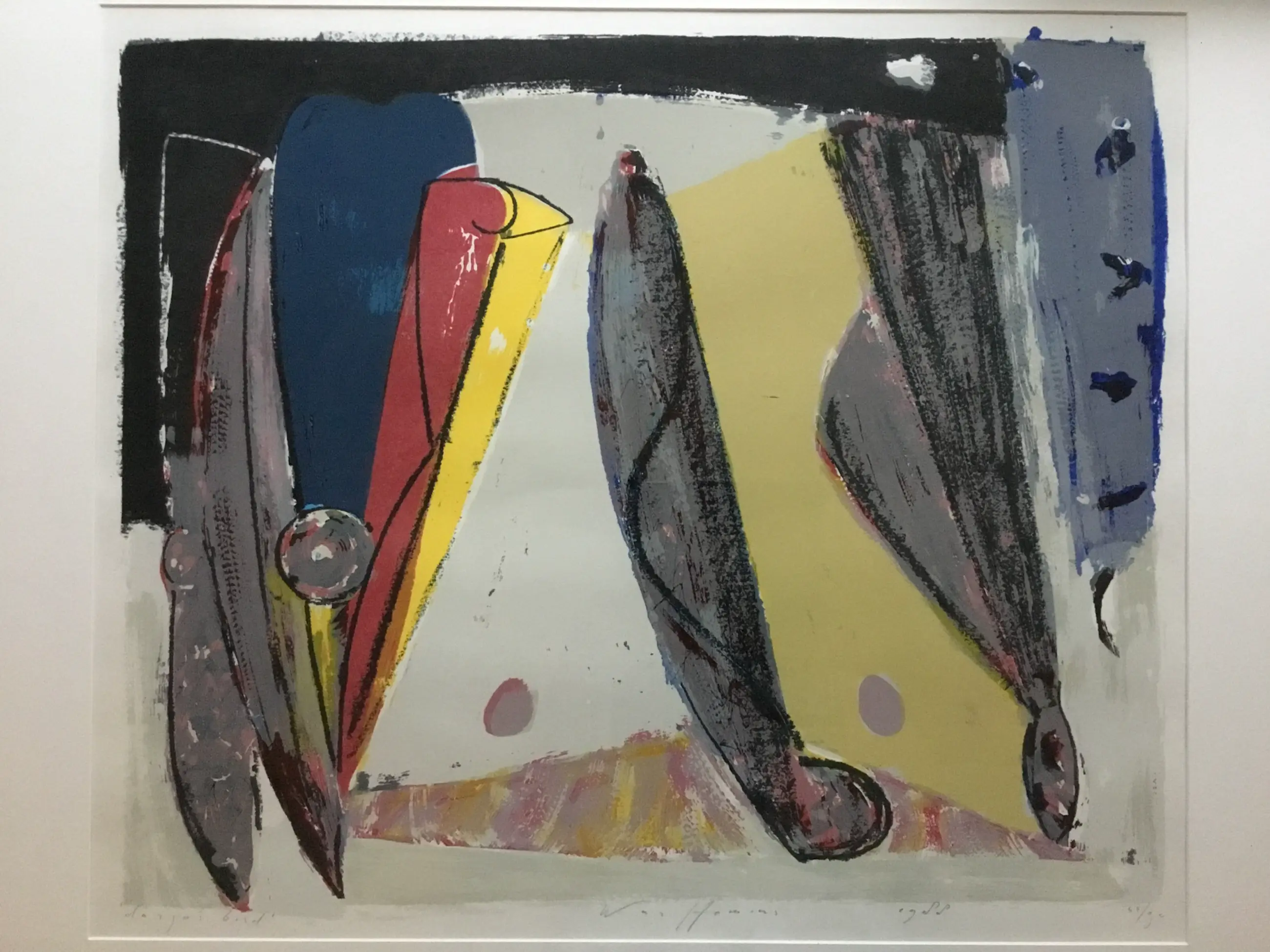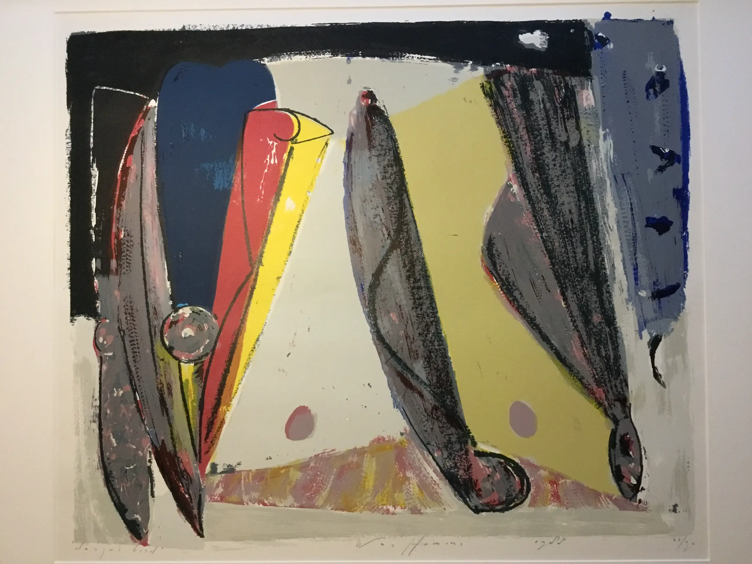 Mooi kleurrijk ingelijst werk van veelzijdige kunstenaar Piet Warffemius. Het werk is ingelijst in een aluminiumlijst.