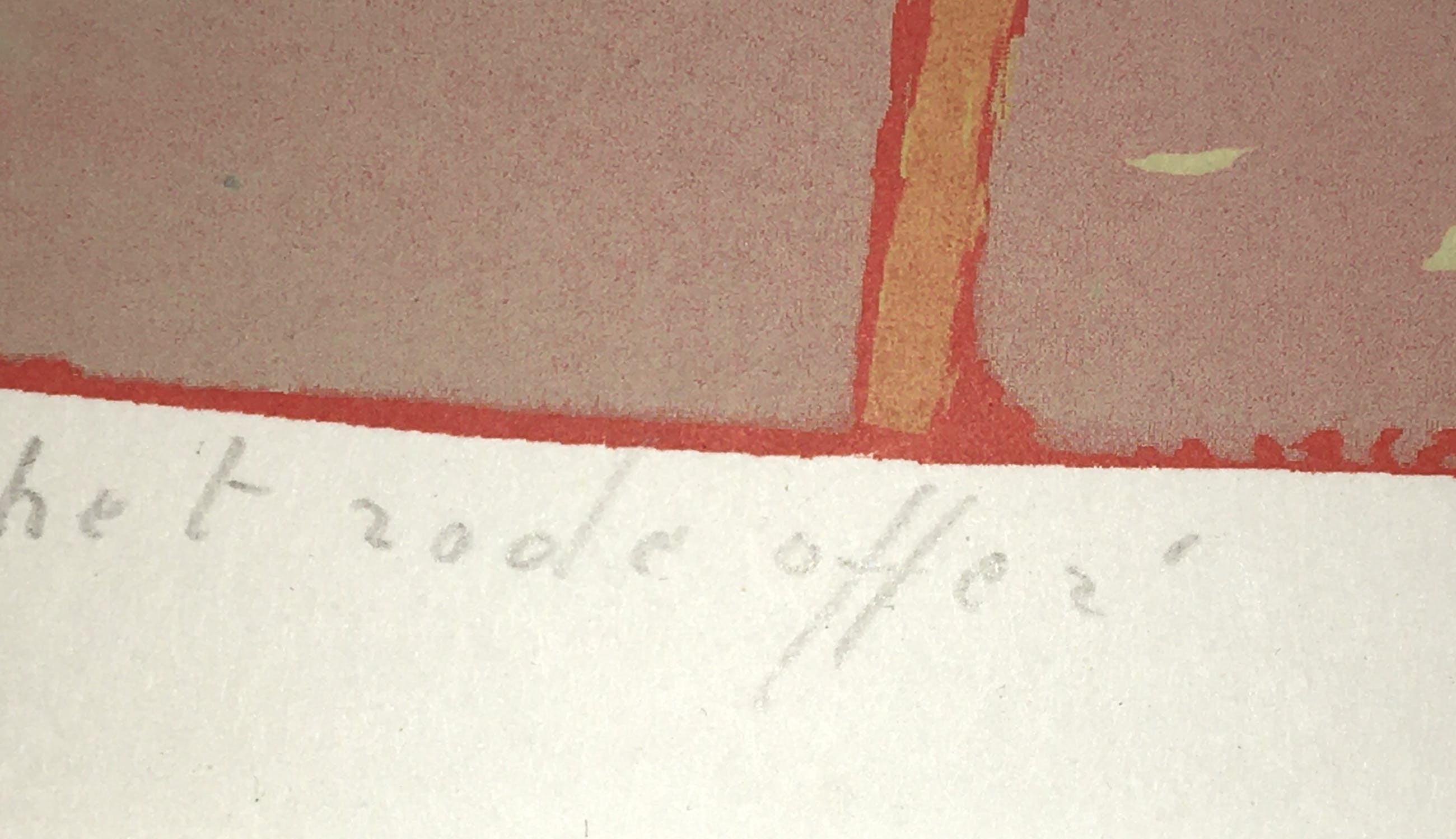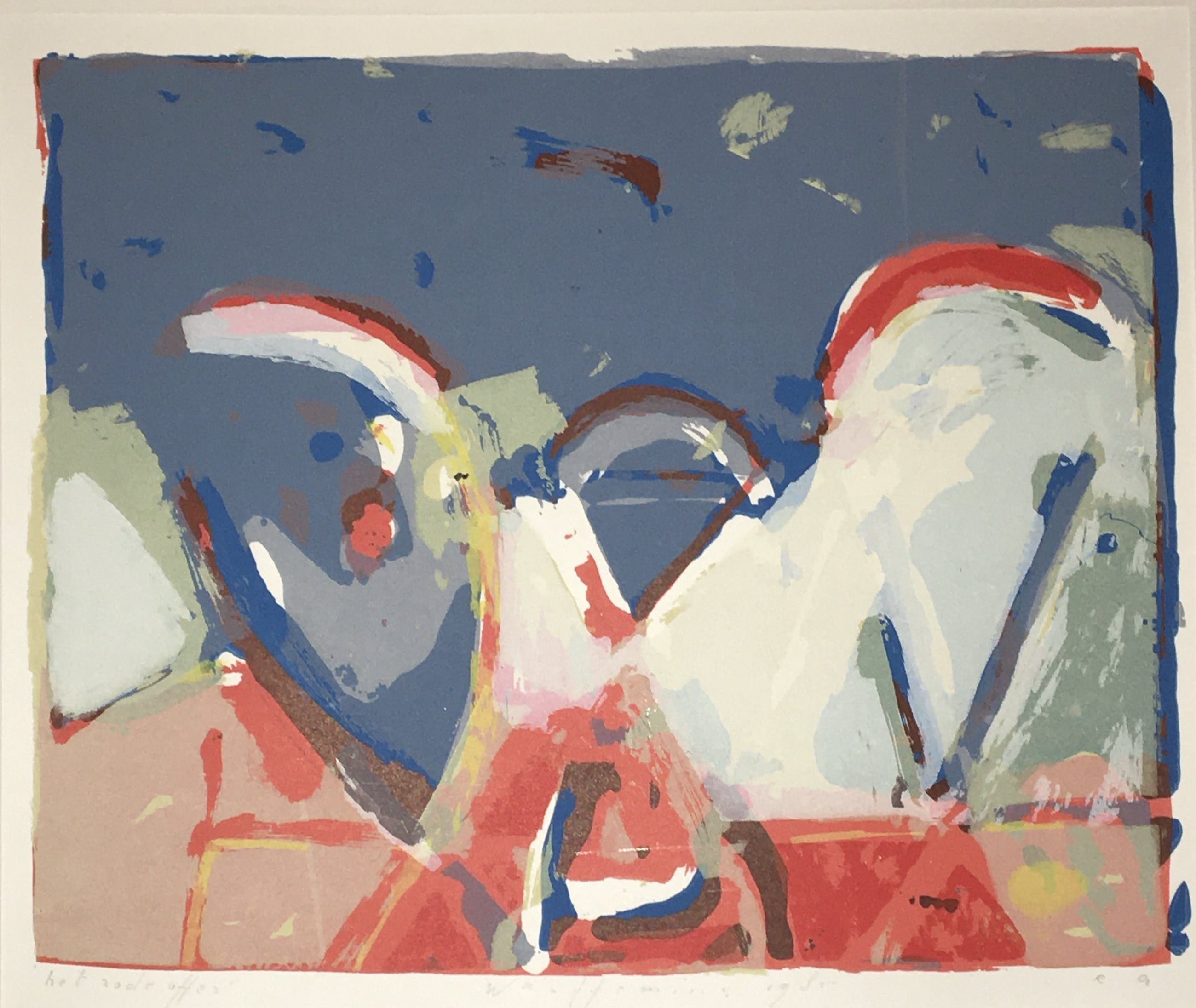 Kleurrijke zeefdruk van Piet Warffemius. Onderaan staan de titel, signering, jaartal in potlood. In zeer goede staat.
