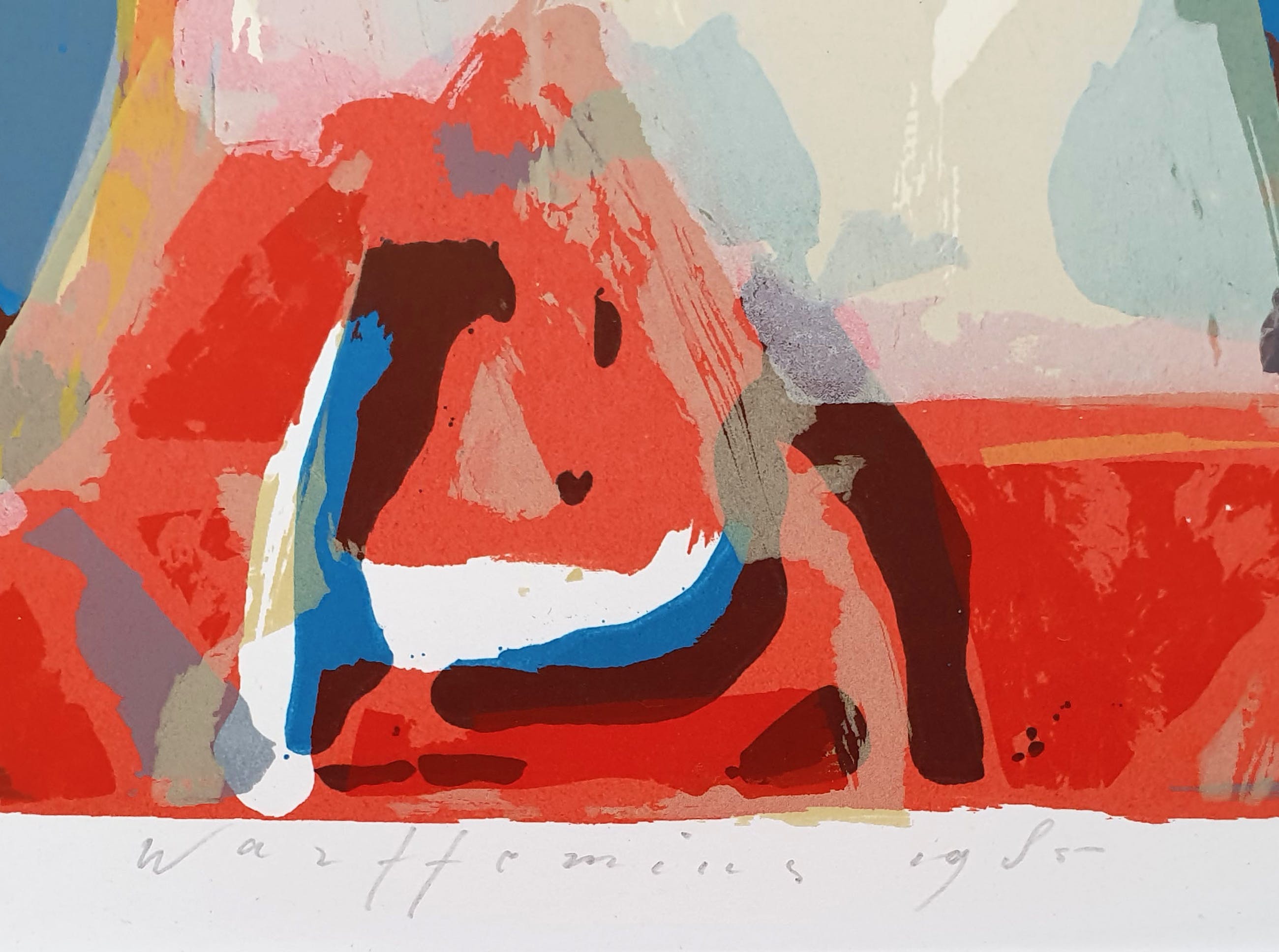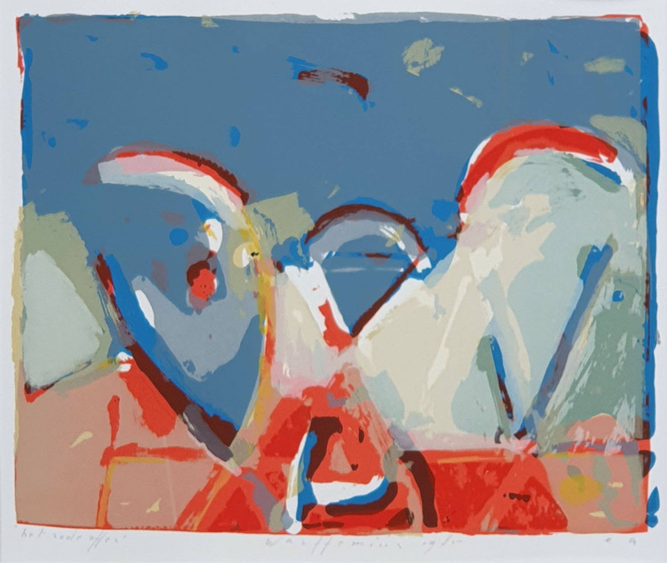 Kleurrijke zeefdruk van Piet Warffemius. Onderaan staan de titel, signering en jaartal in potlood. In zeer goede staat.