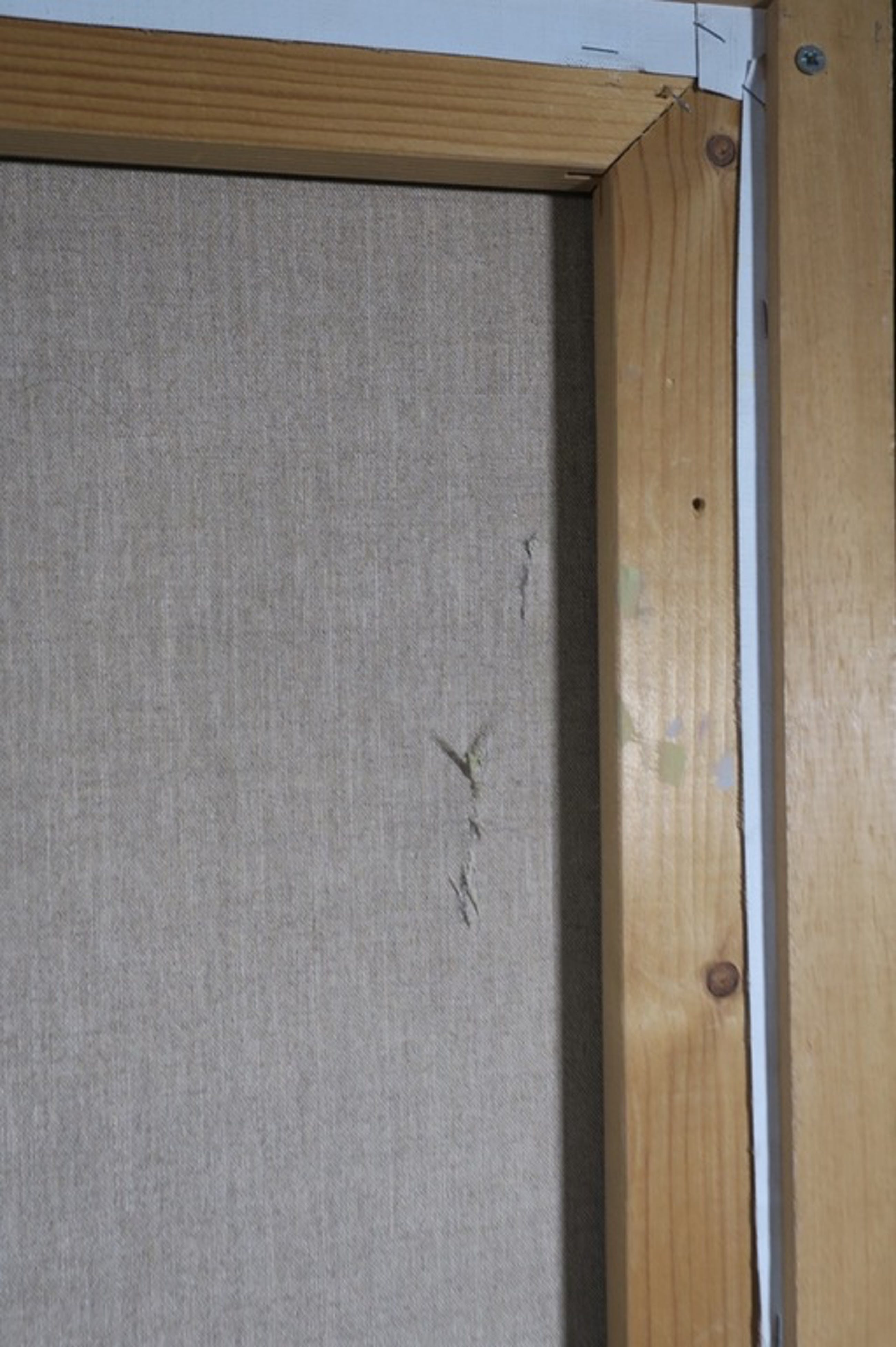 Conditie: In goede staat, maar helaas met twee scheuren in het doek in de hoek linksboven (zie foto). Zou gerestaureerd moeten worden.