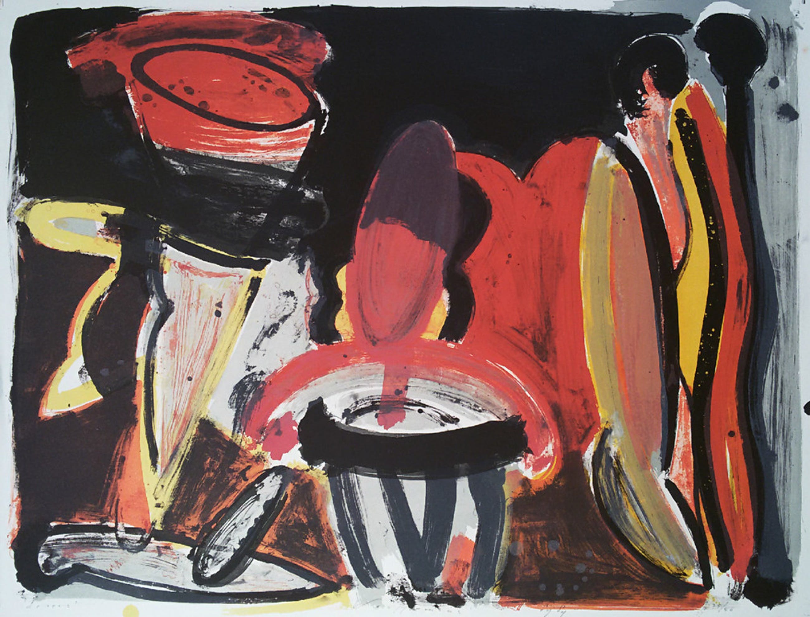 Mooie, karakteristieke zeefdruk van Piet Warffemius op dik geschept papier. Met potlood gesigneerd, gedateerd (1989), getiteld en genummerd (25/40). Nooit ingelijst geweest, in uitstekende conditie.