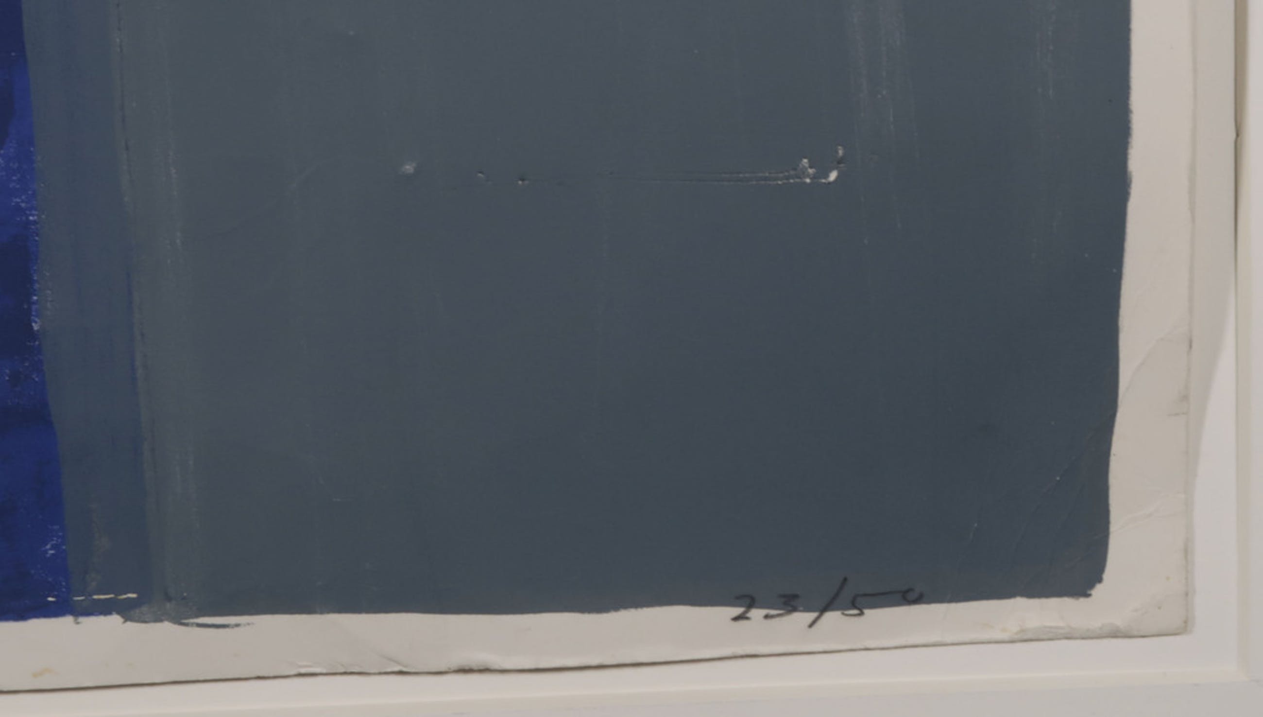 Conditie kunstwerk: In redelijke staat. Met kreuk- en vouwlijnen in het blad, voornamelijk in de hoeken. En enkele beschadigingen in het blad. Vandaar de lage inzet.