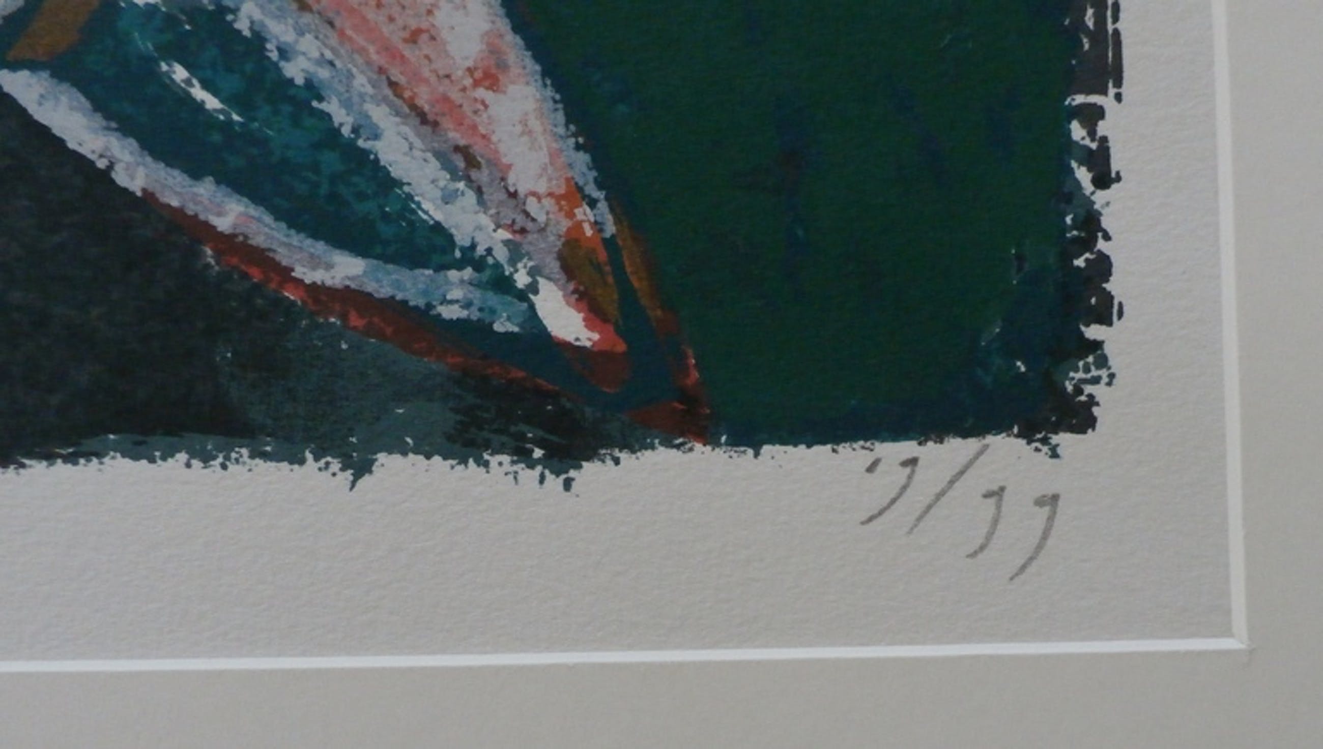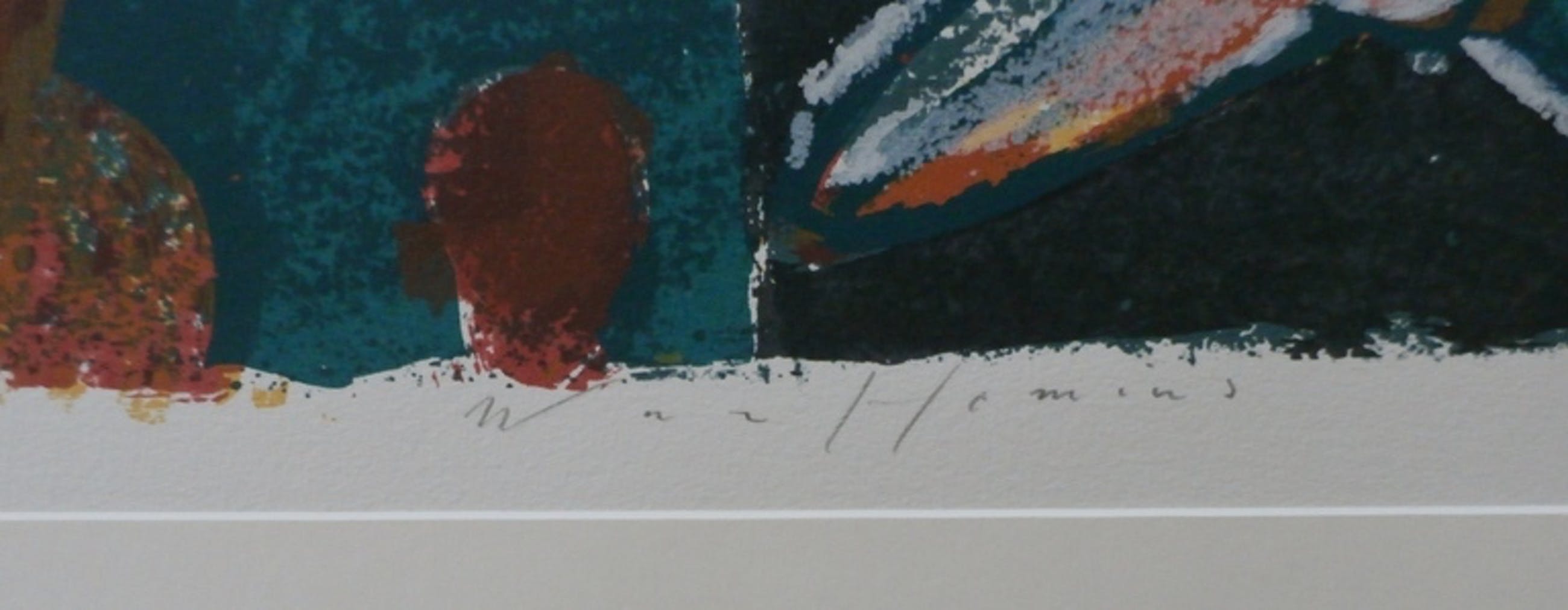 Zeefdruk van Piet Warffemius. Nummer: 19/99. Afmetingen blad incl passe partout H60 X b79.5. Afmetingen voorstelling H37 X b 52 Het werk is middenonder gesigneerd door de kunstenaar. De authenciteit van het aangeboden werk wordt voor 100% gegarandeerd. Een certificaat van echtheid kan, op aanvraag worden meegestuurd. Conditie: In goede staat. Verzenden zonder passe partout is ook mogelijk voor 12,50 euro binnen Nederland, voor 17,50 euro naar Belgie.