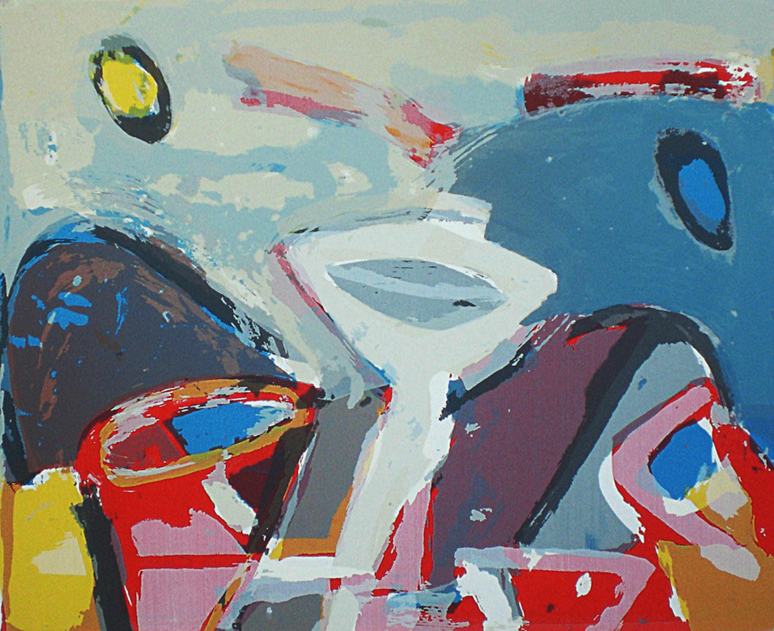 Prachtige zeefdruk van Piet Warffemius getiteld “De jonge wereld” (1985) in strakke lijst, achter glas en met passepartout. Epreuve d'artiste exemplaar, handgesigneerd en gedateerd.