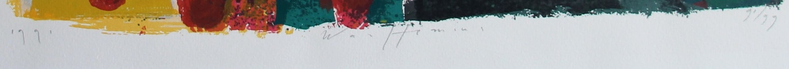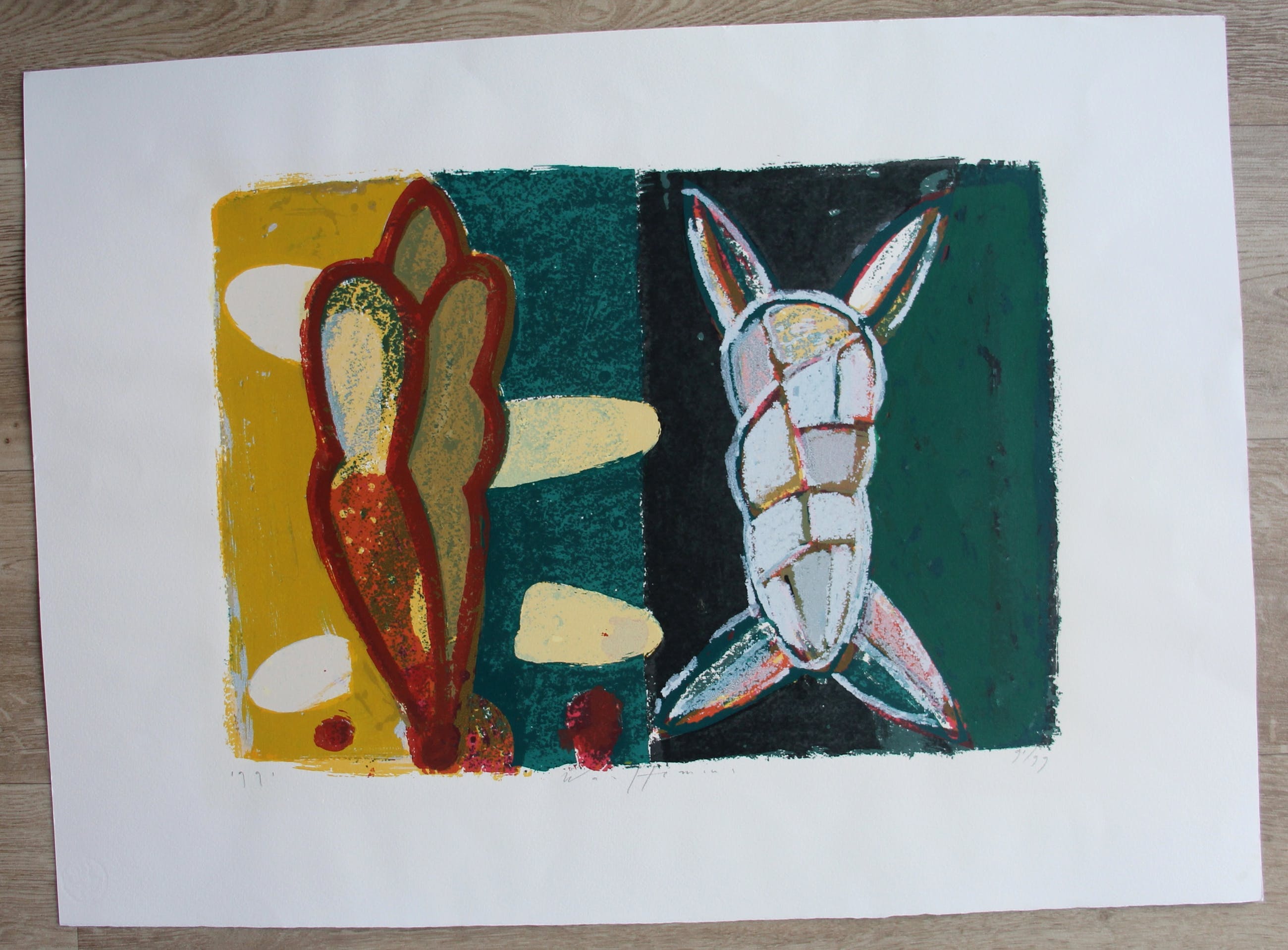 Zeefdruk van Piet Warffemius. Nummer: 91/99. Titel: Slangekracht. Jaar: 1991. Afmetingen blad: H55 x b77cm. Afmetingen voorstelling H37 X b52. Het werk is midden onder gesigneerd door de kunstenaar. De authenticiteit van het aangeboden werk wordt volledig gegarandeerd. Een certificaat van echtheid kan, op aanvraag worden gemaild.