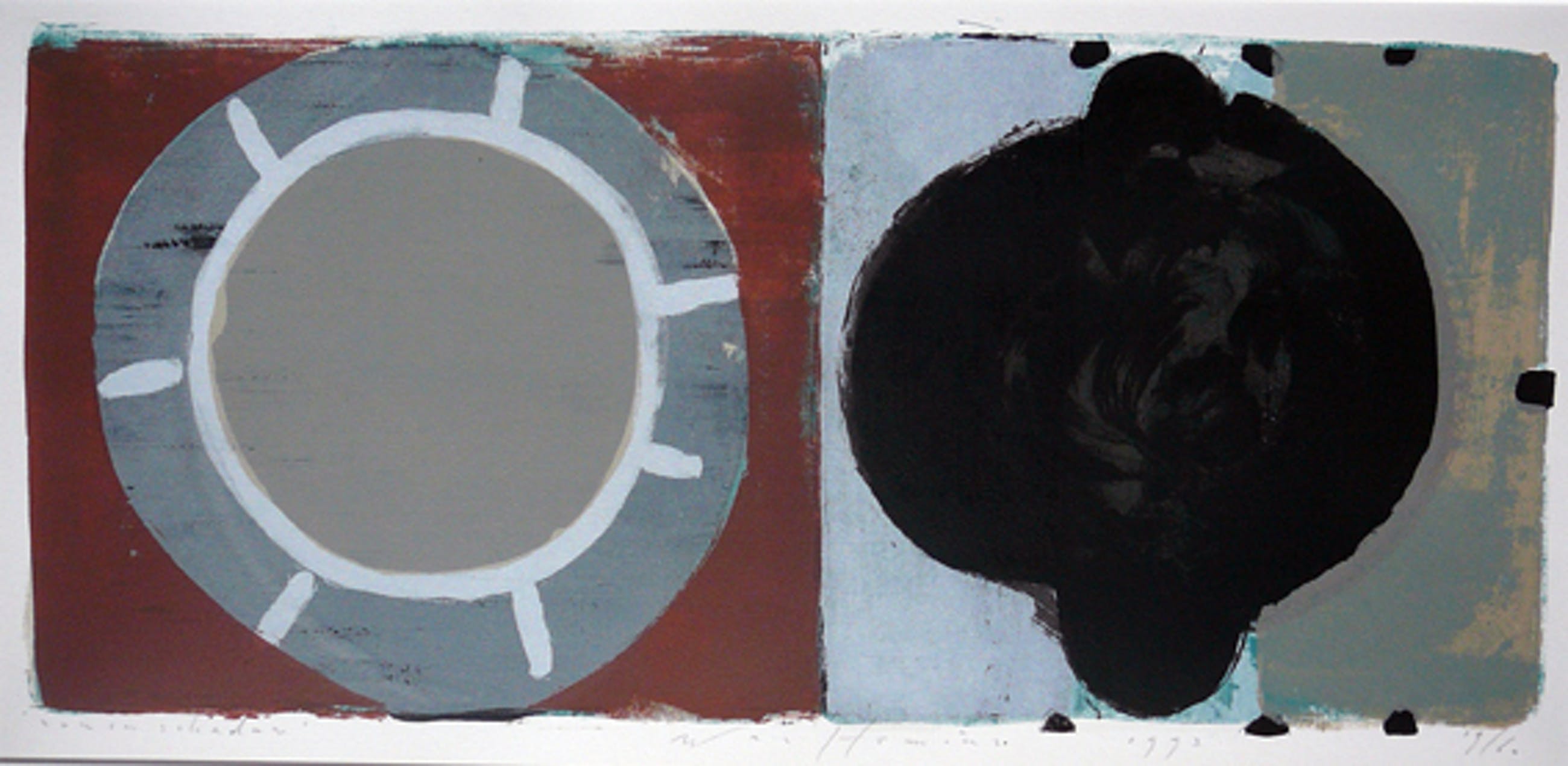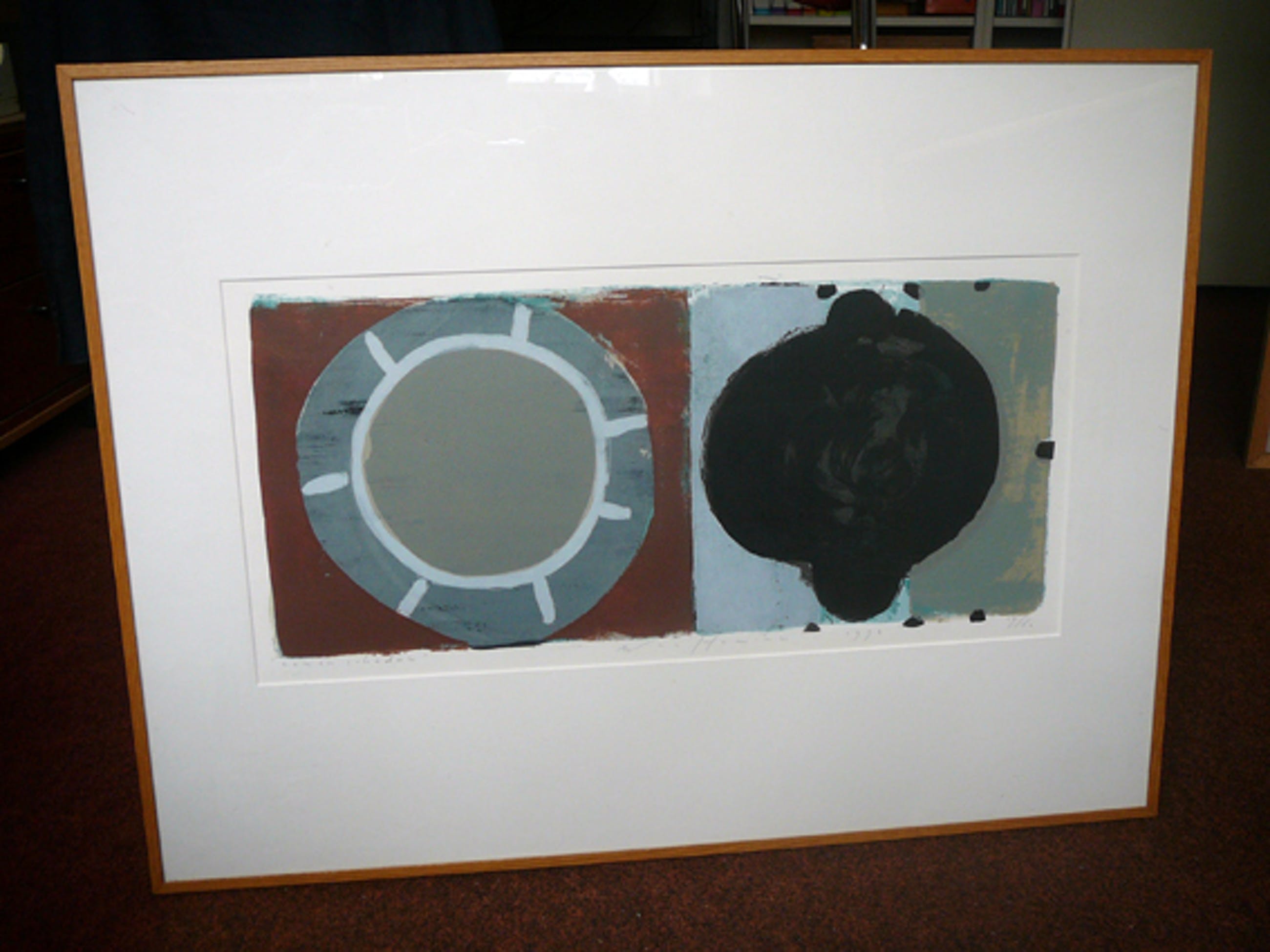 Mooie zeefdruk van Piet Warffemius uit 1993. Dit is nummer 19 van 60 exemplaren. Met potlood gesigneerd en gedateerd. Lijst met houtfineer. Herkomst Kunstuitleen Utrecht.