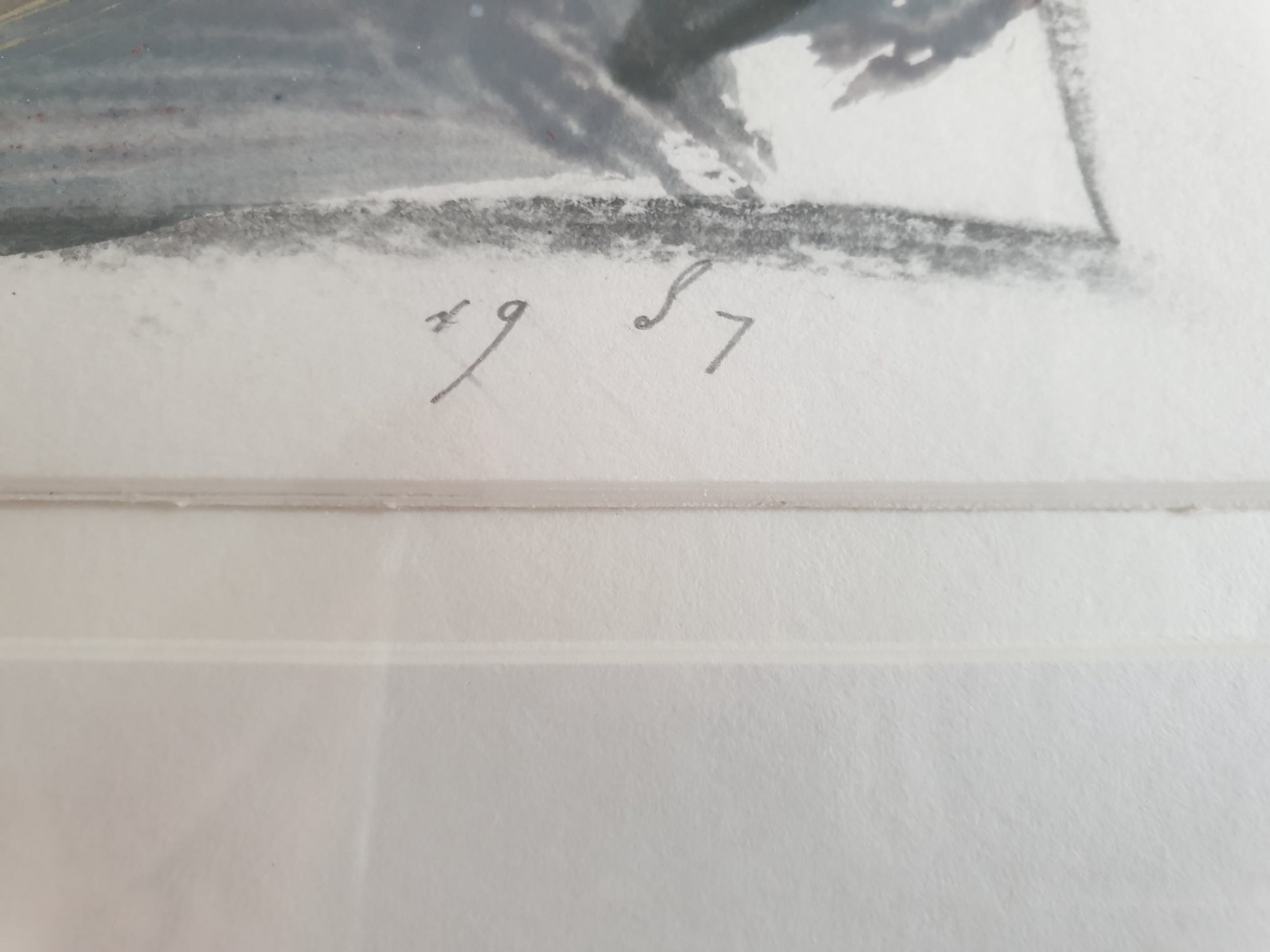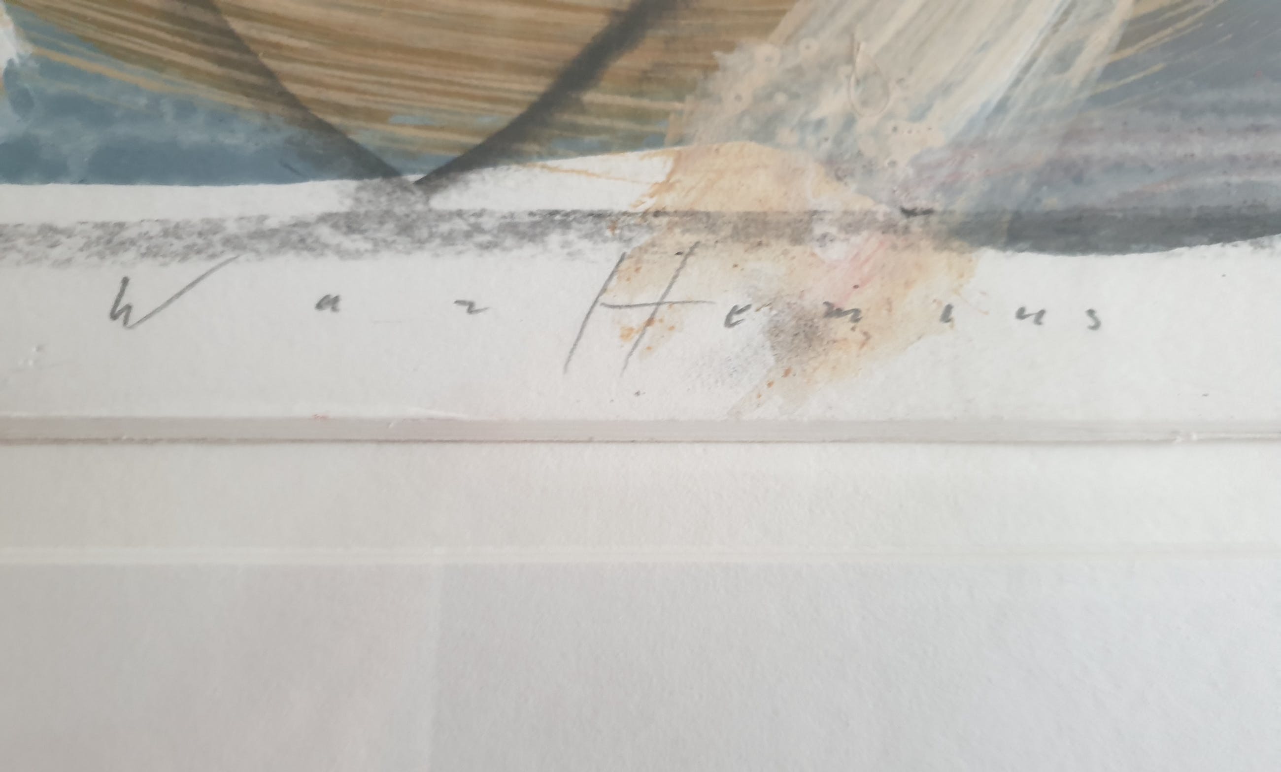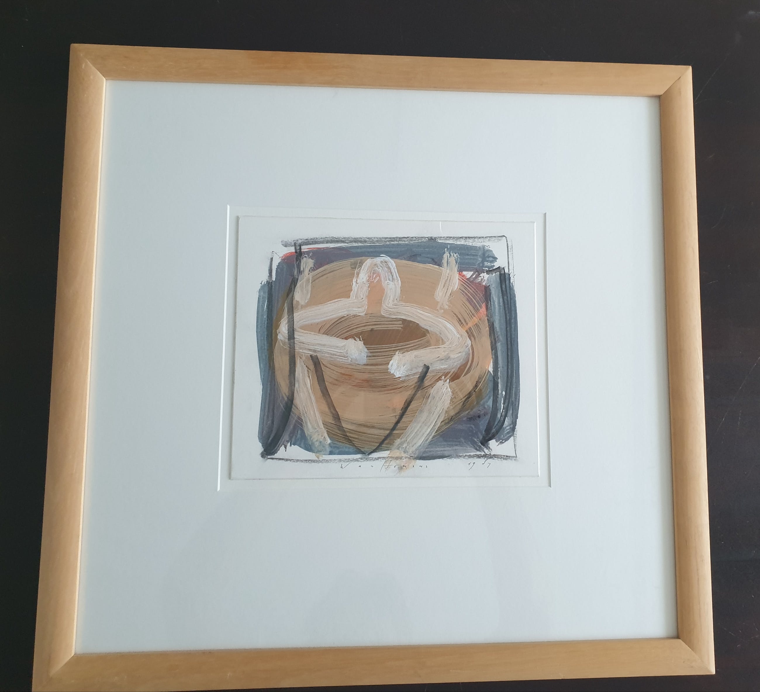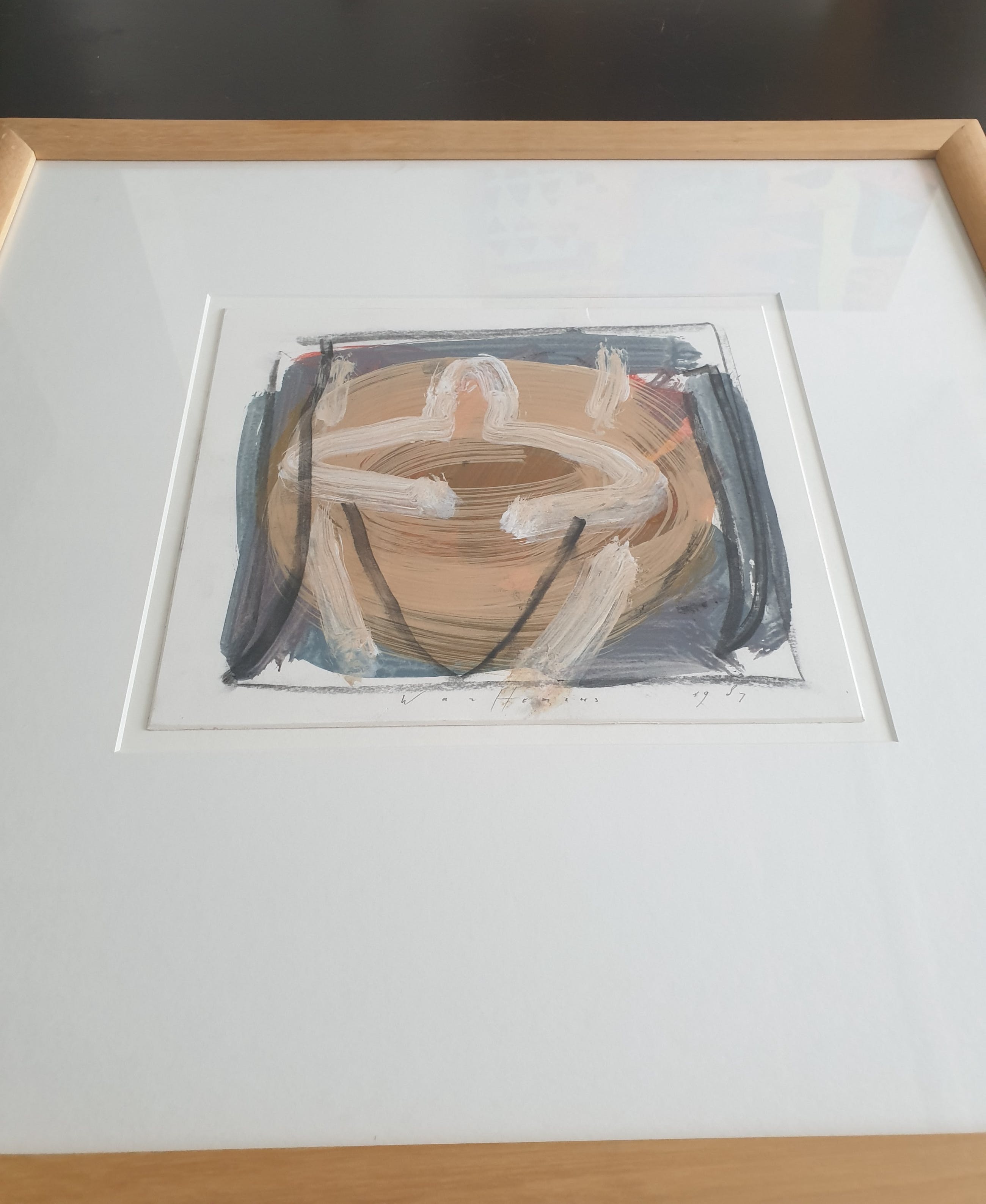 Gouache uit 1987 zonder titel. Een relatief klein werk, wel erg mooi. Er is een kleine oneffenheid in het papier (mb), zie foto.