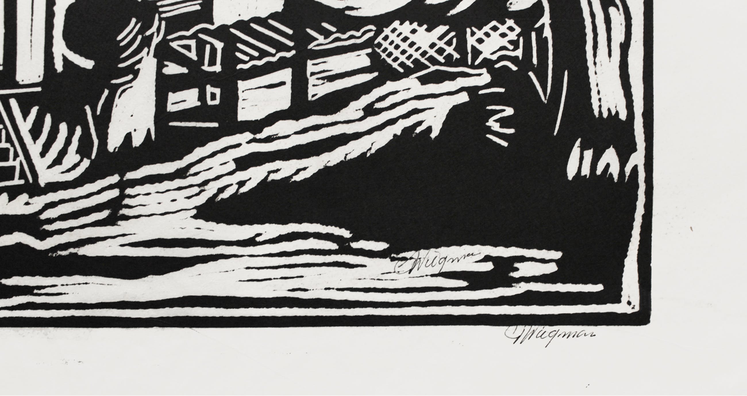 2 linodrukken op Japans papier van Piet Wiegman  (Heemstede 1930 – 2005)Â