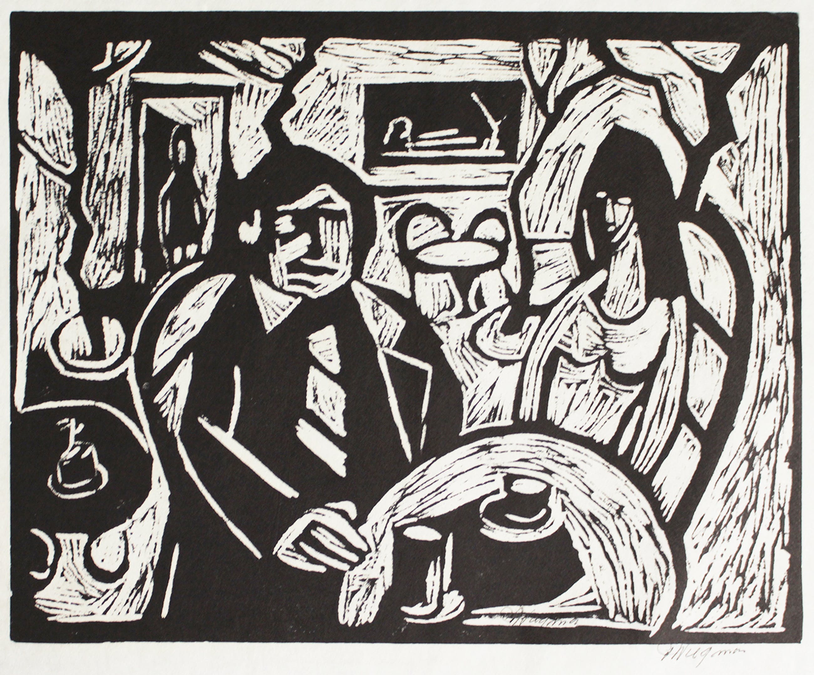 maat afdruk lino 'Café: ca. 34 x 43 cm.