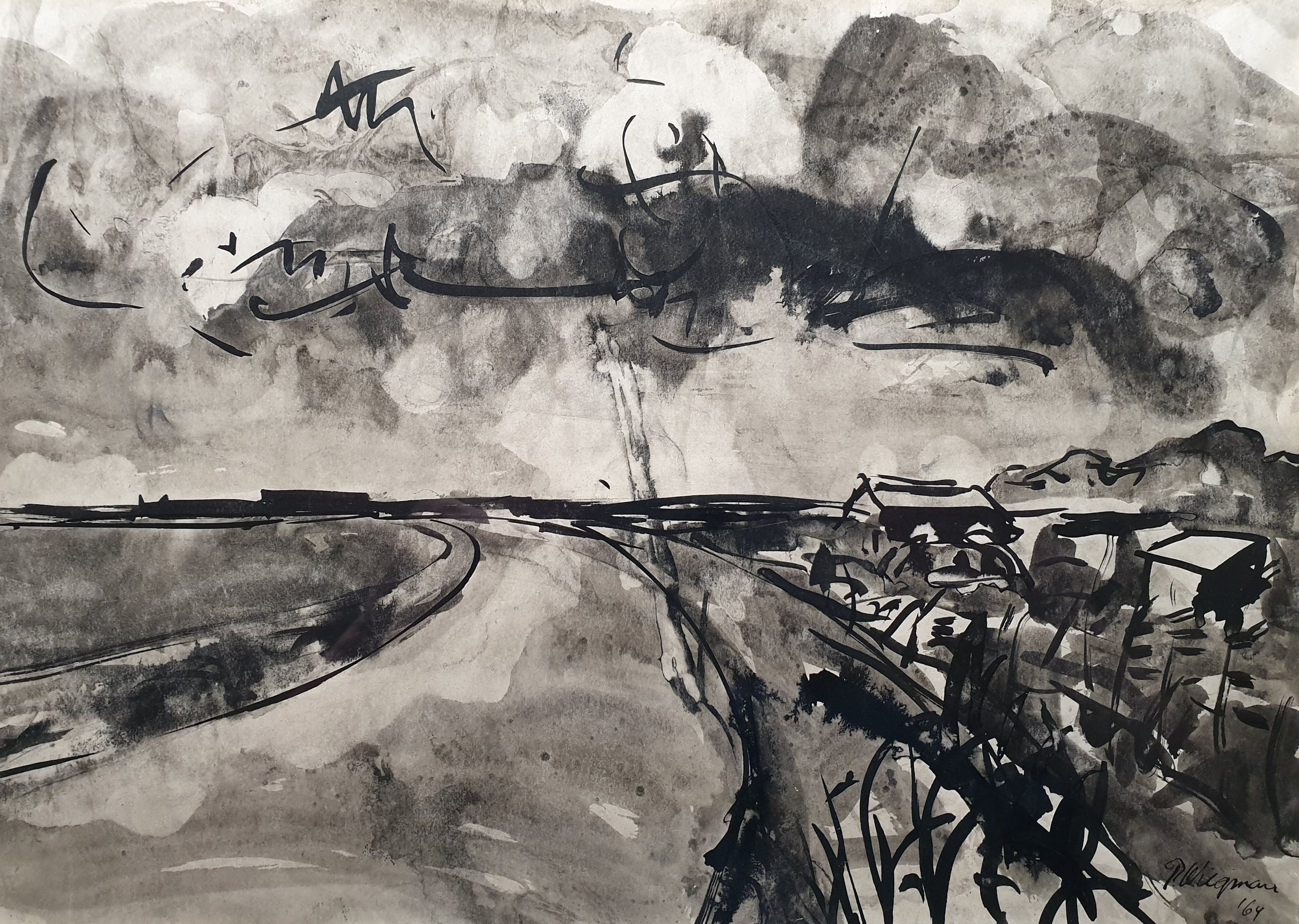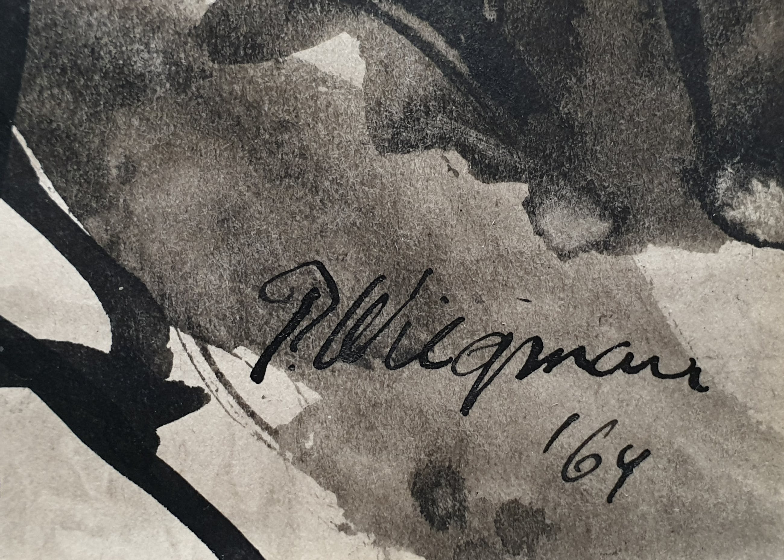 Wegens beëindigen kunsthobby doe ik afstand van de collectie Piet (Petrus Jacobus Maria) Wiegman (Heemstede 1930 – Heemstede 2008) Inkttekening Titel onbekend Jaar: 1964 Rechtsonder gesigneerd Piet Wiegman ’64