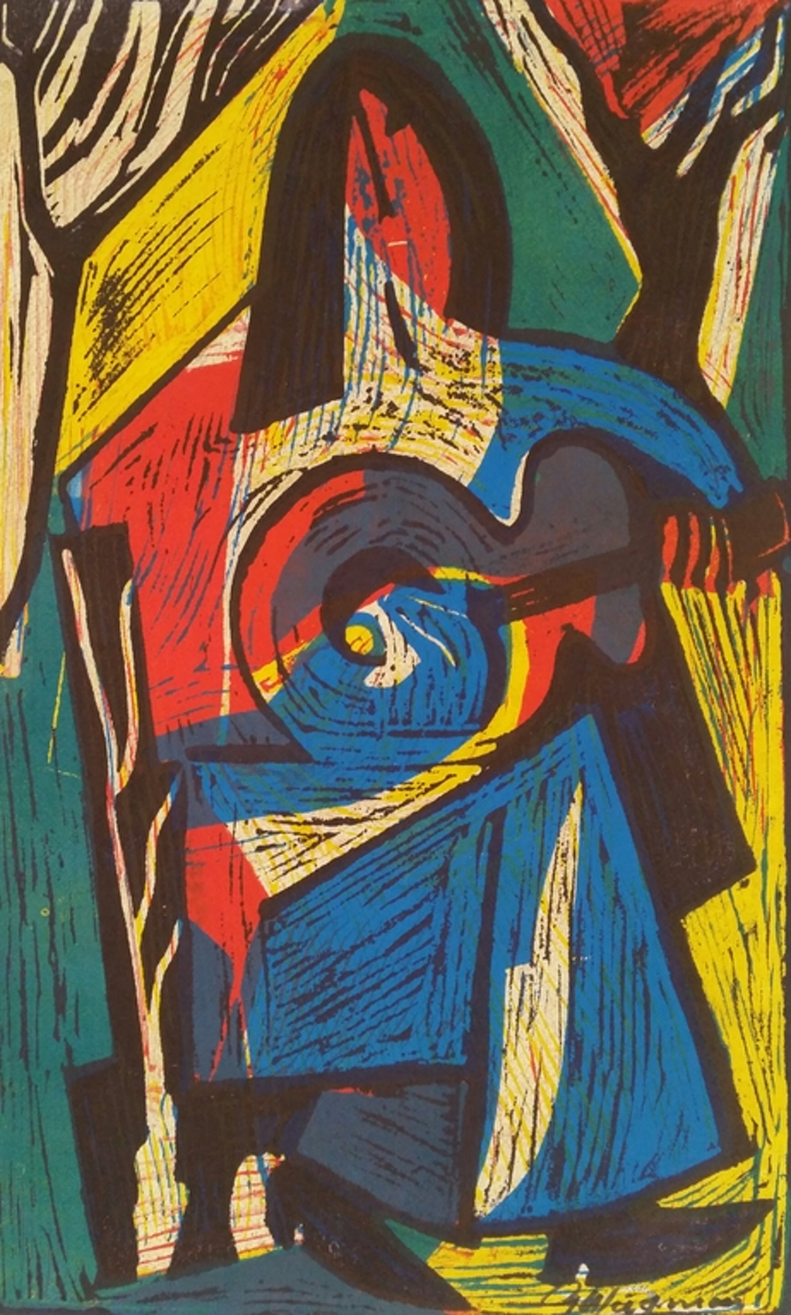 Originele Linosnede van kunstenaar Piet Wiegman.