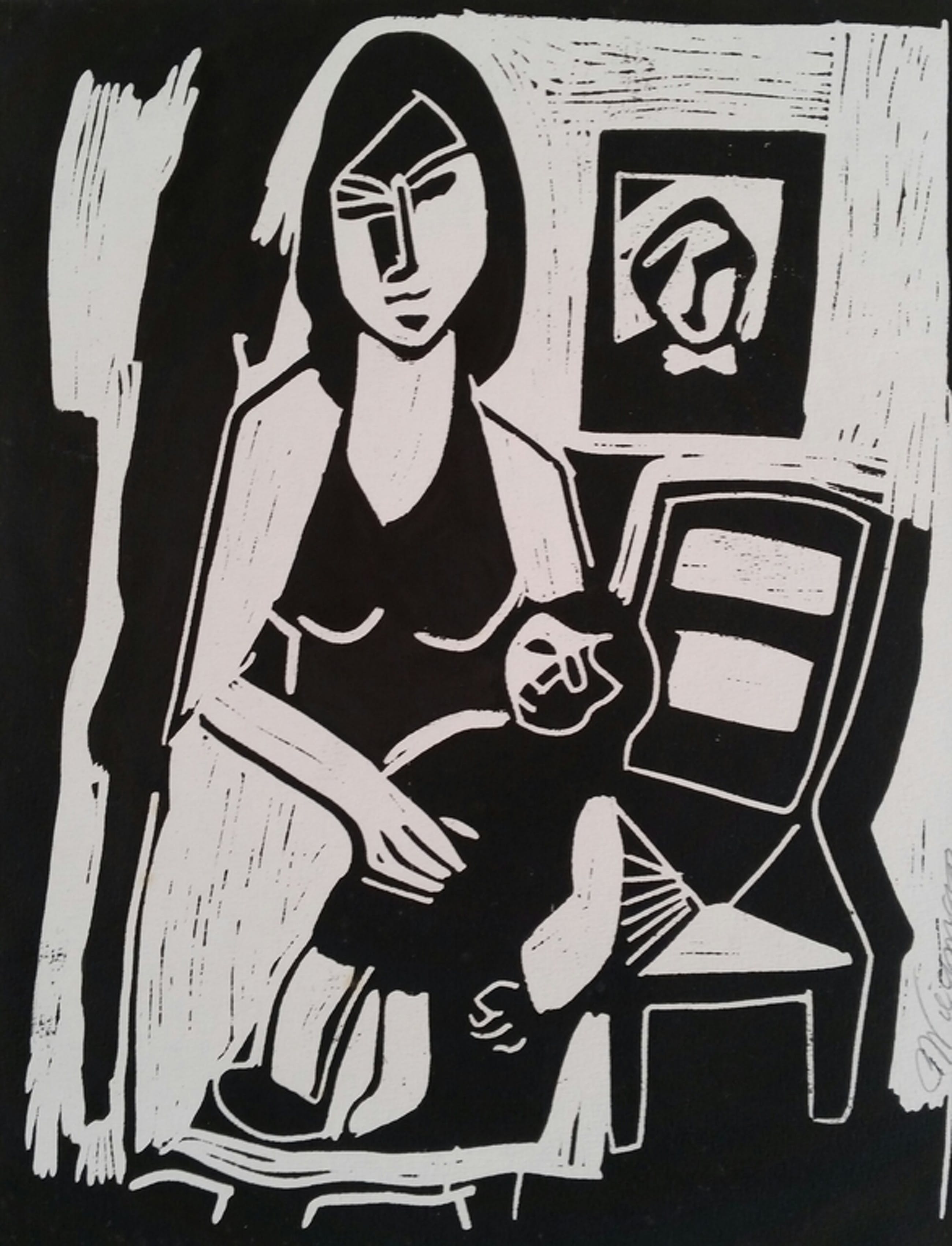 Originele Linosnede van kunstenaar Piet Wiegman.