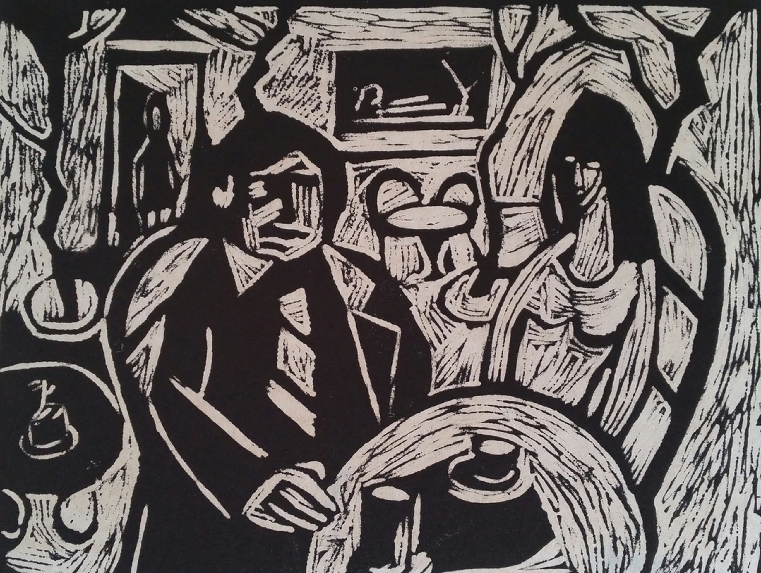 Originele Linosnede van kunstenaar Piet Wiegman.