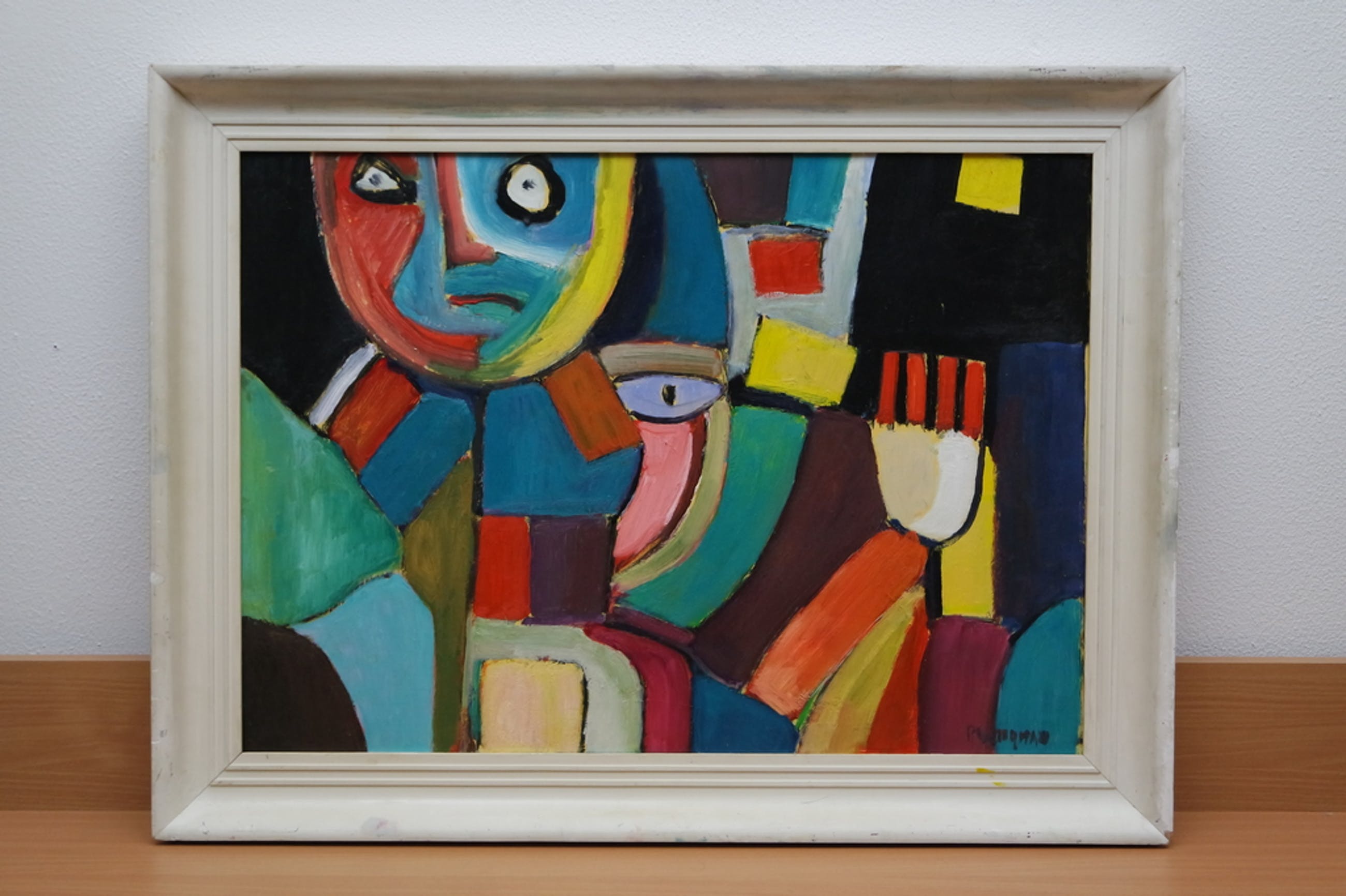 Een prachtig abstract schilderij van de kunstenaar Piet Wiegman (II) (1930-2008). Met gratis lijst. Gesigneerd rechts onder. Afmetingen met lijst: 83 cm. x 63 cm. Boardmaat: 71,5 cm. x 51,5 cm. Conditie board: goed. Het kunstwerk wordt goed gepakt en verzekerd verzonden. Afhalen is mogelijk.