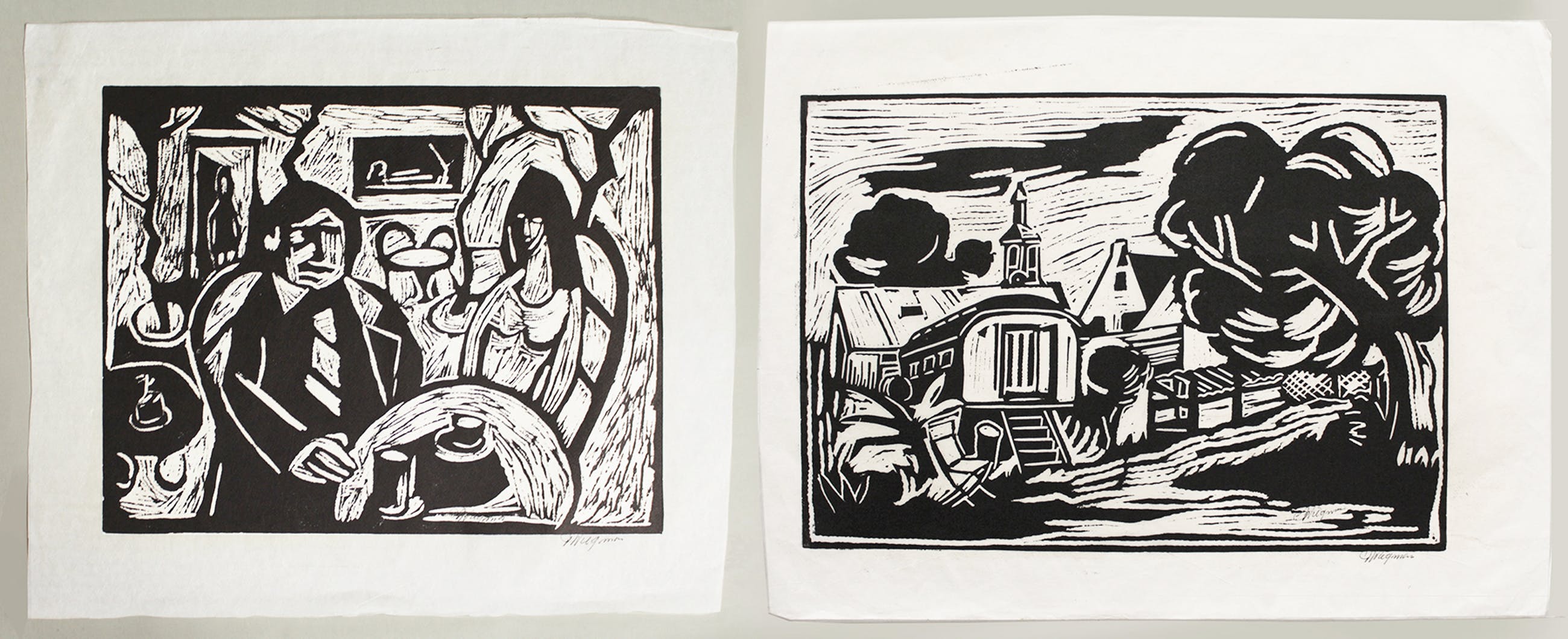 2 linodrukken op Japans papier van Piet Wiegman (Heemstede 1930 – 2005)