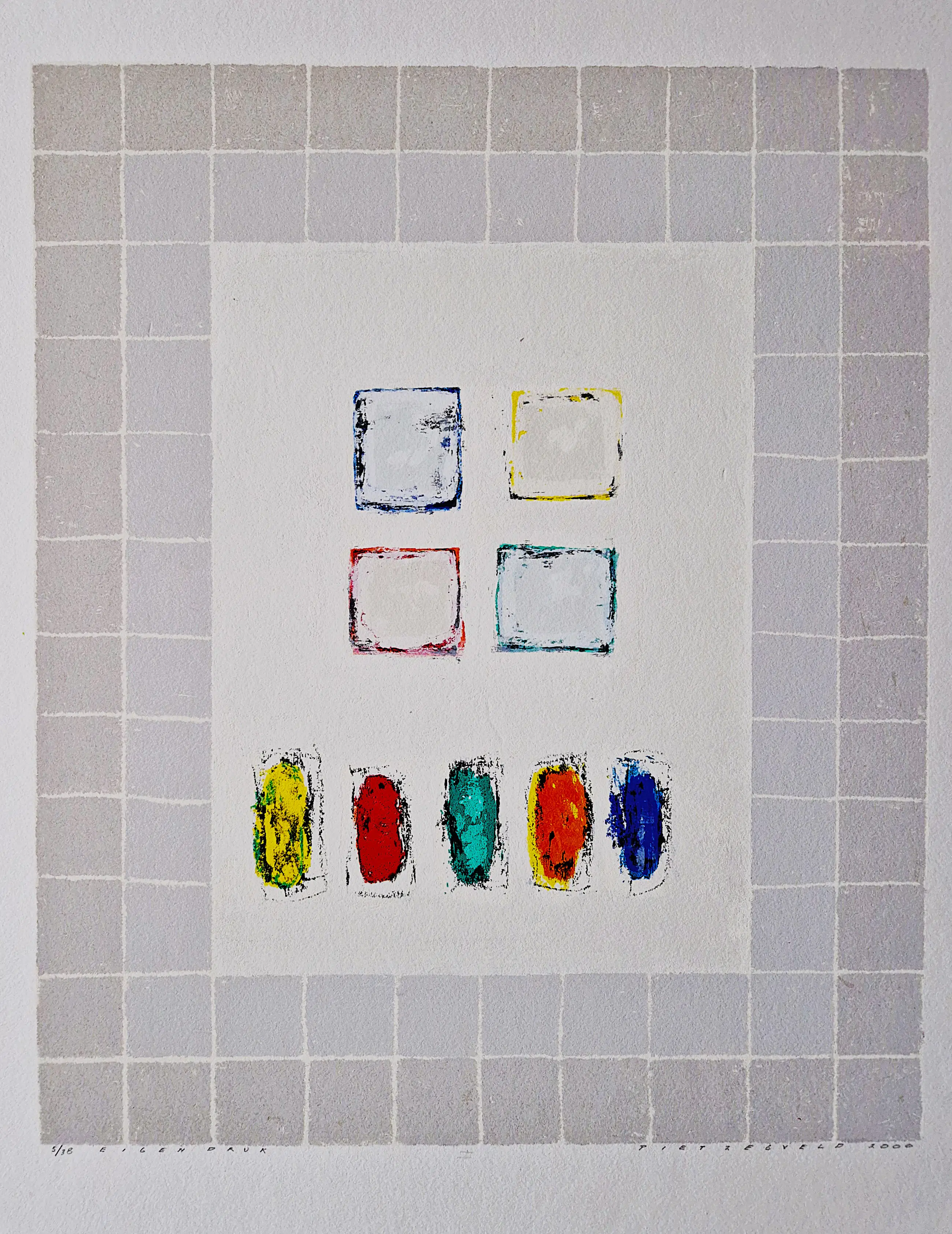 Piet Zegveld (1946) begeeft zich al jaren in de Nederlandse schilderkunst met steeds dezelfde vierkantjes, kadertjes en cirkels als uitgangspunt. Met een meest minimale beeldtaal alles vertellen. Dat is zijn streven. Het beperken is een bewuste keuze. Toch leidt dit geenszins tot verstarde kunst. Zegveld´ s composities lijken identiek, maar elk schilderij staat of valt bij die ene extra, zo eigen schildertoets, dat subtiele lijntje, de zoveelste zorgvuldige afgewogen extra laag over de vele eerdere lagen. Ze sturen de kijker in het beleven en nodigen uit er een eigen wereld bij in te vullen. Voor elk resultaat is geknokt, zijn drastische schilderkunstige beslissingen genomen, grenzen verlegd, heeft de schilder zichzelf weten te verrassen. Piet Zegveld kan het beste worden getypeerd als een schilder met een minimale beeldtaal, maar met een ontzettend grote zeggingskracht.
