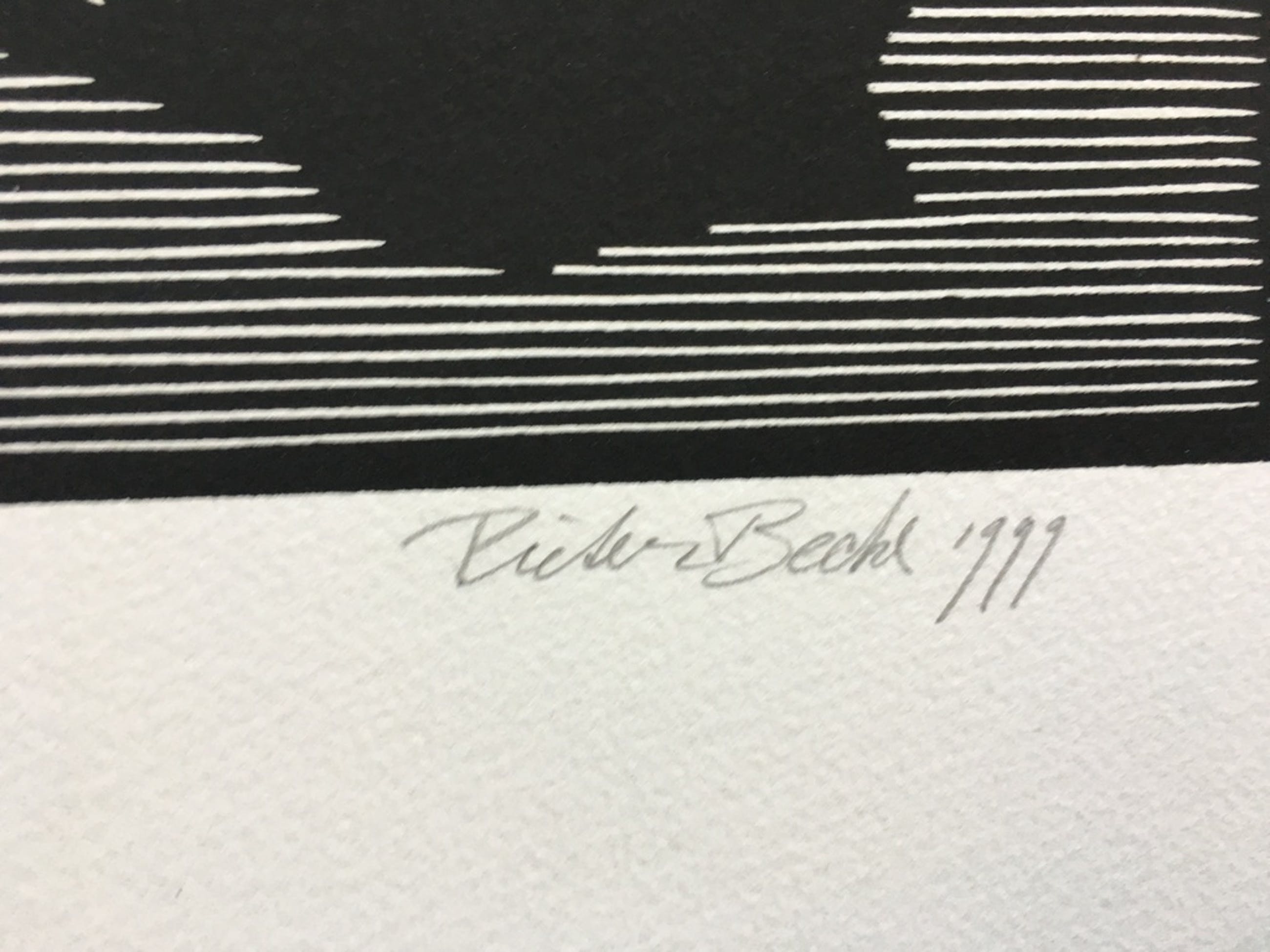 Mooie, Pieter Becks kenmerkende Litho. Blad 76x57 en afbeelding 45x45.