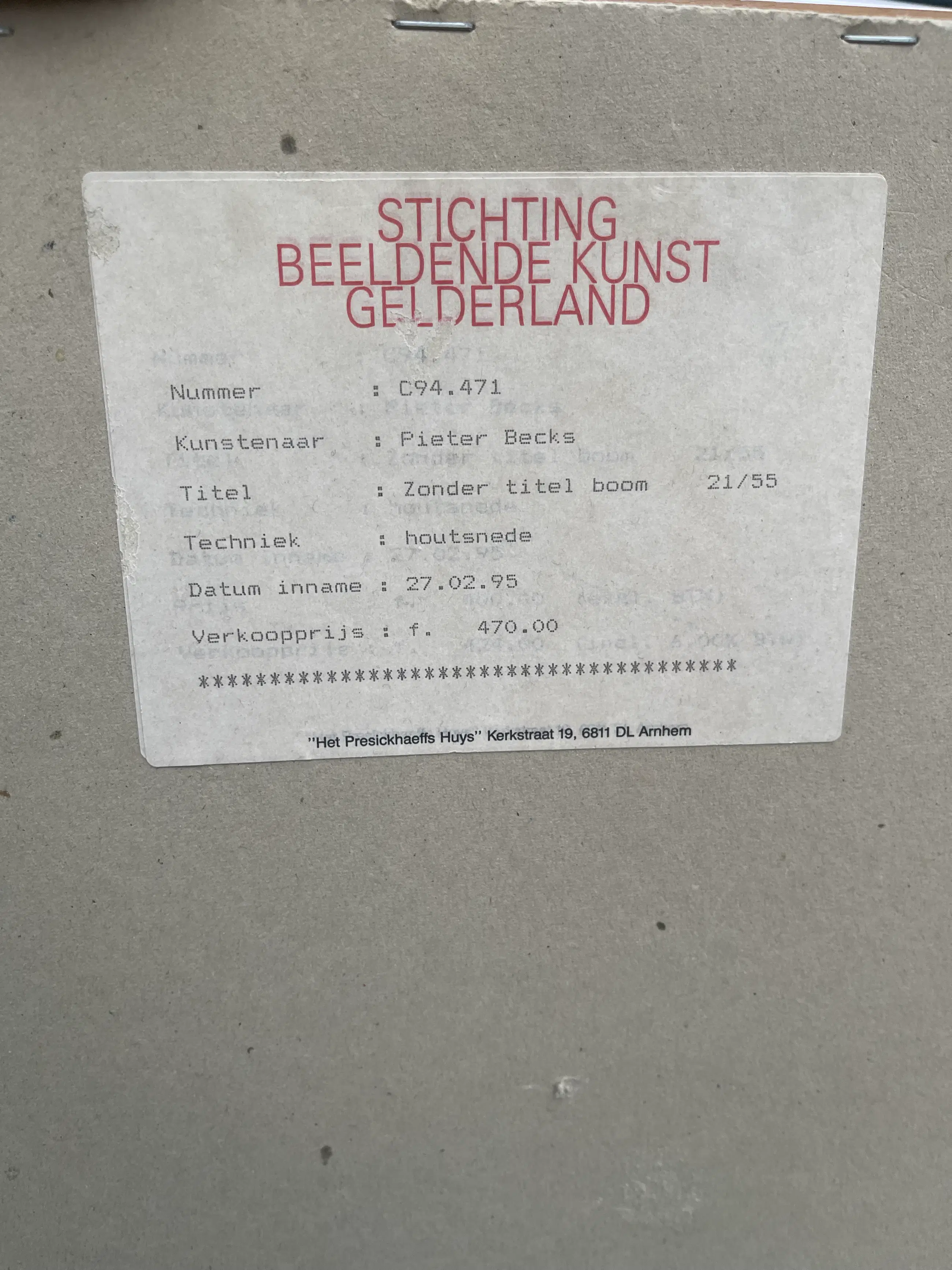 Het werk is af te halen op locatie. Als koper dient u zelf verpakkingsmateriaal mee te nemen. De locatie is: Bathmen, Nederland