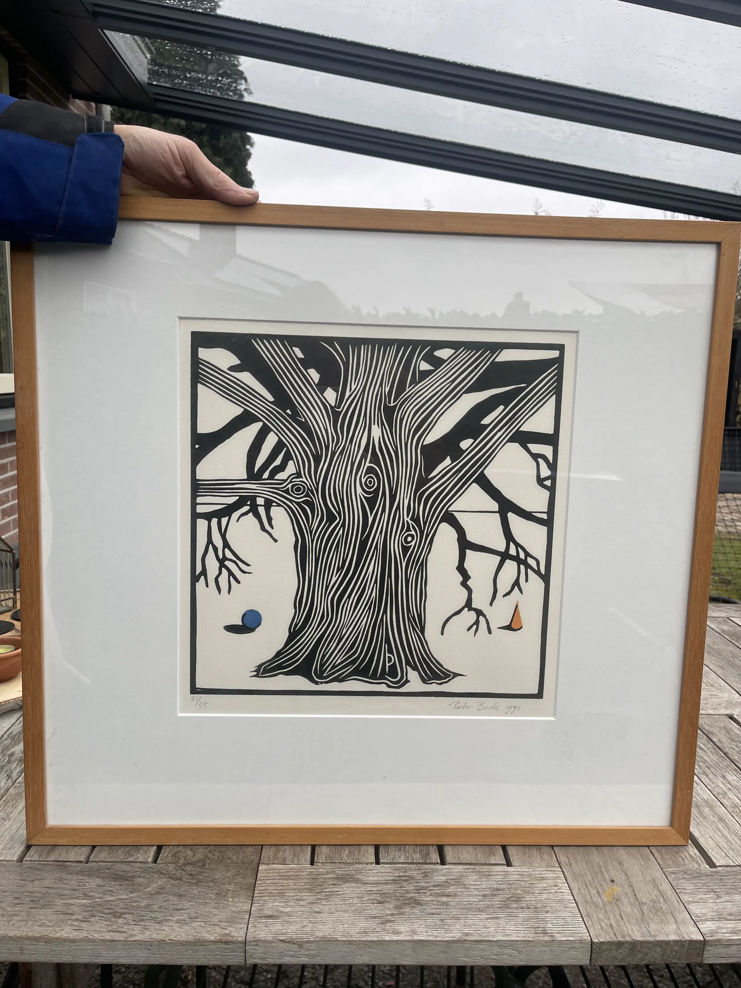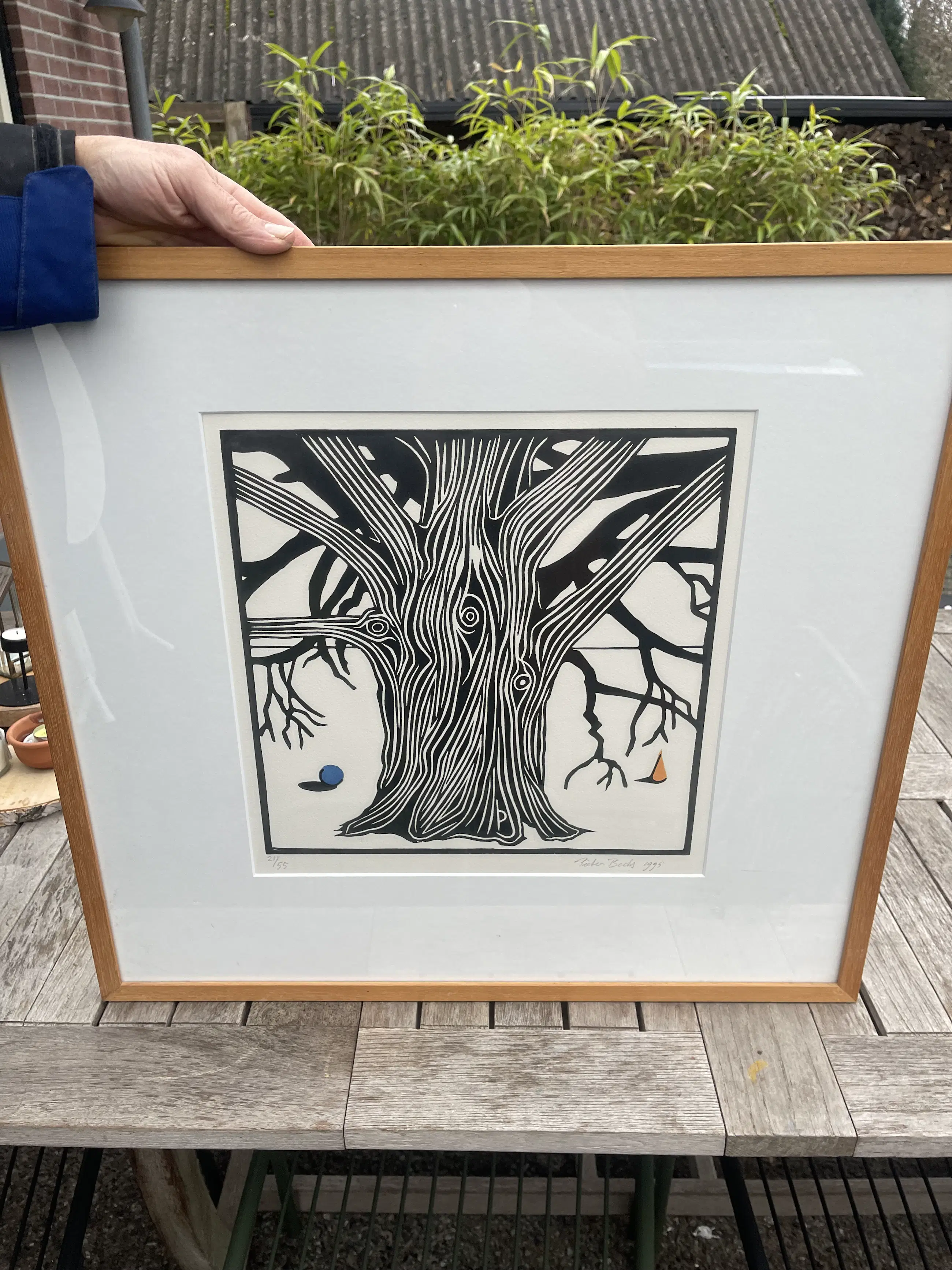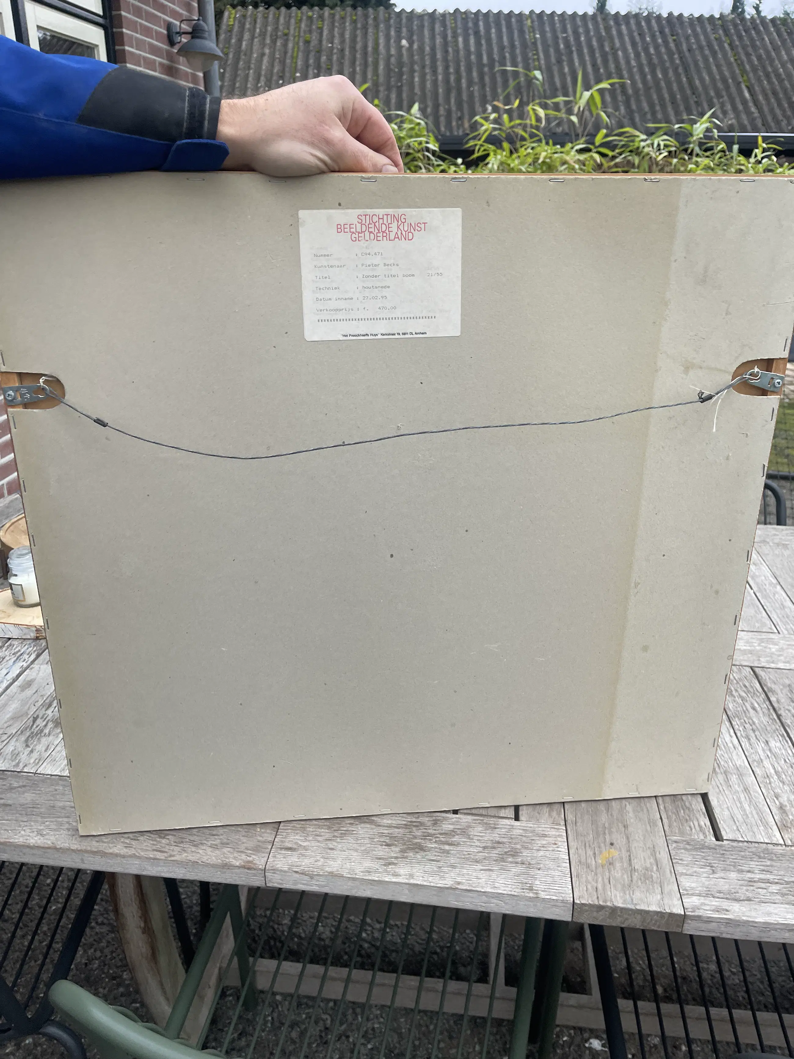 Voor het goede licht hebben we de foto buiten gemaakt, uiteraard staat het werk binnen te wachten op z’n nieuwe eigenaar.