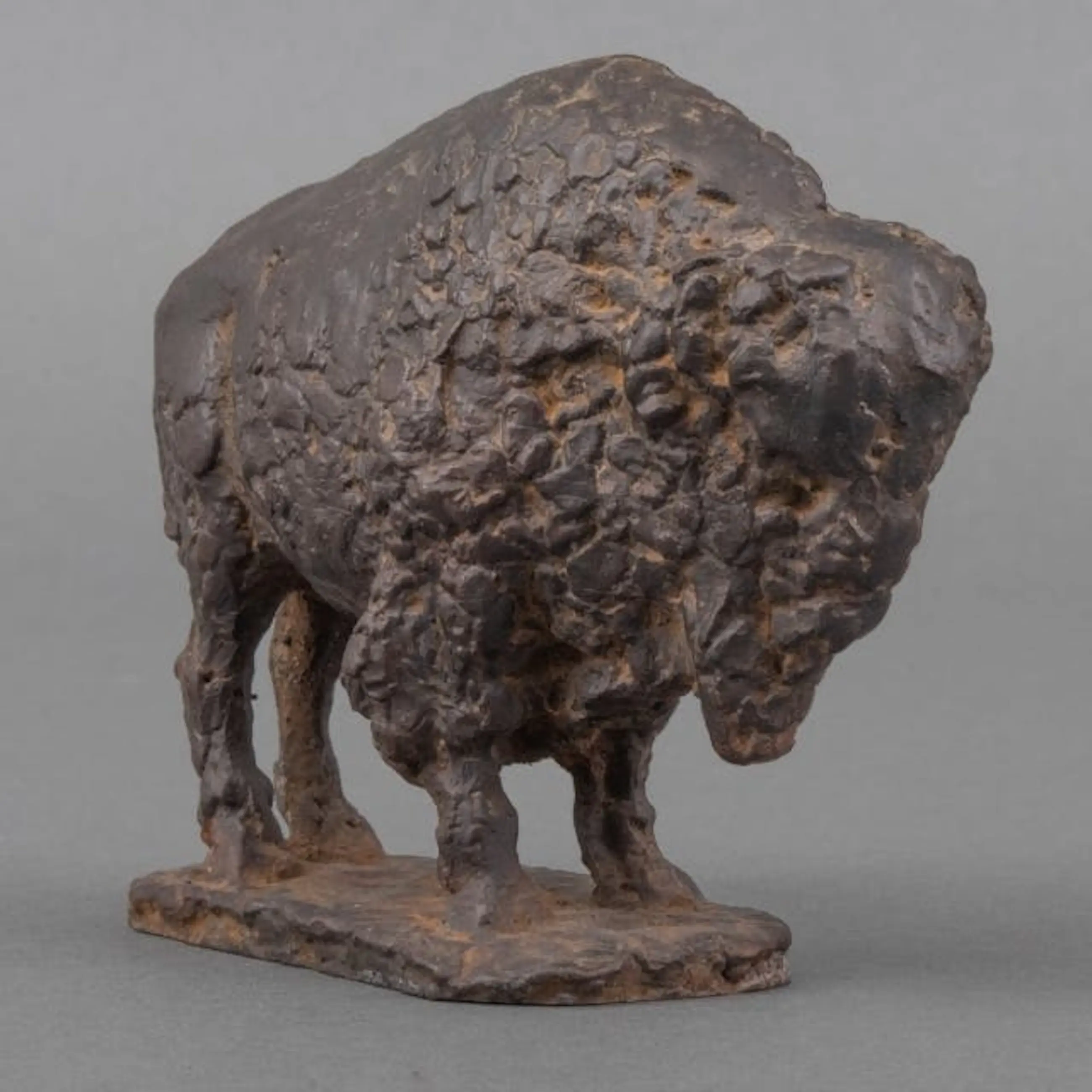 Bronzen beeld van Pieter d'Hont. Voorstelling van een bizon. Afmetingen beeld: H12 x B16cm x h6cm. Het beeld is uitgegeven in een oplage van ongeveer 10