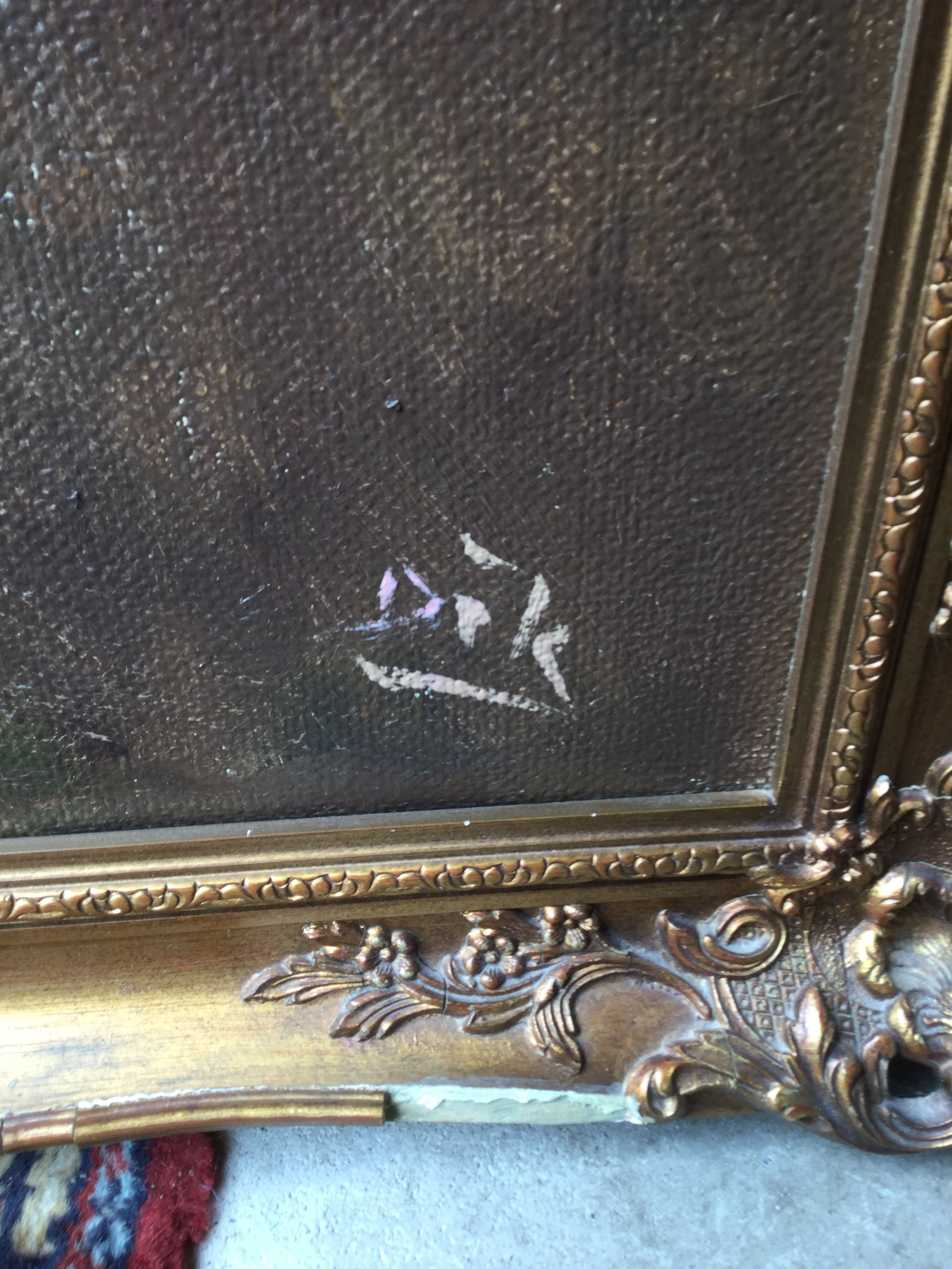 staat: vergeelde vernis en oppervlaktevuil door de tijd, doek is wat slap. staat lijst: oppervlaktevuil en slijtschade door de tijd, ornamentschade | |
