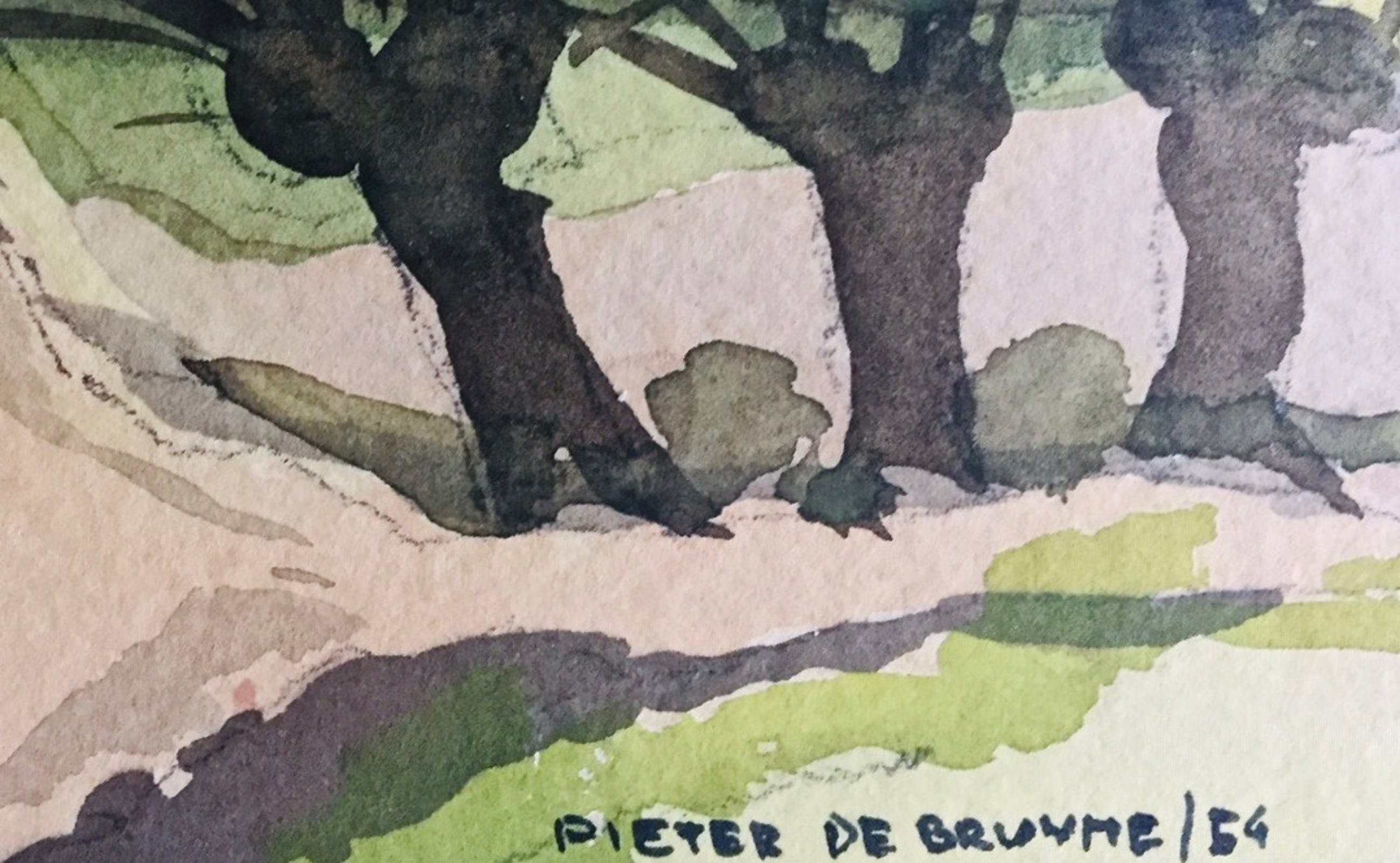 Pieter de Bruyne is in feite veel bekender alsmeubelontwerper maar volgde een opleiding als decoratieschilder aan het Sint Lucas te Brussel. In 1955 werd hij daar trouwens leraar. Niet lang daarna volgde hij een stage bij studioPont-Fornarolli-Roselli te Milaan en vervolgdezijn loopbaan in het ontwerpen van meubelswaarbij hij de directe functionaliteit weer centraalplaatste. Prijzen die zijn meubels bij veilingen op-brachten kunt U gratis raadplegen op de site vanfindartinfo.