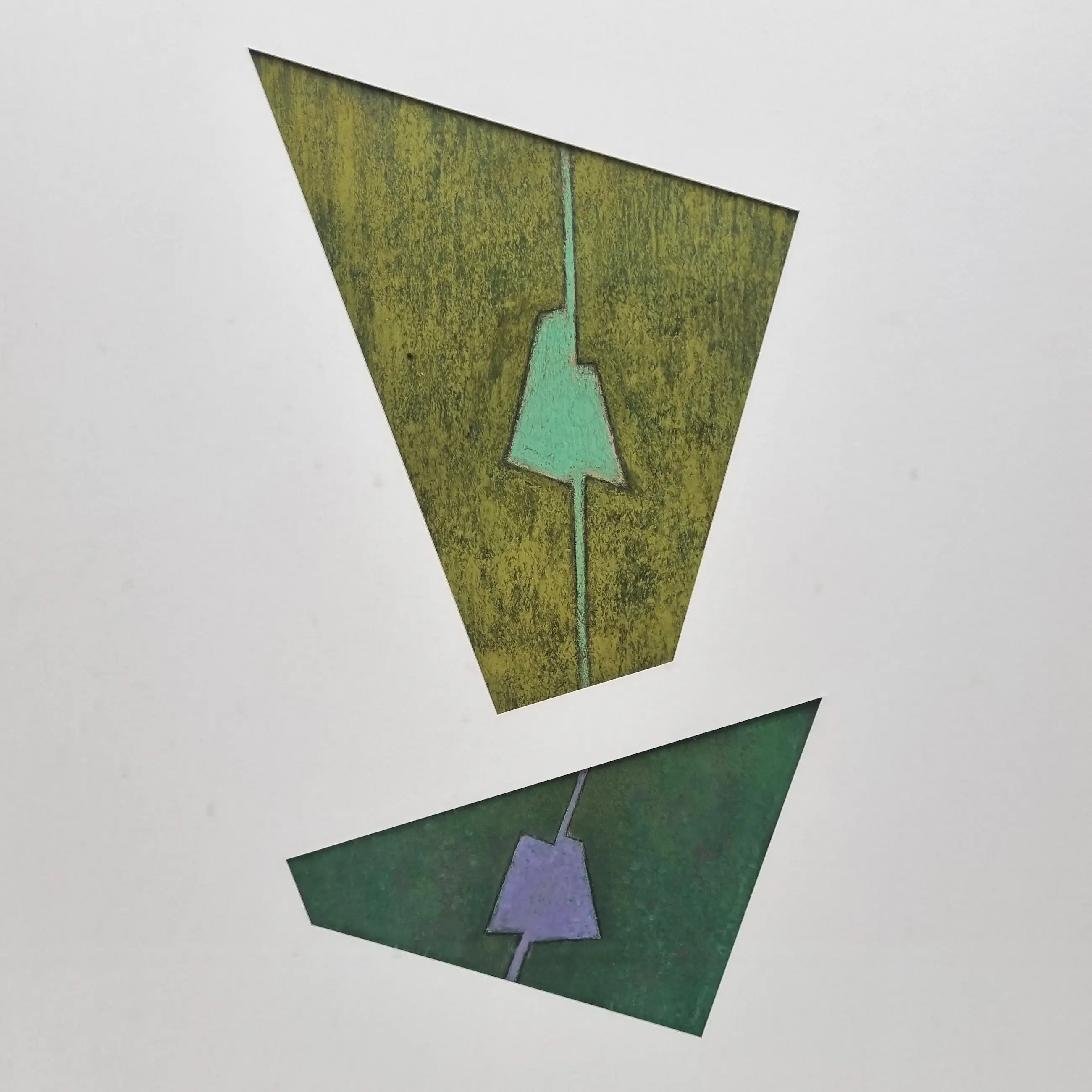 Bijzondere groentinten, acrylverf op papier, gedateerd 1946, in mooie op maat gemaakte houten lijst van Gehring / Heijdenrijk. Achter museumglas, 60 x 50 cm, inclusief de lijst 75 x 62 cm.