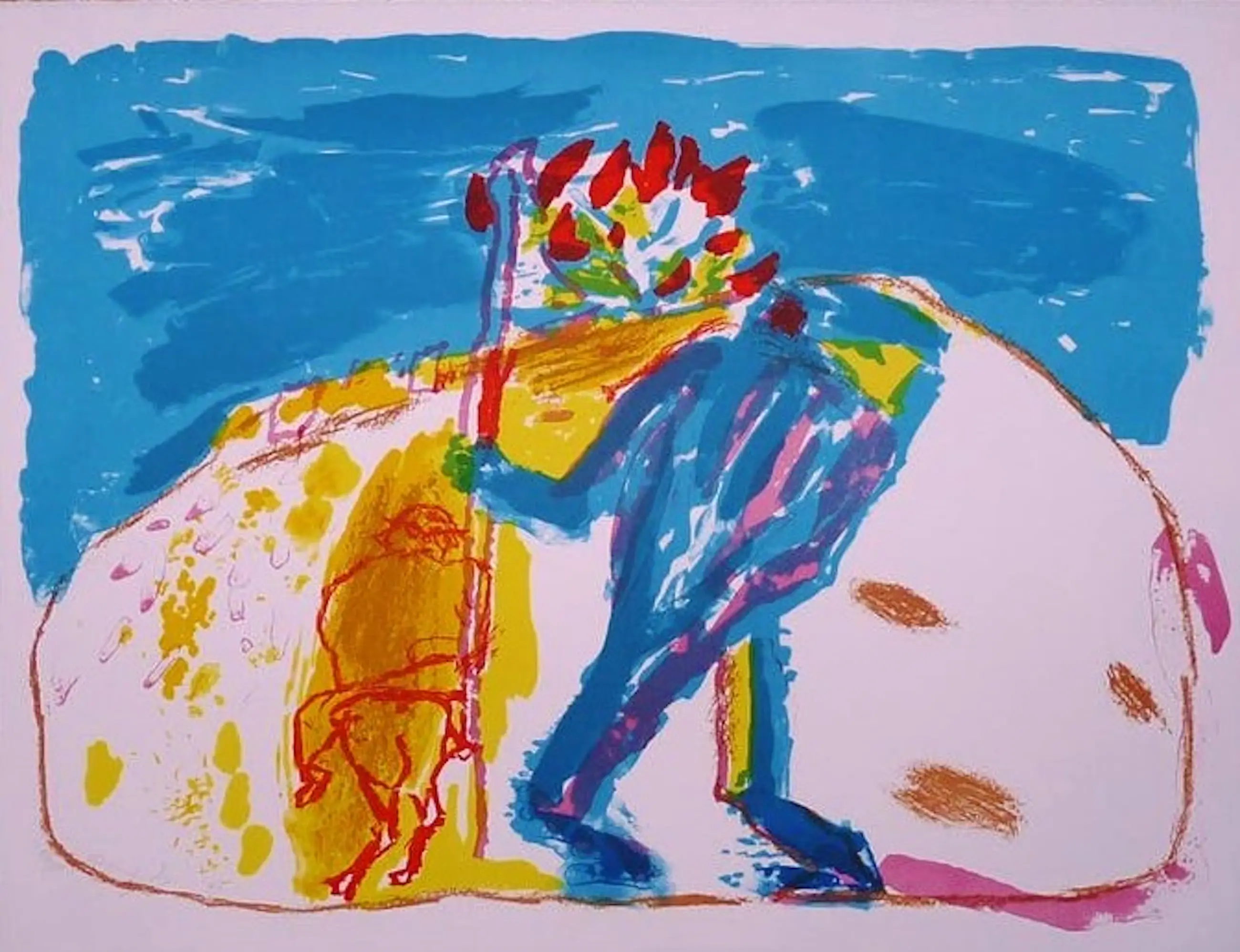Kleurrijke zeefdruk van Pieter Defesche Handgesigneerd, gedateerd en genummerd met potlood. Gelimiteerde oplage van 100 exemplaren Werk is nooit eerder ingelijst geweest, dus sprankelende kleuren.
