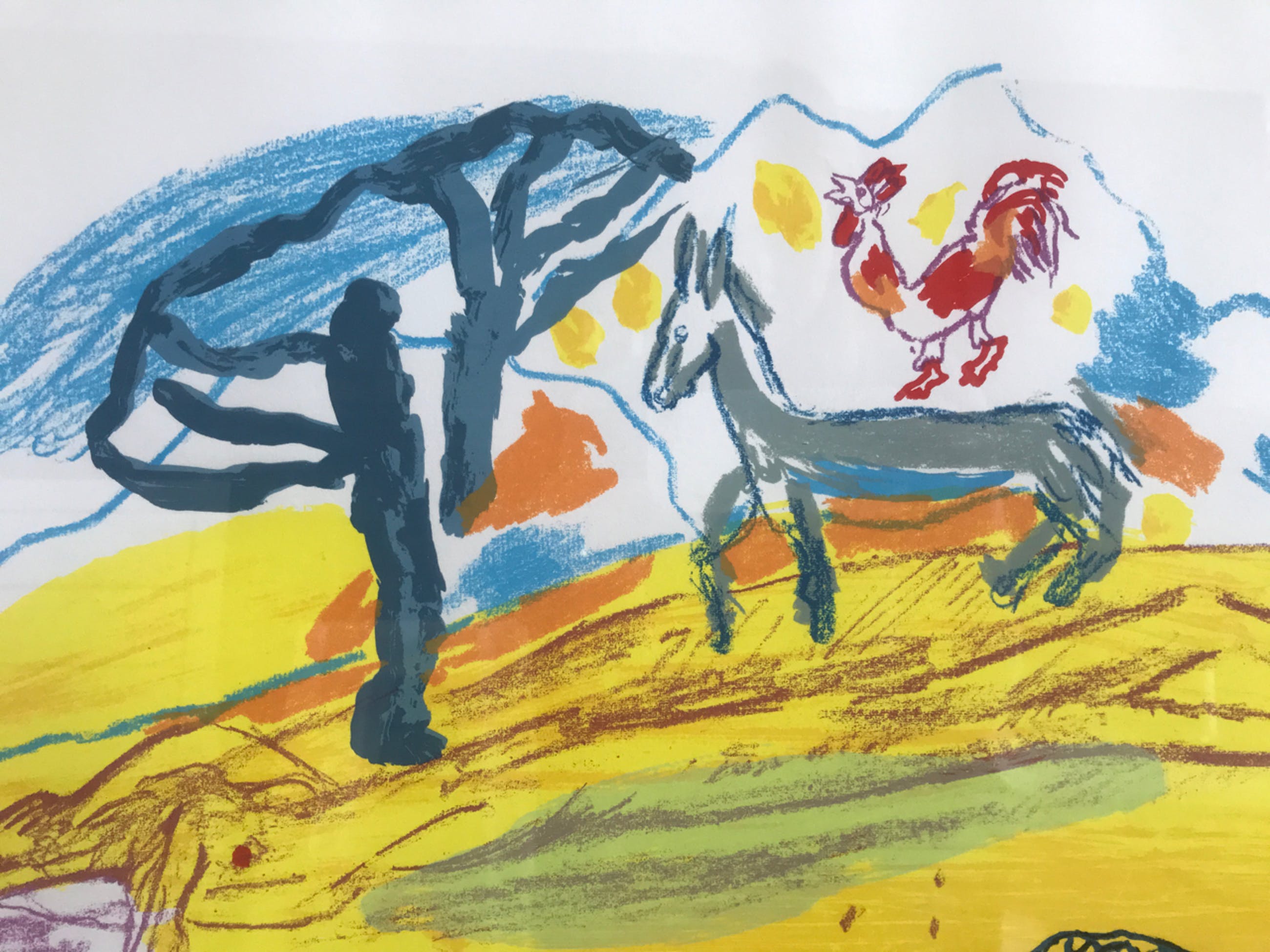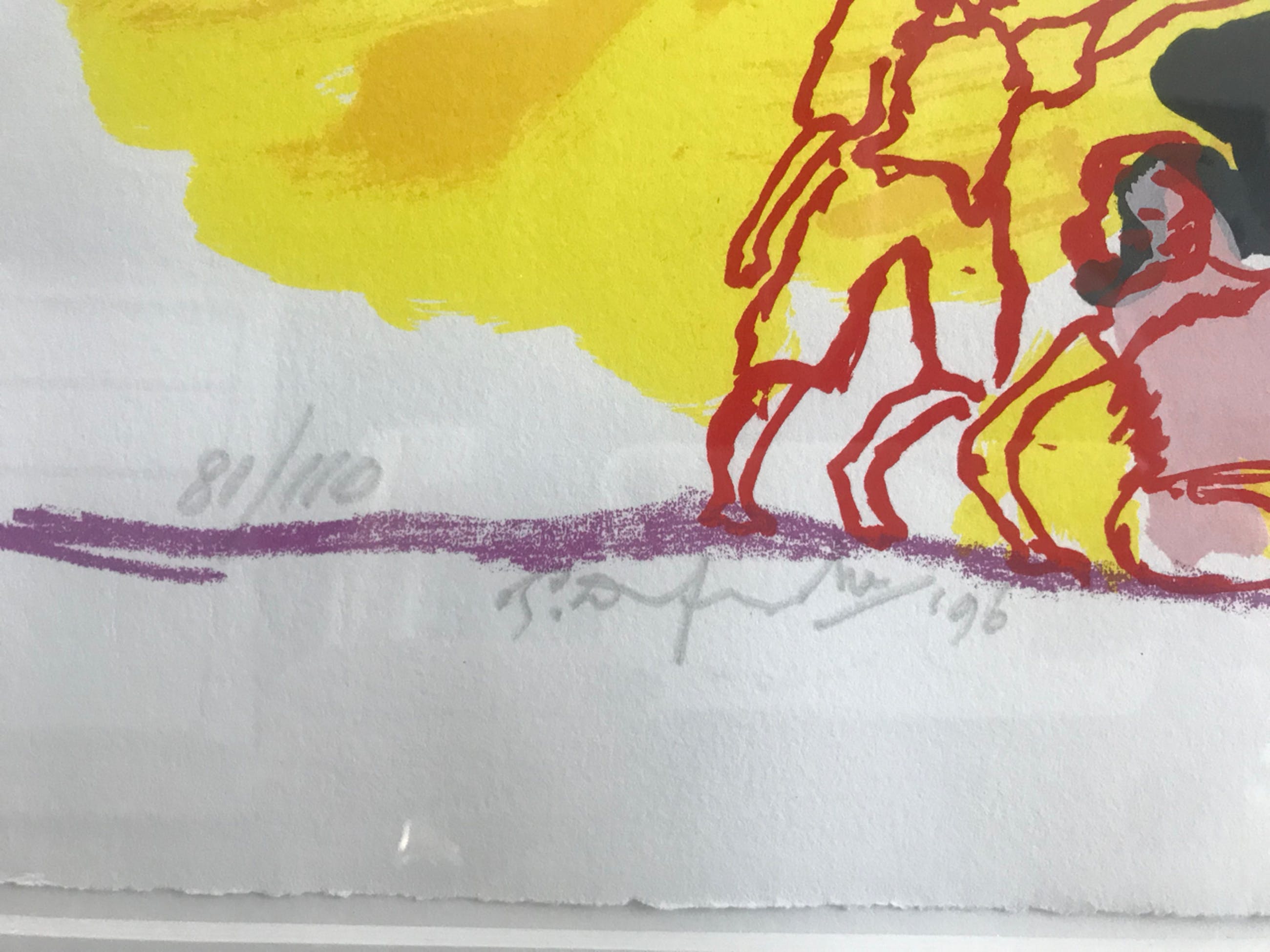 Schitterende handgesigneerde zeefdruk van de Limburgse kunstenaar Pieter Defesche. Zeer mooie heldere kleuren.