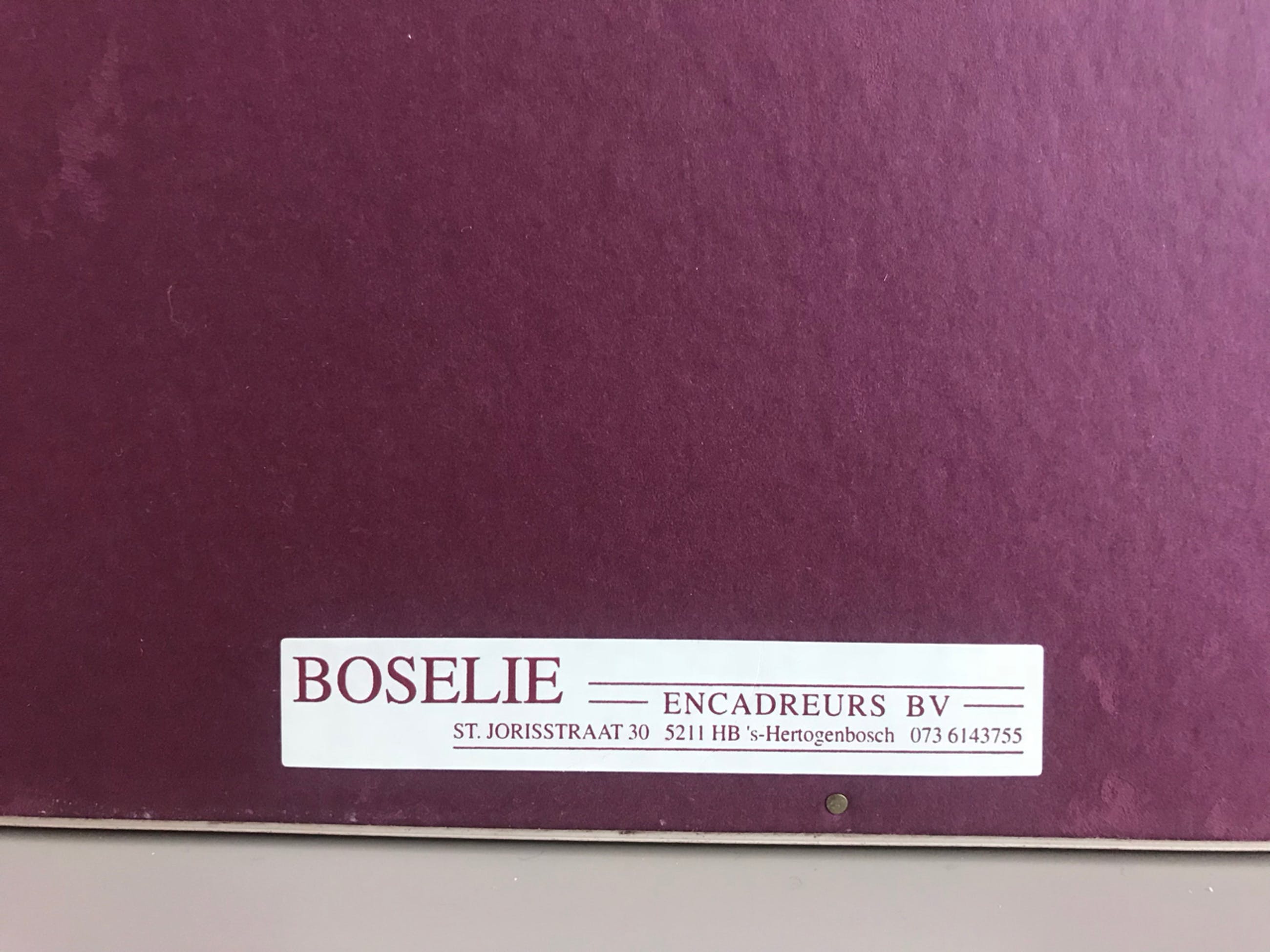 | Afhalen | Het werk is af te halen op locatie. Als koper dient u zelf verpakkingsmateriaal mee te nemen. De locatie is: 's-hertogenbosch, Nederland |