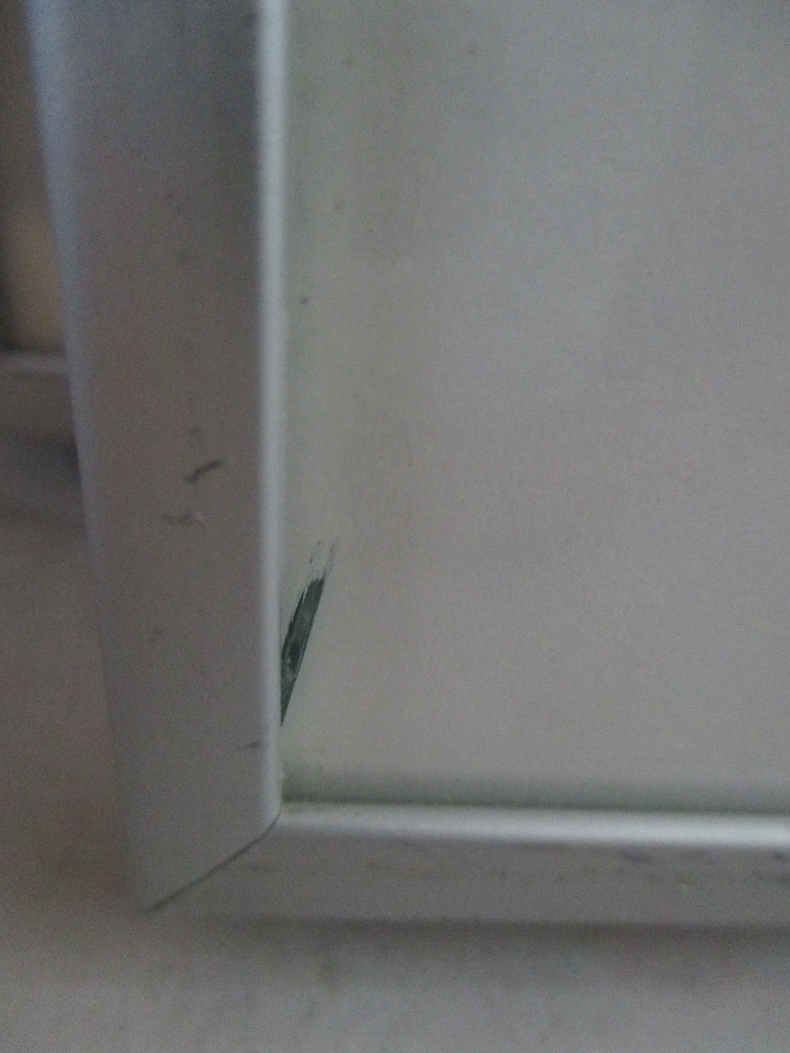 Linksonder zit een zeer klein barstje in het glas in de hoek, zie foto
