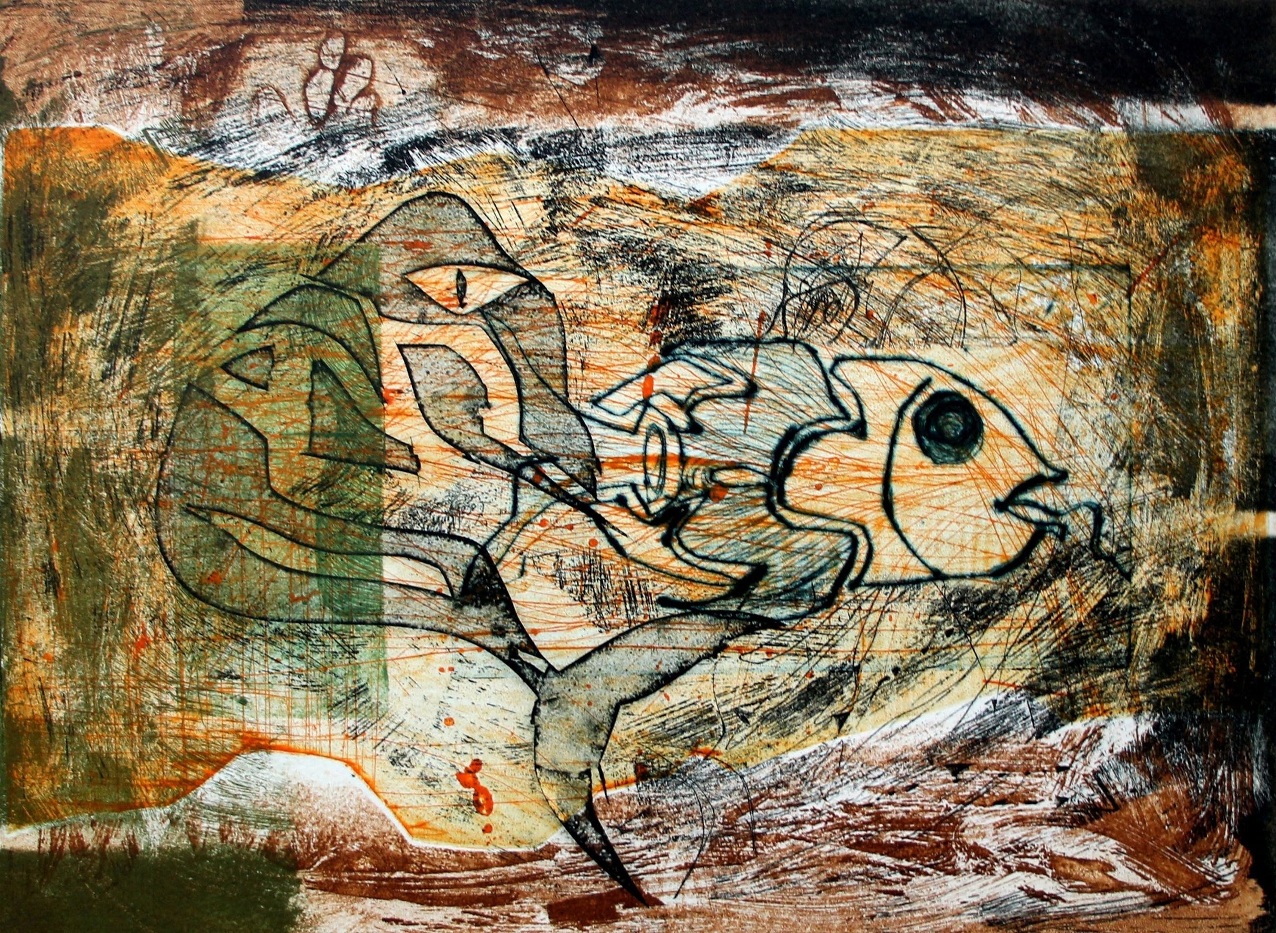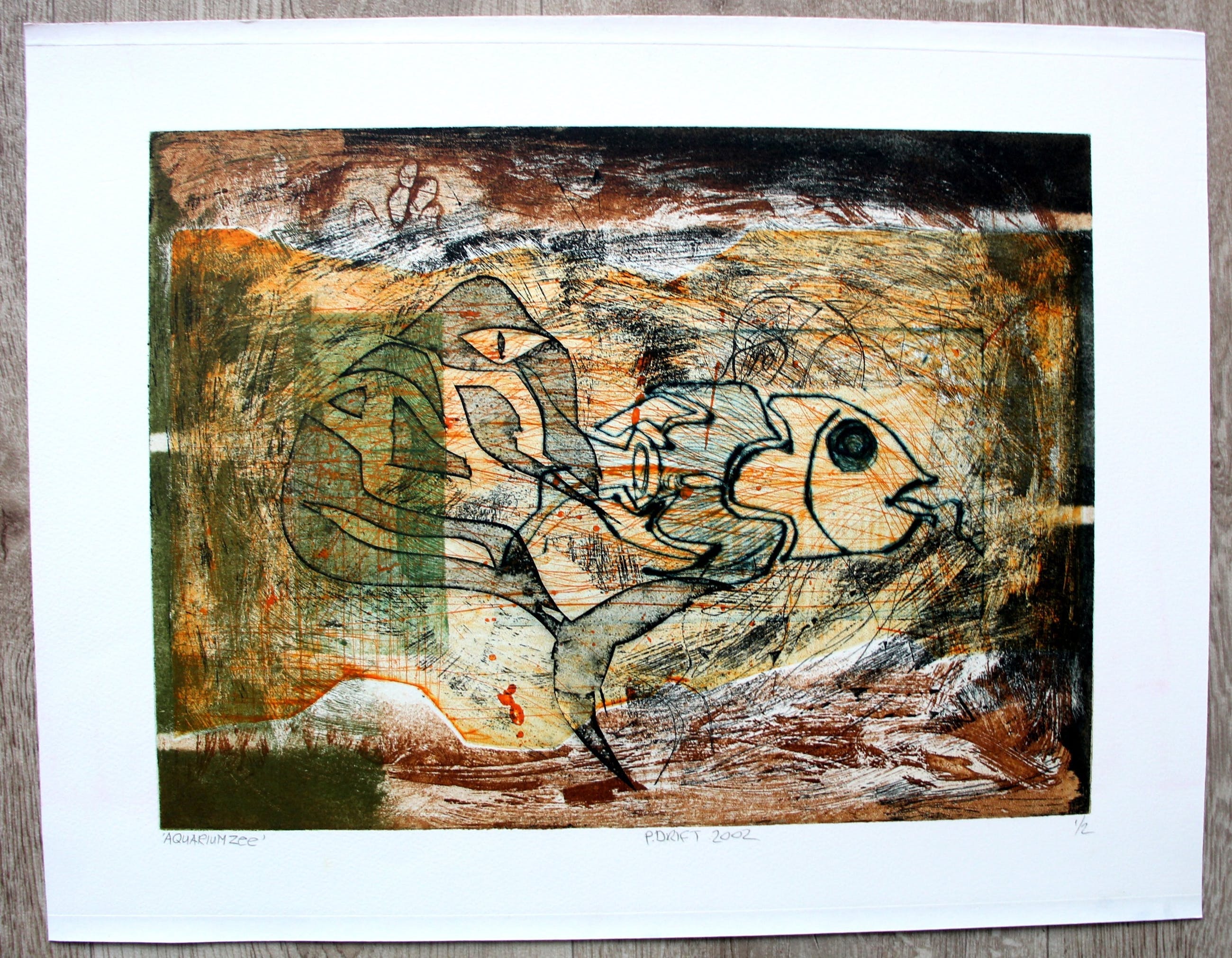 Ets van Pieter Drift uit 2002. Titel: Aquariumzee. Afmetingen blad: H37.5 x b48.5cm. Afmetingen voorstelling: H25,5 x b19,5 cm; Nummer: 1/2. Gesigneerd en gedateerd, rechts onder, door de kunstenaar met potlood. De authenticiteit van dit werk wordt volledig gegarandeerd. Een certificaat kan, op aanvraag, worden gemaild.