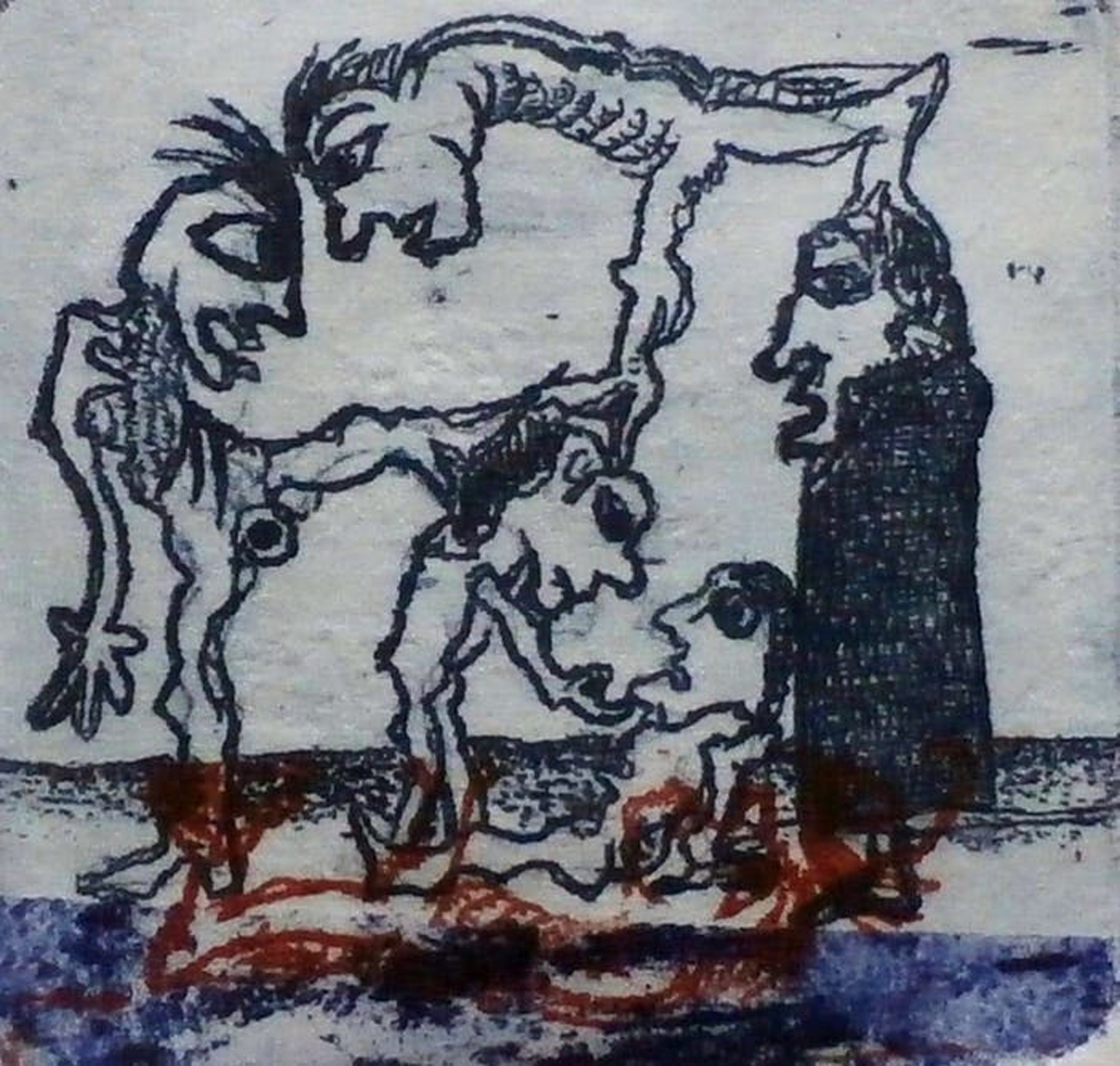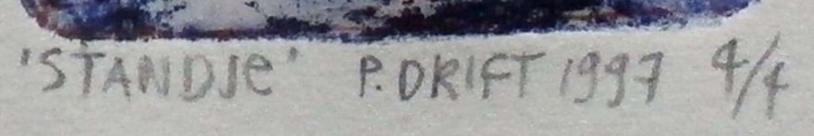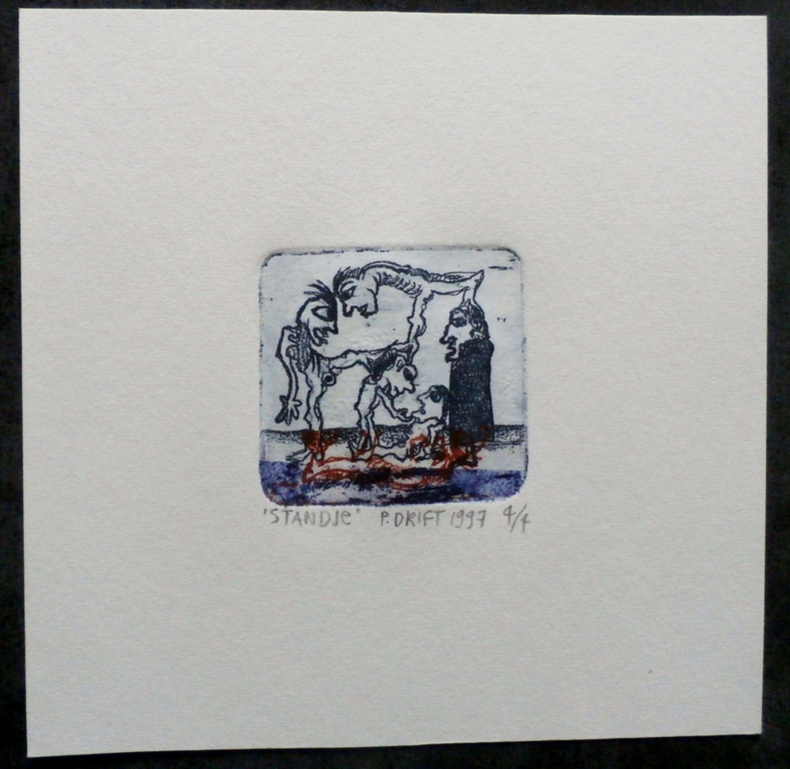 Ets van Pieter Drift uit 1997. Titel: "Standje". Nr 4/4. Afmetingen blad H12,5 x b12,5. Afmetingen voorstelling H4,5 x b4,5. Het werk is rechts onderaan, met potlood, gesigneerd door de kunstenaar. De authenticiteit van het aangeboden werk wordt volledig gegarandeerd. Een certificaat van echtheid kan, op aanvraag worden gemaild.