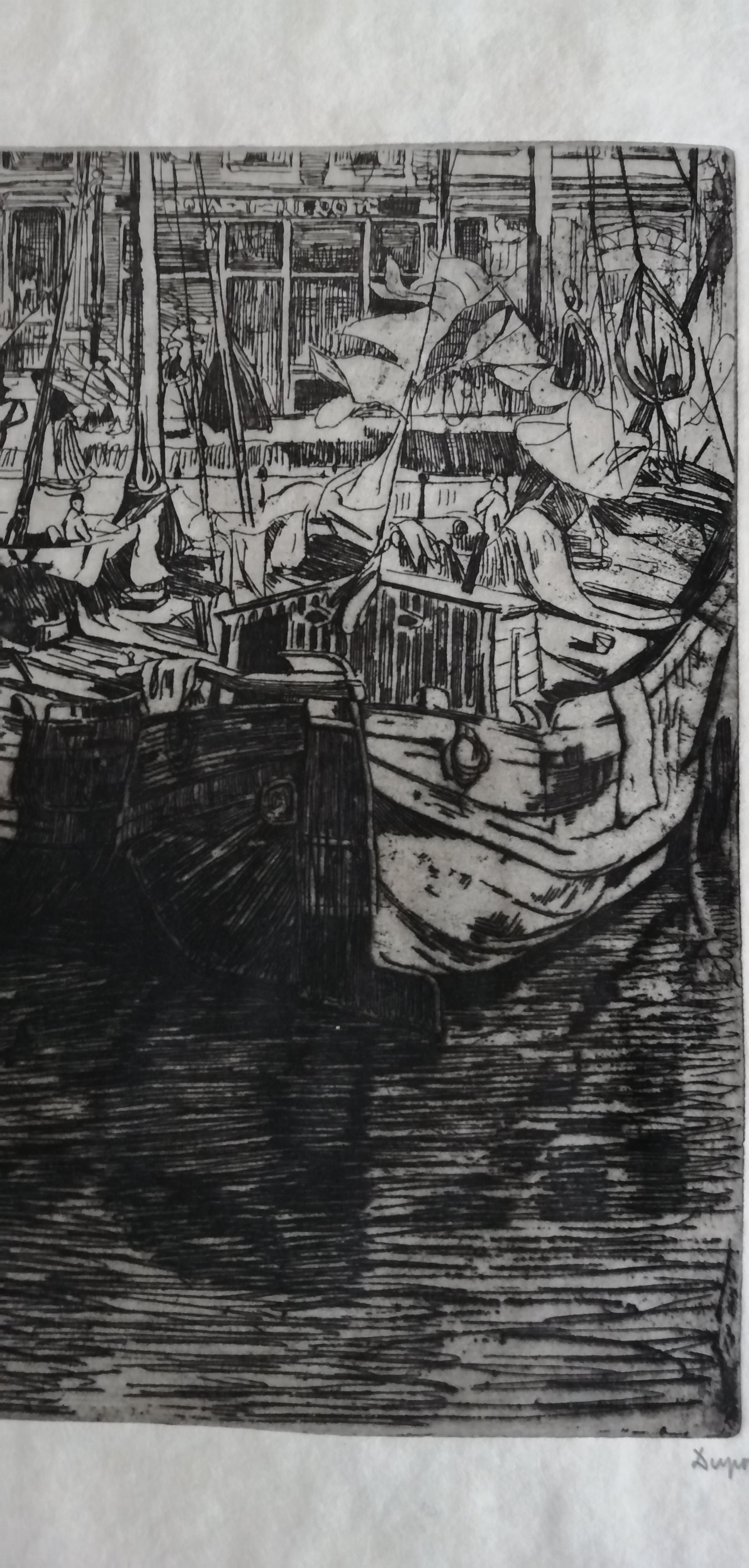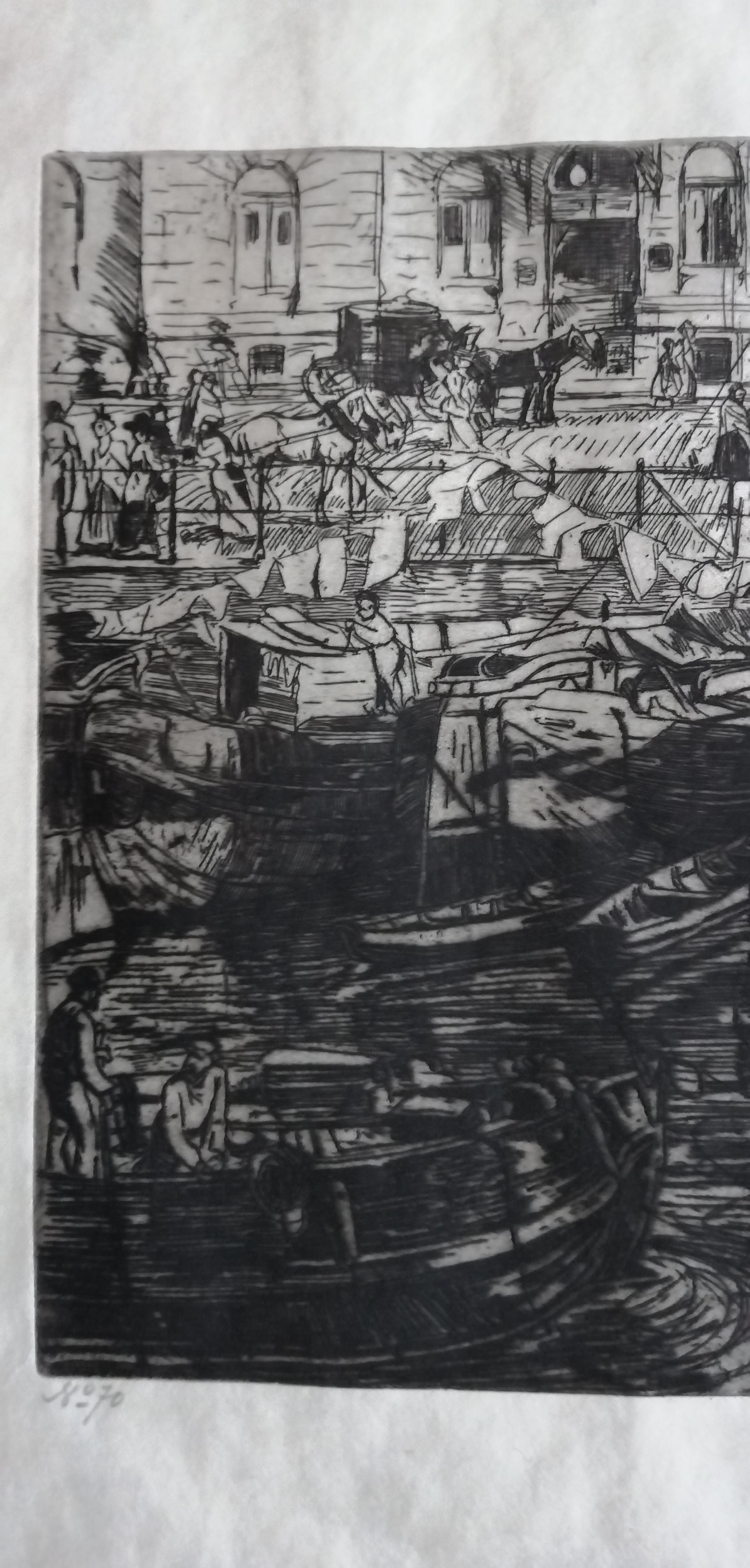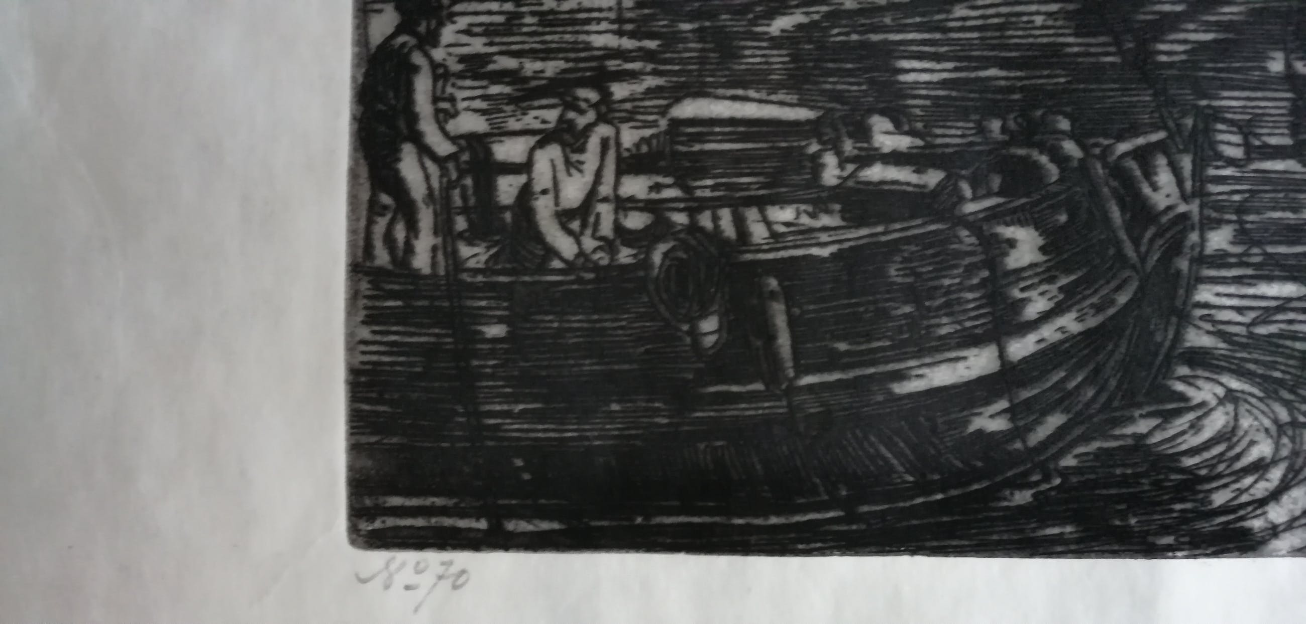 Ets uit 1895.Potlood gesigneerd rechtsonder.Genummerd 70 linksonder.Beeldmaat 21,2x39,6 cm.Bladmaat 49,5x64 cm.Losbladig.Literatuur: Catalogus Dupont no. 40.
