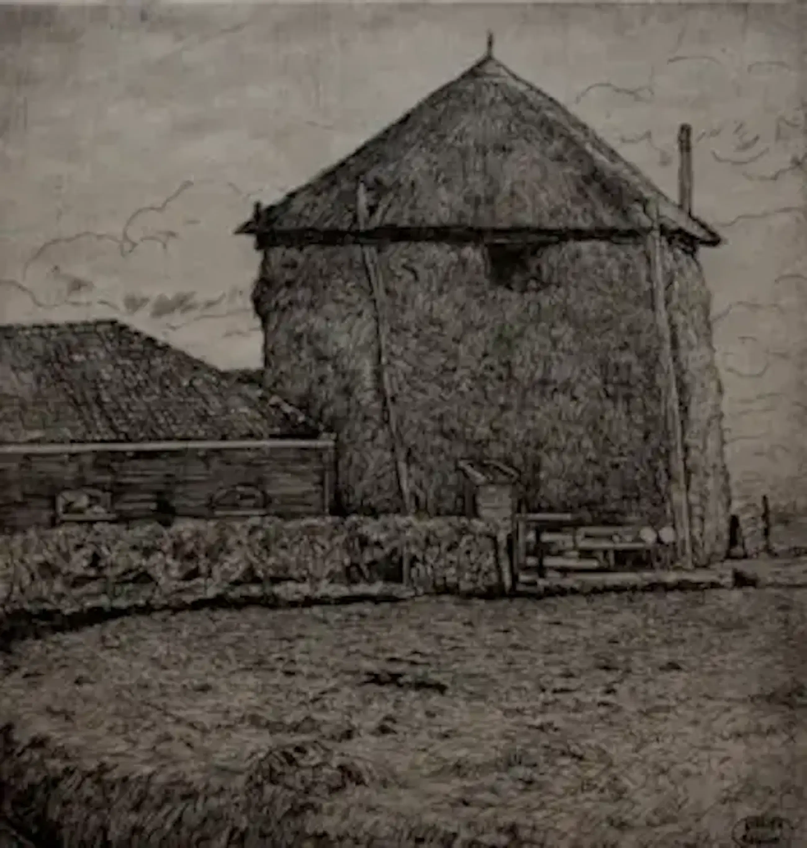 Pieter Dupont - Ets: "Hooiberg met boerderij" - 1895