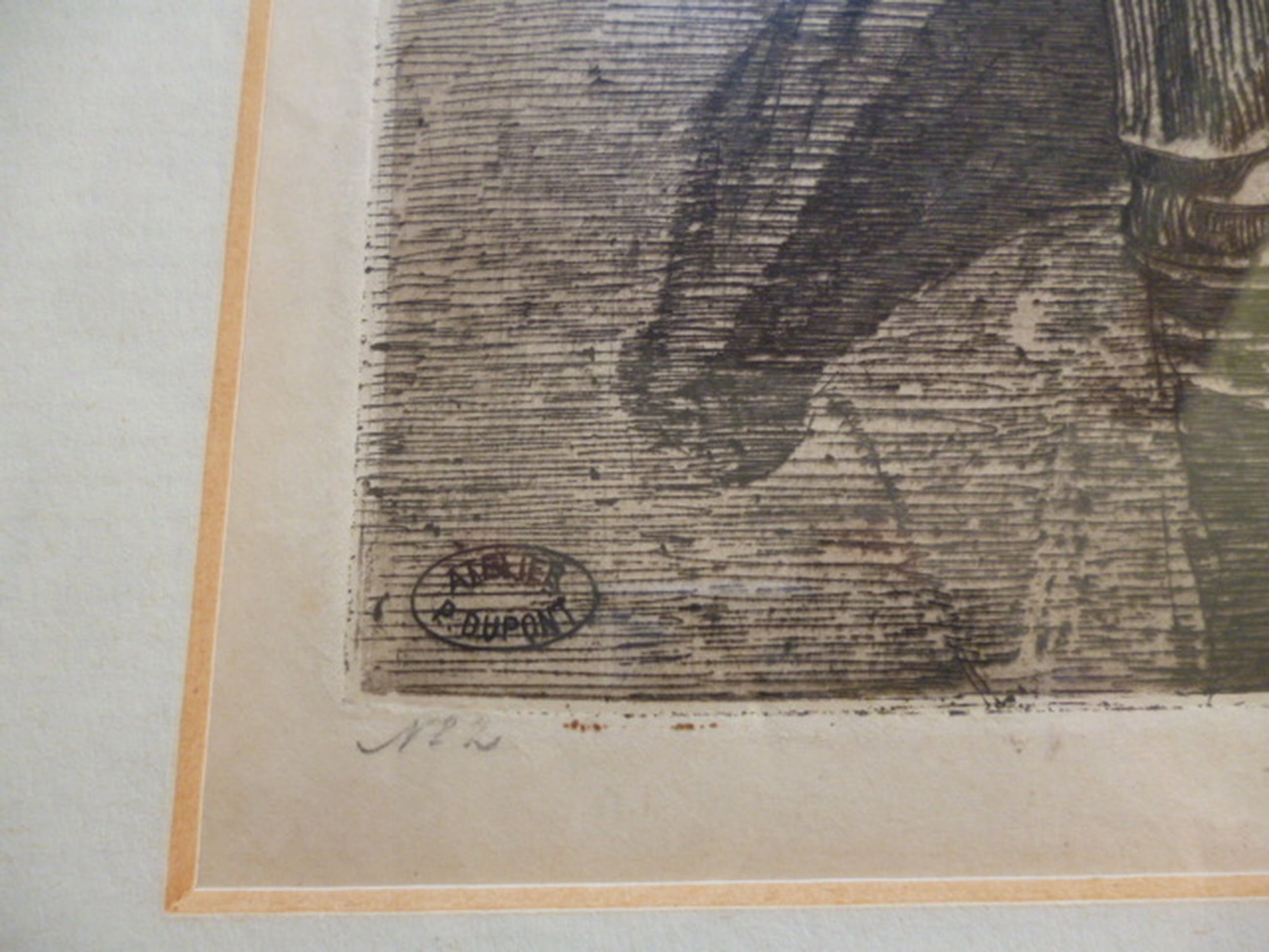 Ets uit 1895-96, potlood genummerd no.2 linksonder. Atelier P.Dupont in de plaat linksonder.