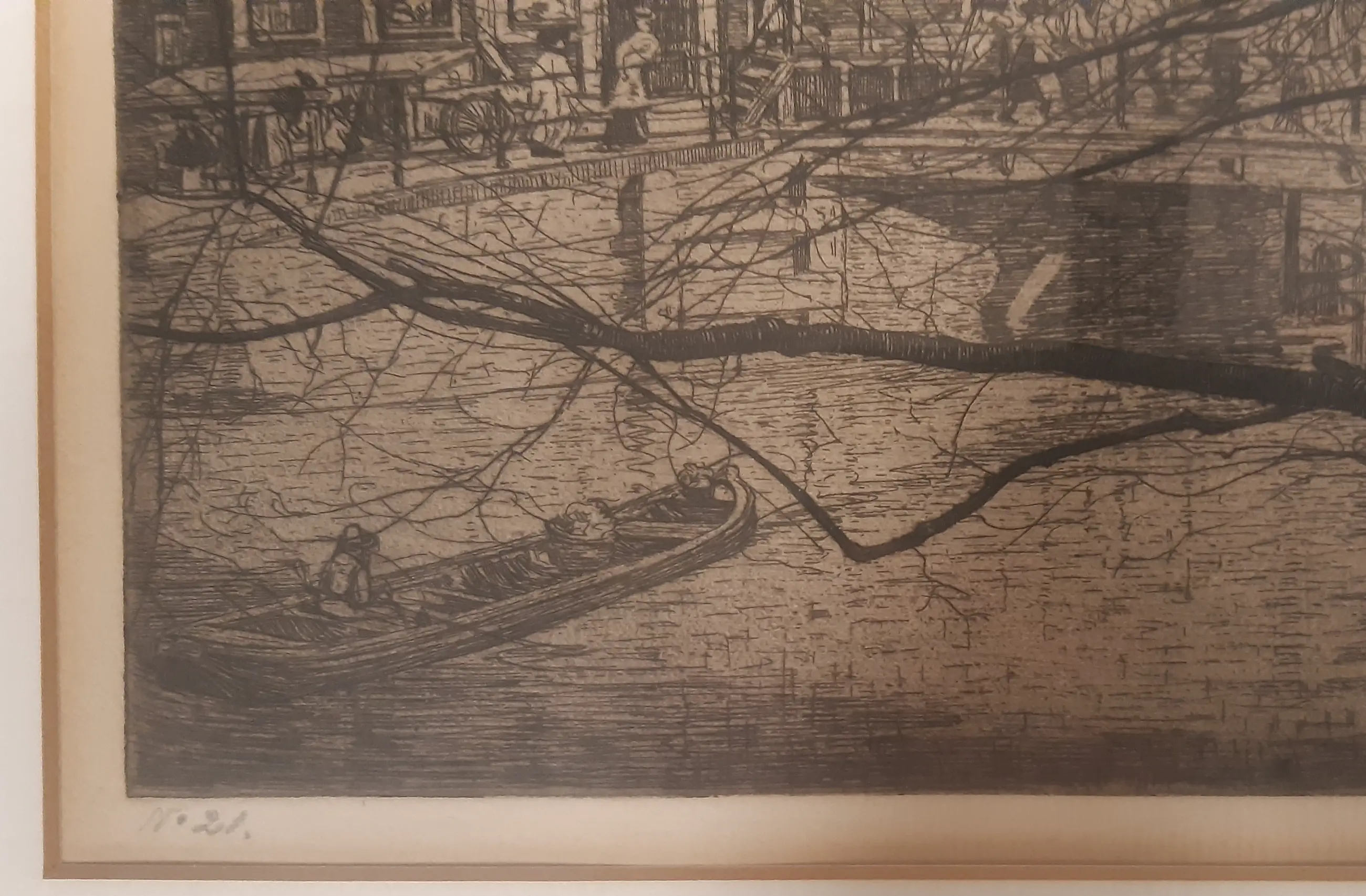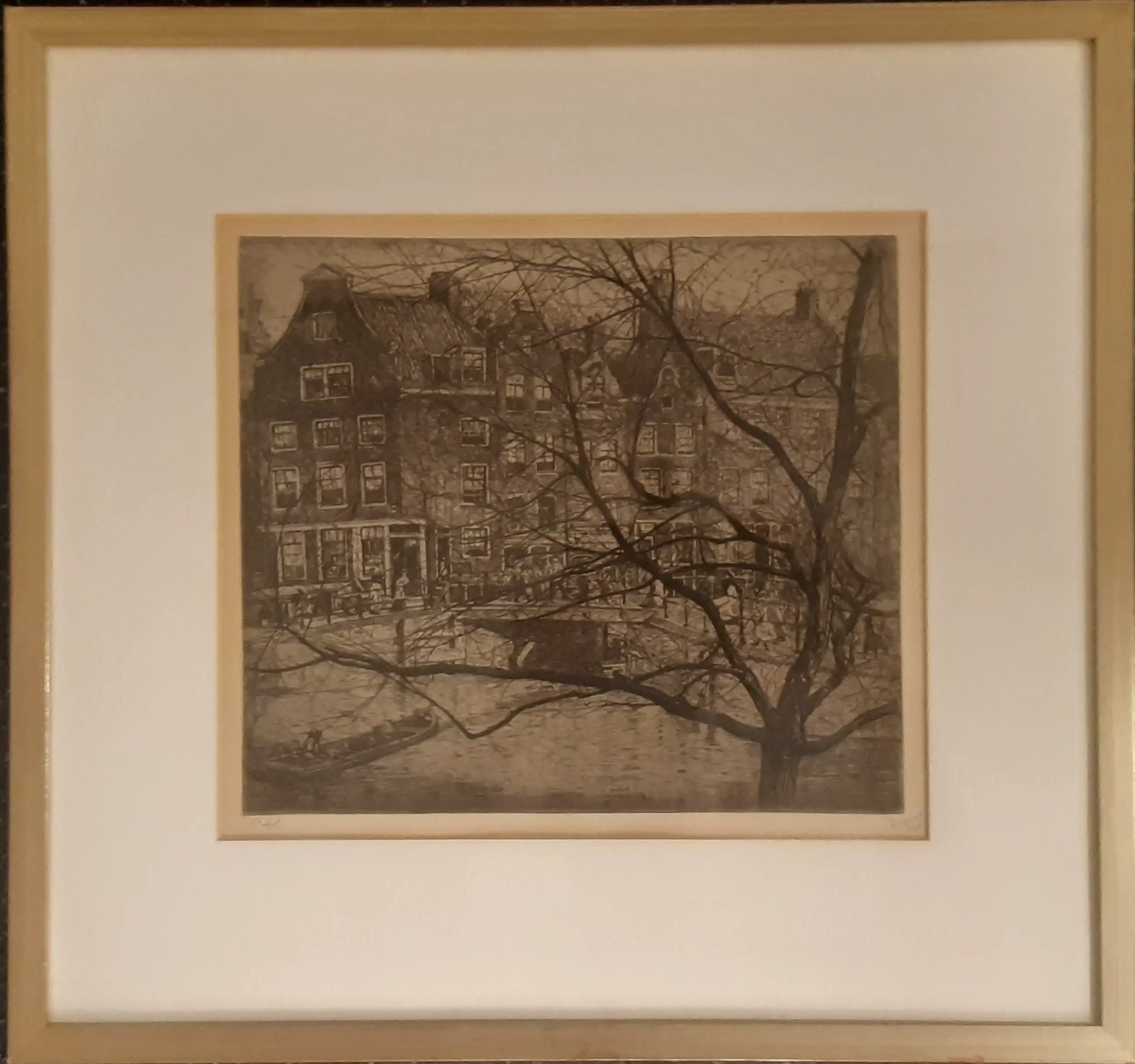 Ets op zink van Pieter Dupont. Prinsengracht te Amsterdam. Nummer 21 van 100 exemplaren. Handgesigneerd.