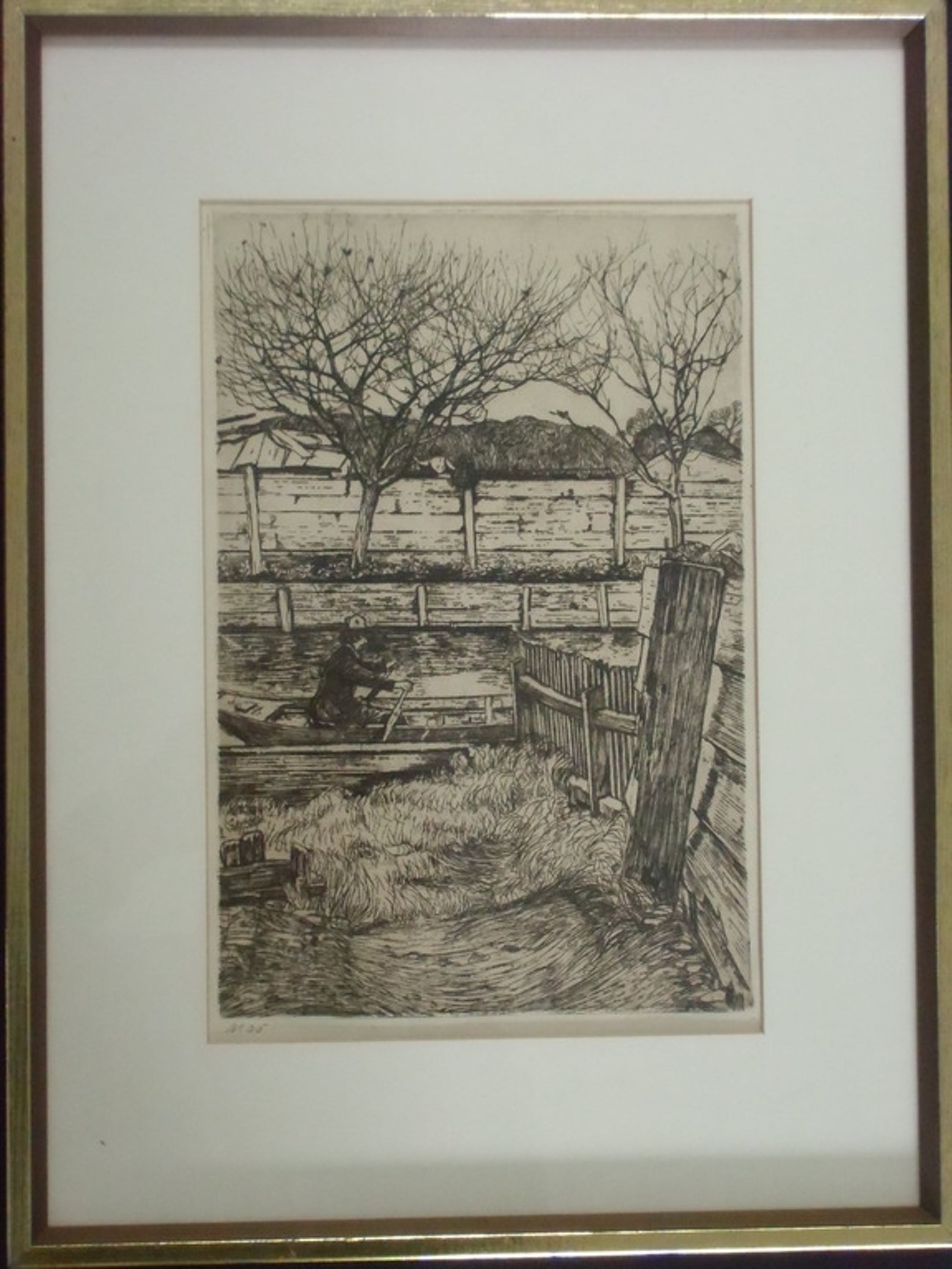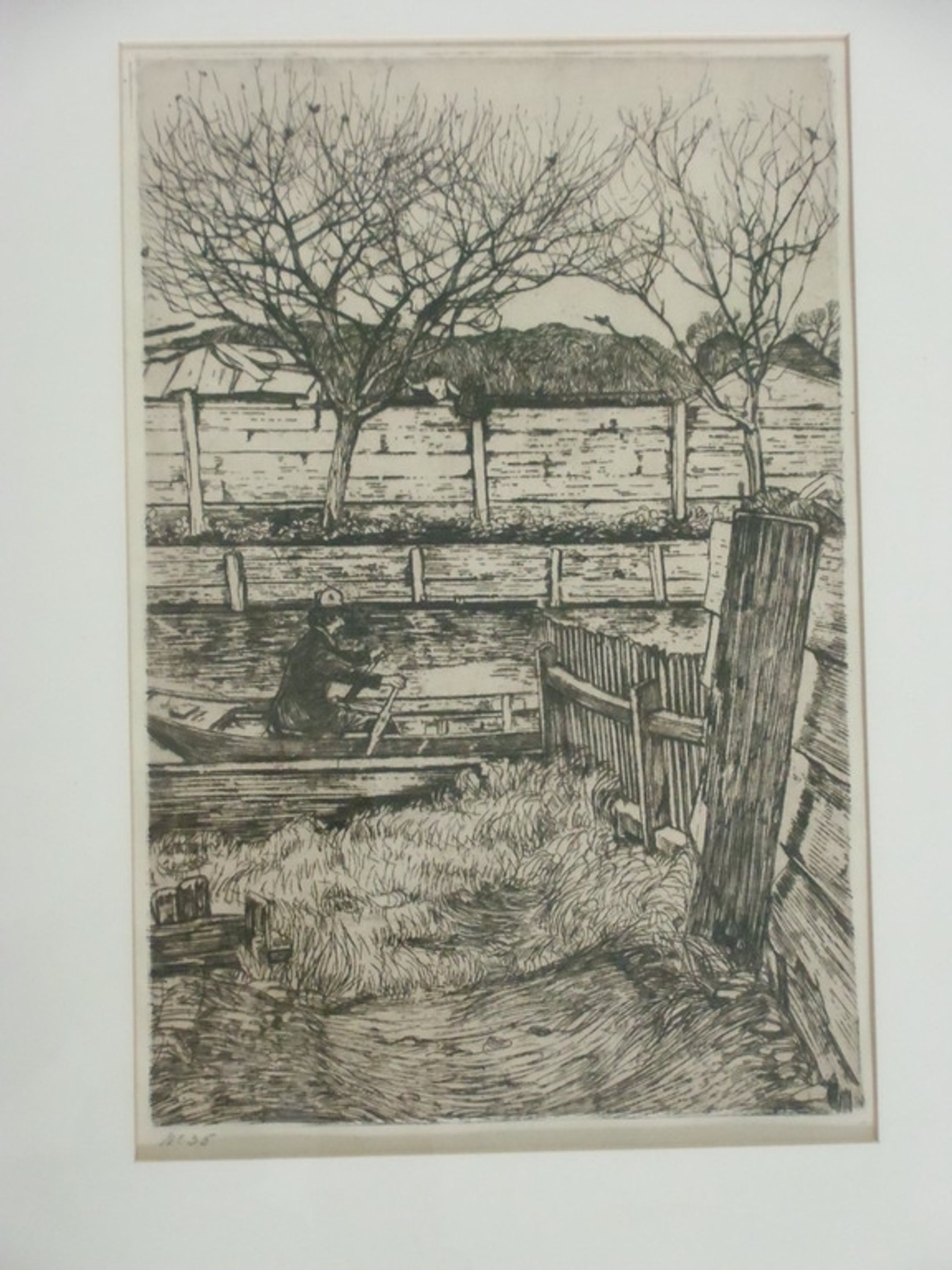 Deze ets op zink van Pieter Dupont ( 1870-1911) draagt ook de titel "Vaart met roeiboot ".